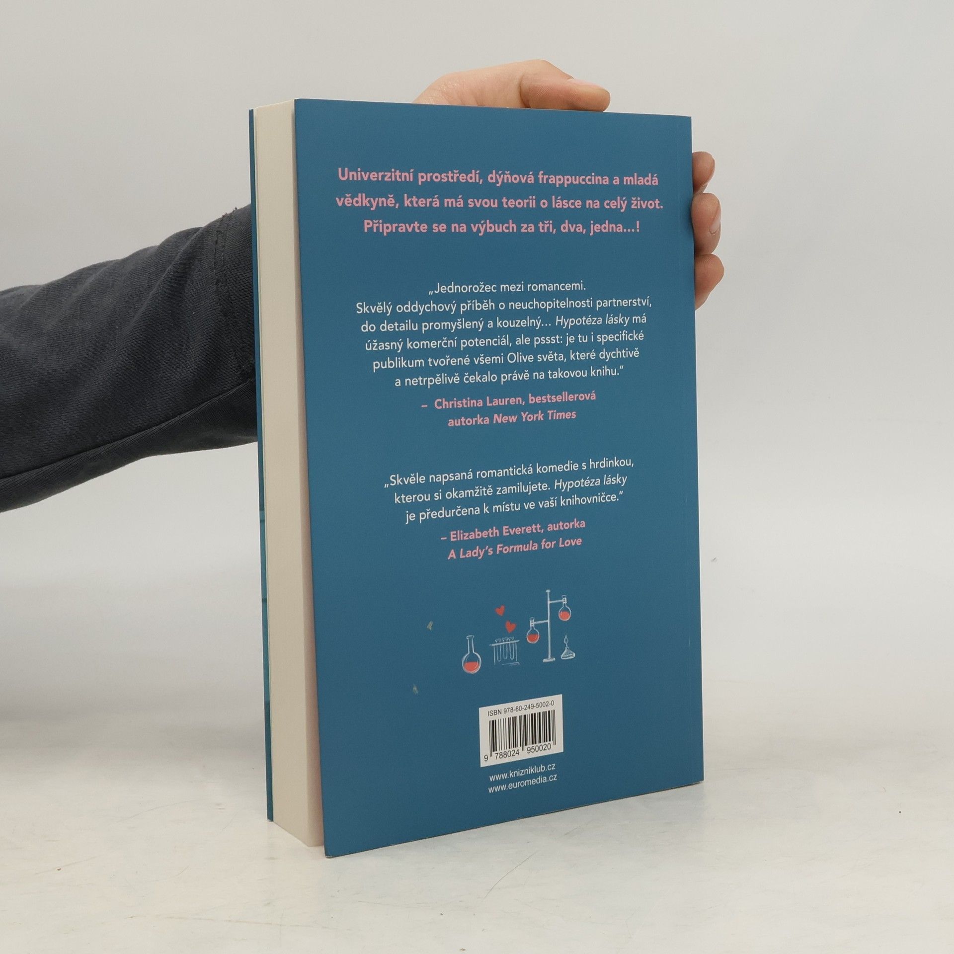 Romantická komedie, která zbořila sociální sítě! Olive je doktorandka na Stanfordu. Na trvalé romantické vztahy příliš nevěří, zato její nejlepší kamarádka ano. Takže pokud ji chce přesvědčit, že s někým randí a její milostný život nabral správný směr, musí na to jít chytře. Vědci totiž potřebují důkazy. Proto Olive, jako každá jiná sebevědomá bioložka, zpanikaří a políbí prvního muže, na kterého narazí – Adama Carlsena. Mladý, v oboru uznávaný profesor má pověst přísného školitele. Byl tak jejich polibek největší chybou, kterou Olive v životě udělala, nebo se tohle setkání může vyvinout v něco víc? Kniha obsahuje také bonusovou kapitolu.