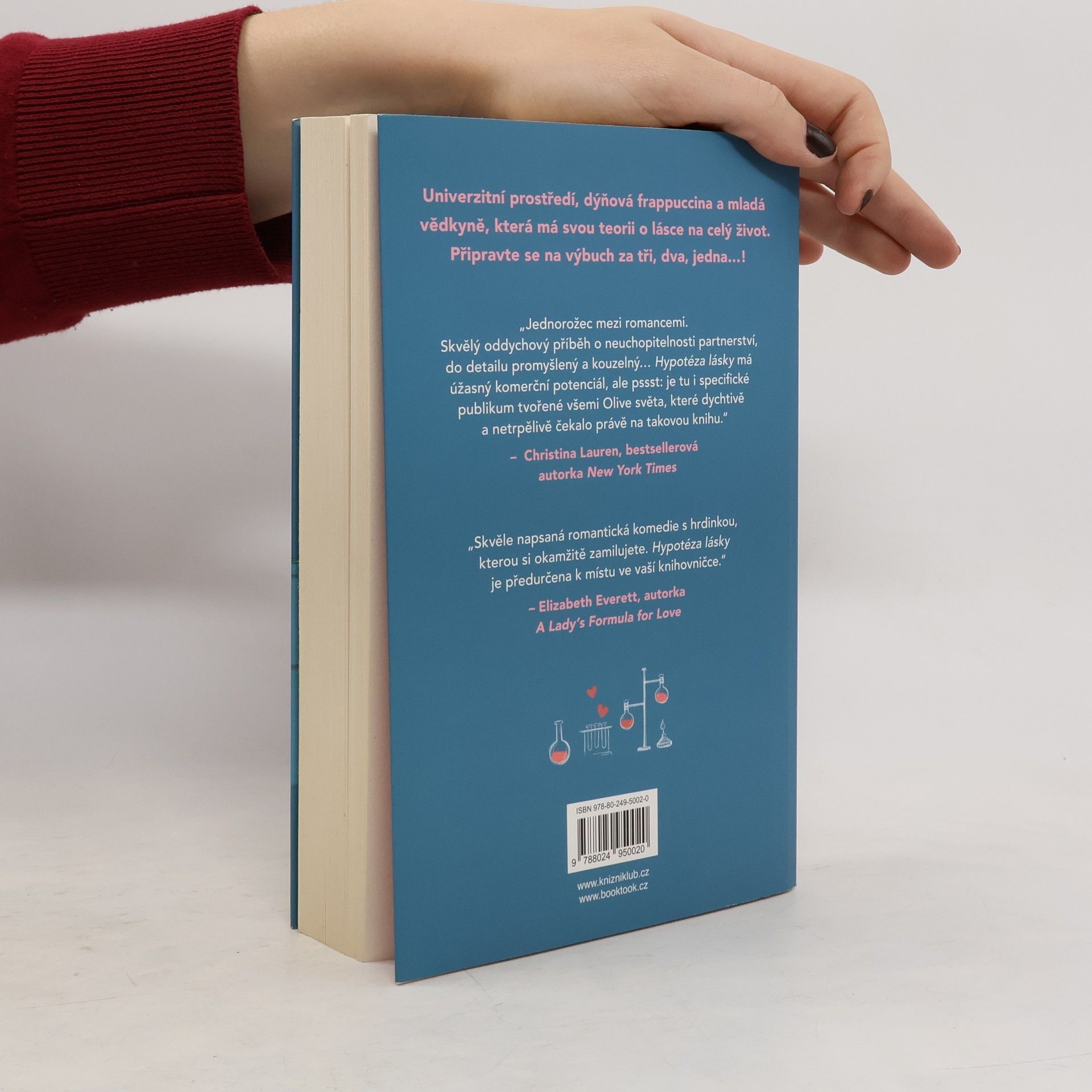 Romantická komedie, která zbořila sociální sítě! Olive je doktorandka na Stanfordu. Na trvalé romantické vztahy příliš nevěří, zato její nejlepší kamarádka ano. Takže pokud ji chce přesvědčit, že s někým randí a její milostný život nabral správný směr, musí na to jít chytře. Vědci totiž potřebují důkazy. Proto Olive, jako každá jiná sebevědomá bioložka, zpanikaří a políbí prvního muže, na kterého narazí – Adama Carlsena. Mladý, v oboru uznávaný profesor má pověst přísného školitele. Byl tak jejich polibek největší chybou, kterou Olive v životě udělala, nebo se tohle setkání může vyvinout v něco víc? Kniha obsahuje také bonusovou kapitolu.