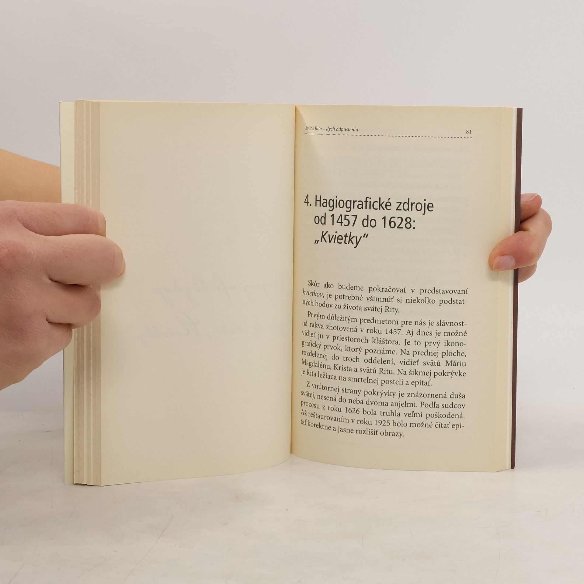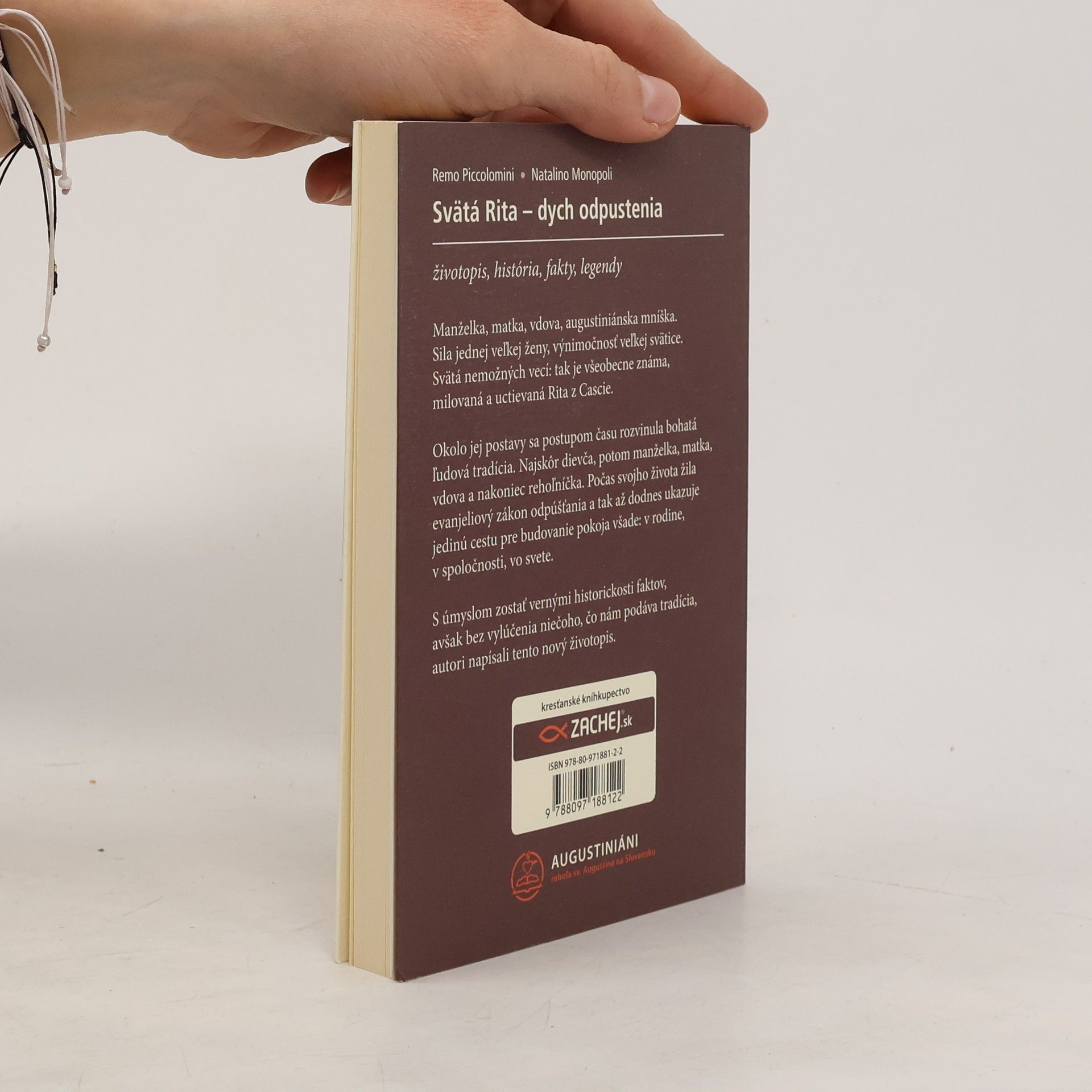 Manželka, matka, vdova, augustiniánska mníška. Sila jednej veľkej ženy, výnimočnosť veľkej svätice. Svätá nemožných vecí: tak je všeobecne známa, milovaná a uctievaná Rita z Cascie.Okolo jej postavy sa postupom času rozvinula bohatá ľudová tradícia. Najskôr dievča, potom manželka, matka, vdova a nakoniec rehoľníčka. Počas svojho života žila evanjeliový zákon odpúšťania a tak až dodnes ukazuje jedinú cestu pre budovanie pokoja v rodine, v spoločnosti, vo svete.S úmyslom zostať vernými historickosti faktov, avšak bez vylúčenia niečoho, čo nám podáva tradícia, autori napísali tento nový životopis.