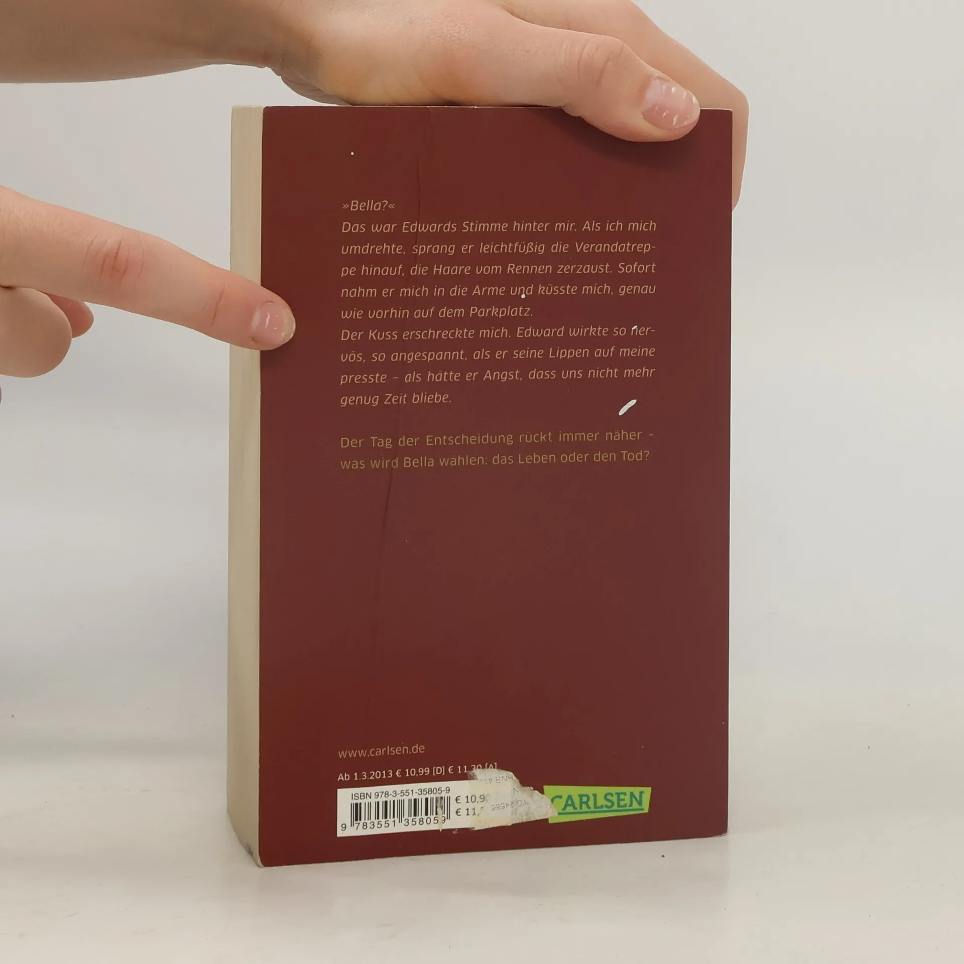 Bellas Leben ist in Gefahr. Seattle wird von einer Reihe rätselhafter Mordfälle erschüttert, ein offensichtlich blutrünstiger Vampir sinnt auf Rache. Und seine Spuren führen zu Bella. Aber damit nicht genug: Nachdem sie wieder mit Edward zusammen ist, muss sie sich zwischen ihrer Liebe zu ihm und ihrer Freundschaft mit Jacob entscheiden - wohl wissend, dass sie damit den uralten Kampf zwischen Vampiren und Werwölfen neu entfachen könnte ... Der Tag der Entscheidung rückt immer näher - was wird Bella wählen: Leben oder Tod?