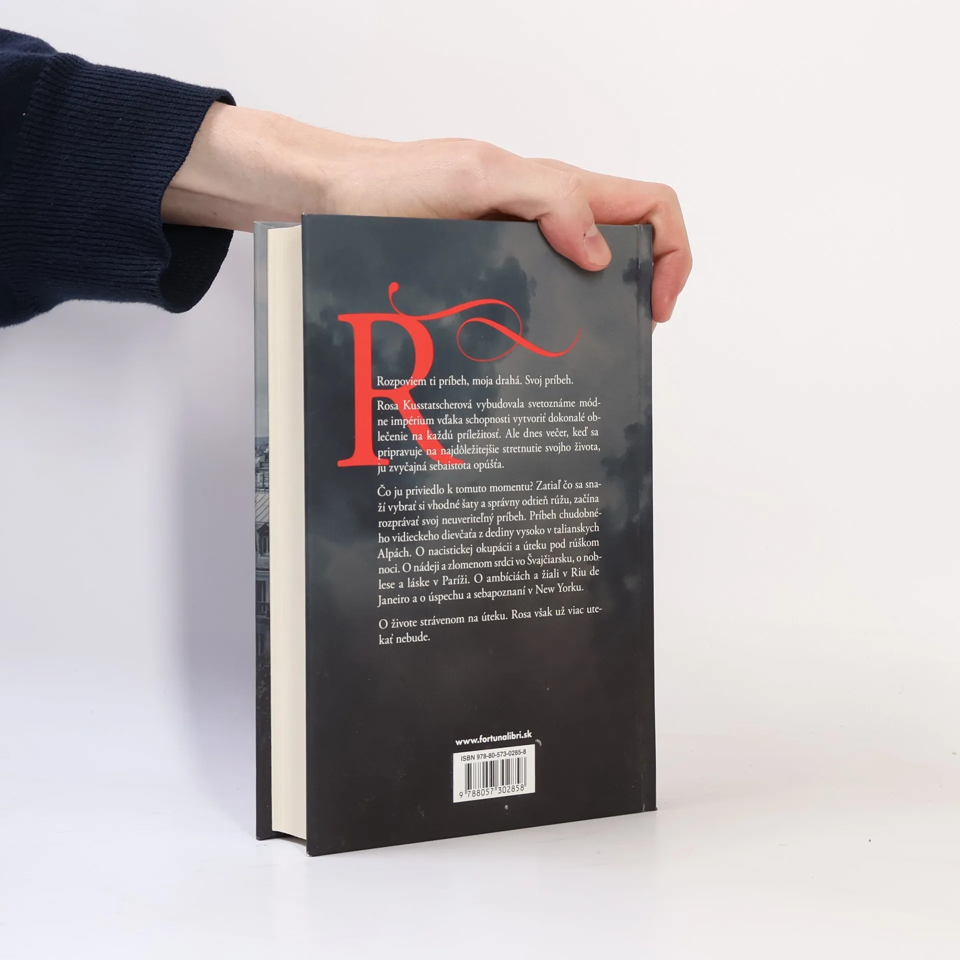 Rosa Kusstatscherová vybudovala svetoznáme módne impérium vďaka schopnosti vytvoriť dokonalé oblečenie na každú príležitosť. Ale dnes večer, keď sa pripravuje na najdôležitejšie stretnutie svojho života, ju jej zvyčajná sebaistota opúšťa. Čo ju priviedlo k tomuto momentu?Zatiaľ čo sa snaží vybrať si vhodné šaty a správny odtieň rúžu, začína rozprávať svoj neuveriteľný príbeh. Príbeh chudobného vidieckeho dievčaťa z dediny vysoko v talianskych Alpách. O nacistickej okupácii a úteku pod rúškom noci. O nádeji a zlomenom srdci vo Švajčiarsku, o noblese a láske v Paríži. O ambíciách a žiali v Riu de Janeiro a o úspechu a sebapoznaní v New Yorku. O živote strávenom na úteku. Rosa však už viac utekať nebude.
