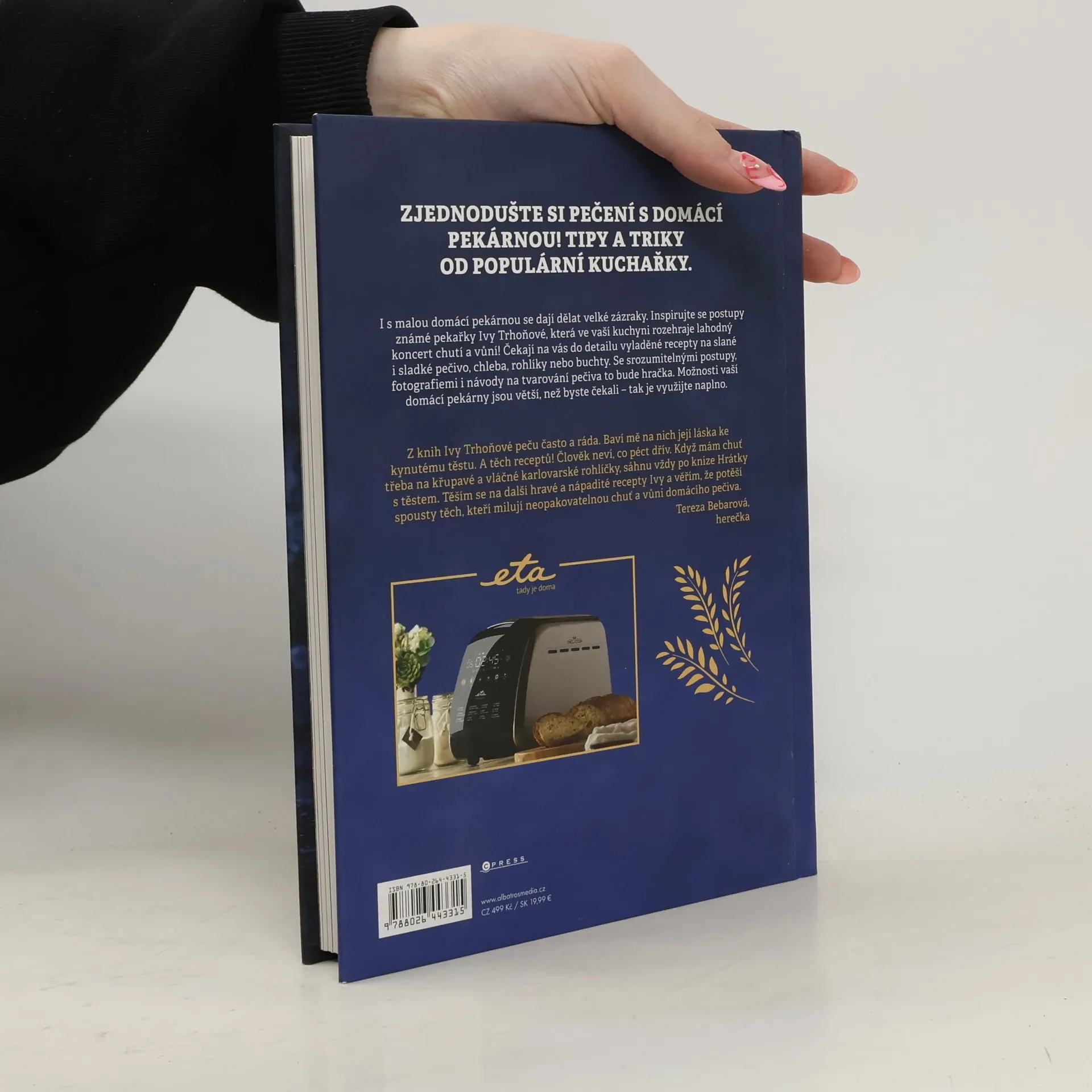 Zamilujte si pečení s domácí pekárnou. I s malou domácí pekárnou se dají dělat velké zázraky. Inspirujte se postupy známé pekařky Ivy Trhoňové, která ve vaší kuchyni rozehraje lahodný koncert chutí a vůní! Čekají na vás do detailu vyladěné recepty na slané i sladké pečivo, chleba, rohlíky nebo buchty. Se srozumitelnými postupy, fotografiemi i návody na tvarování pečiva to bude hračka. Možnosti vaší domácí pekárny jsou větší, než byste čekali – tak je využijte naplno.