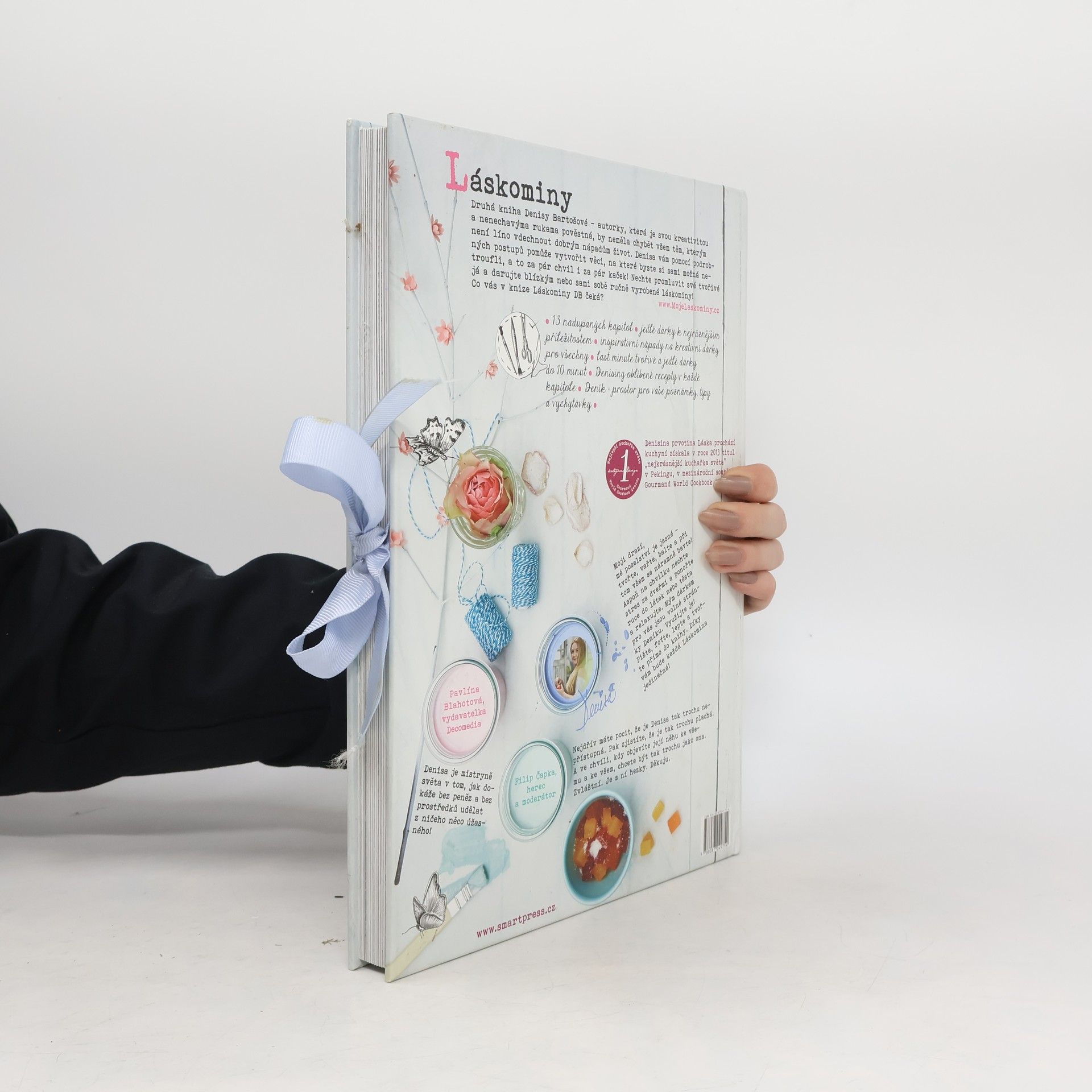 Knihu Láska prochází kuchyní Vám Denisa uvařila, zabalila a věnovala v podobě tvořivé kuchařky jedlých dárků na celý rok. A protože měla Láska úspěch u nás i ve světě – vysloužila si na mezinárodní soutěži titul Nejkrásnější kuchařka světa, rozhodla se Denisa vytvořit knihu v pořadí druhou. A když říkáme vytvořit, myslíme tím skutečně, že si k tomu ta ženská s nenechavýma rukama sedla a vařila, balila, pletla, zaplétala, vyráběla, až vznikla kniha plná skvělých jedlých dárků k nejrůznějším příležitostem, kniha plná inspirativních nápadů na dárky pro vaše blízké, a to z lásky i z přátelství, pro radost i pro vzpruhu, do domu i na zahradu. (Obdarovat můžete ale i sami sebe. Je to žádoucí!) Nemůžeme nezmínit i tzv. last minut tvořivé a jedlé dárky, které se hodí ve chvílích, kdy na poslední chvíli zjistíte, že jste zazdili dědečkovy narozeniny nebo výročí s drahou polovinou. A perlička nakonec – prostor pro vaše poznámky, recepty, tipy, vychytávky nebo fotky v každé kapitole.