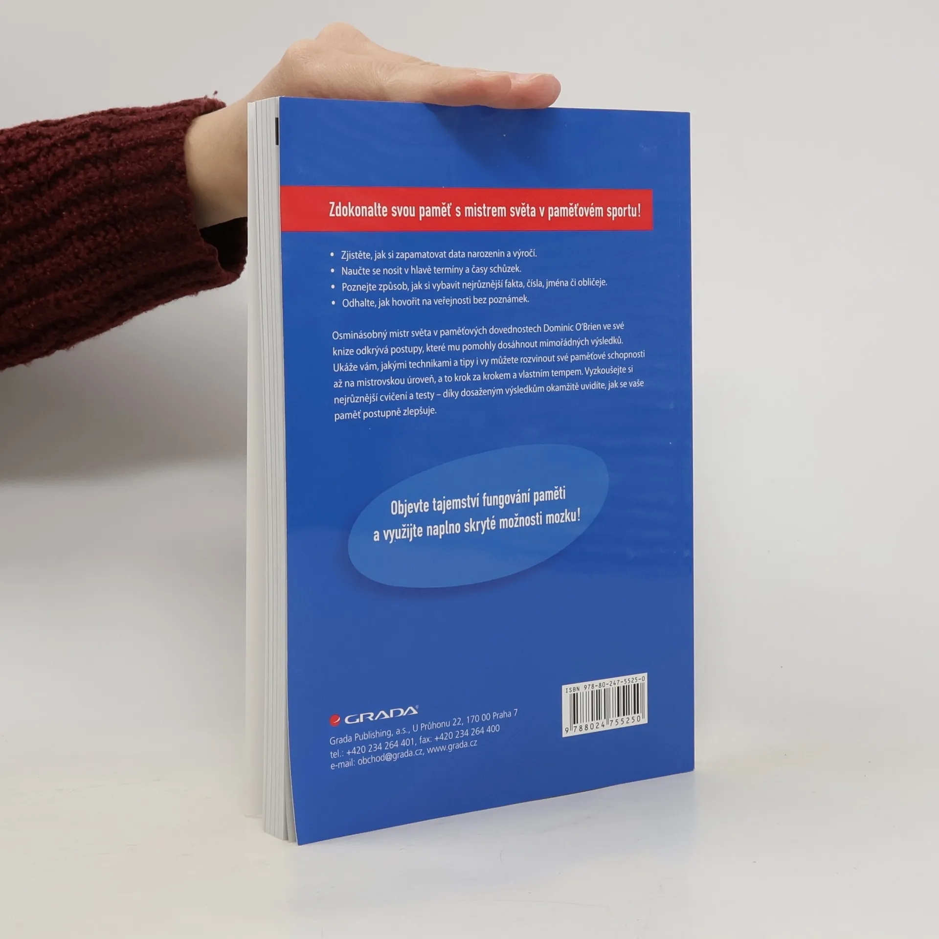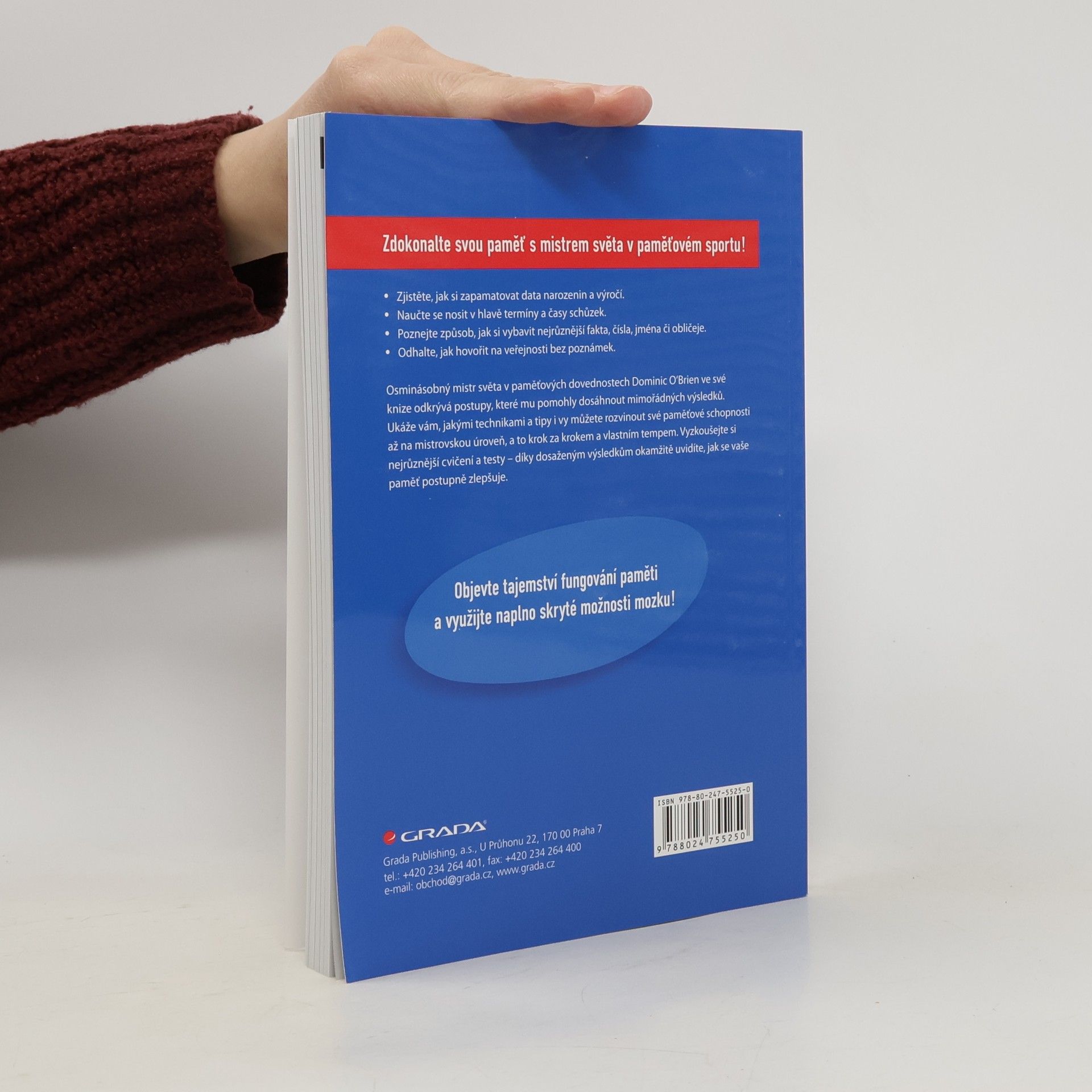 Vydejte se na cestu s mistrem svého oboru a objevte skrytá tajemství fungování paměti - Zjistěte, jak si zapamatovat data narozenin a výročí. - Naučte se nosit v hlavě termíny a časy schůzek. - Poznejte způsob, jak si vybavit nejrůznější fakta, čísla, jména či obličeje. - Odhalte, jak hovořit na veřejnosti bez poznámek. Osminásobný mistr světa v paměťových dovednostech Dominic O‘Brien ve své knize předkládá ucelený soubor technik, jak si zdokonalit paměť – krok za krokem se tak můžete naučit vše potřebné. V 52 kapitolách autor systematicky představuje ověřené postupy, které mu pomohly dosáhnout mistrovských výsledků. Vždy přitom vychází ze svých hlubokých znalostí toho, jak mozek reaguje na paměťová cvičení. S pomocí předkládaných technik a tipů budete moci rozvíjet své paměťové schopnosti až na mistrovskou úroveň, a to svým vlastním tempem. Vyzkoušejte si nejrůznější cvičení a testy – díky dosaženým výsledkům okamžitě uvidíte, jak se vaše paměť postupně zlepšuje. Využijte naplno skryté možnosti mozku!