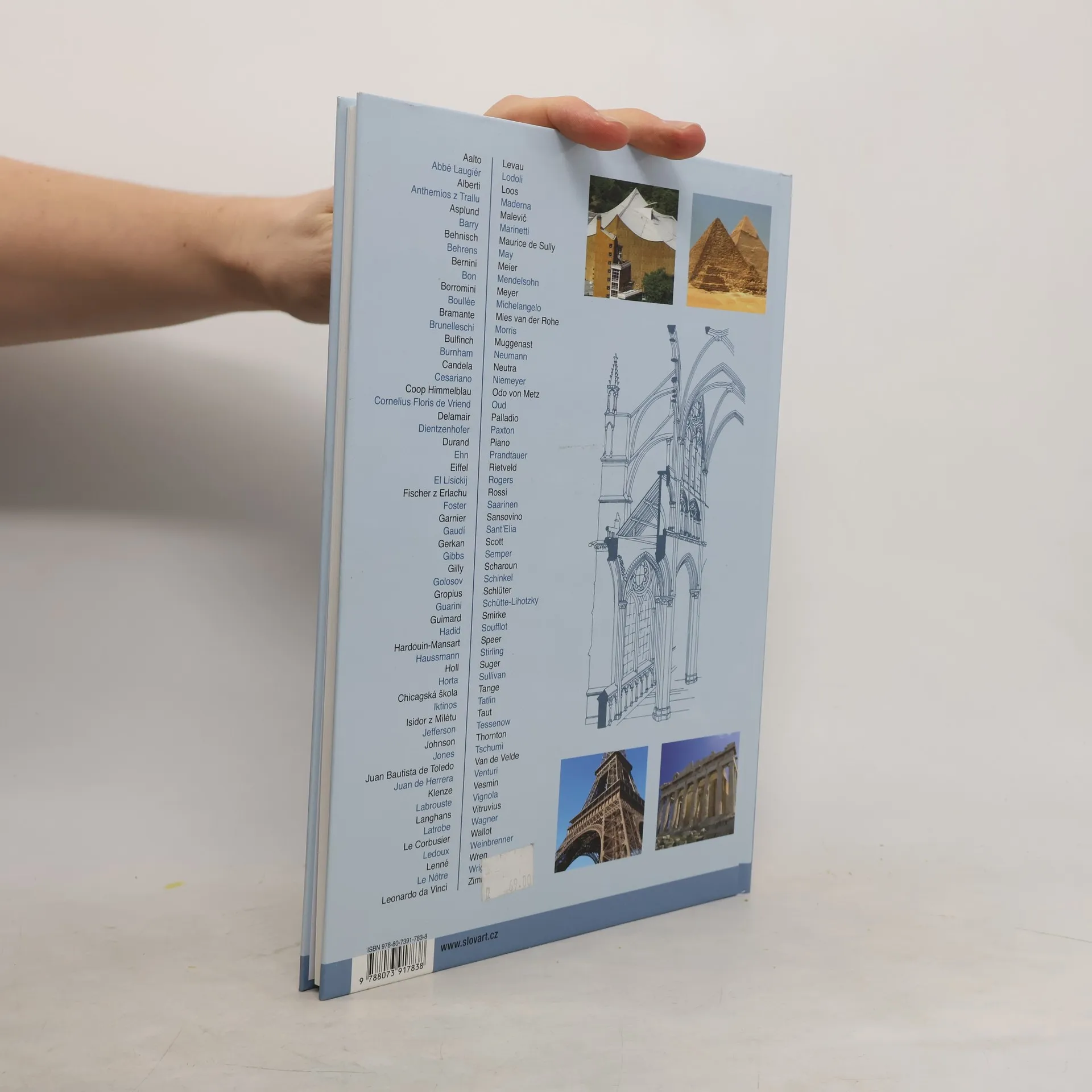 Podtitul: Od antiky po současnost Architektura se už od starověku považovala za matku umění a v součinnosti s ní se vyvíjelo i malířství a sochařství. Publikace Dějiny architektury nabízí průřez historií a vývojem architektury od starověku po současnost, přibližuje známá i méně známá architektonická díla, představuje slavné architekty od Albertiho přes Berniniho, Gaudího, Michelangela až po Wrighta či Zimmermanna.