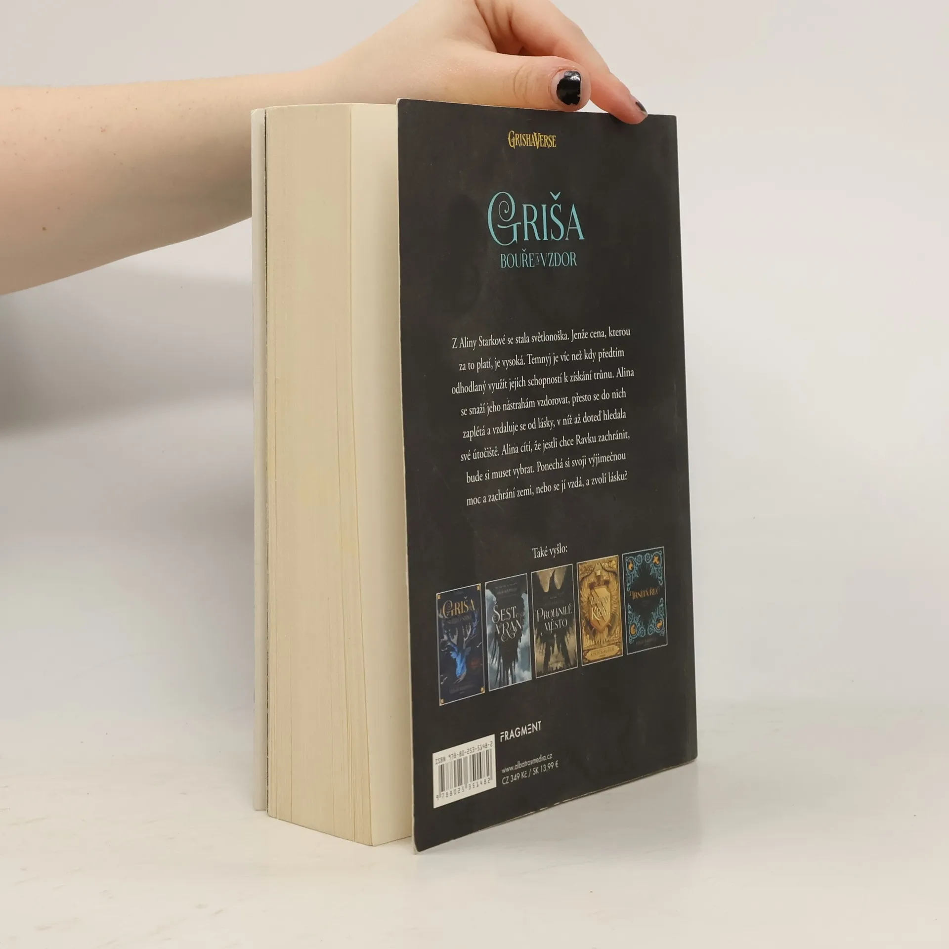 Na Alinu Starkovou se žene divoká bouře. Čeká ji vnitřní boj. Vyjde z něj jako vítěz, nebo jako poražený? Druhý díl světového bestselleru! Z Aliny Starkové se stala světlonoška. Jenže cena, kterou za to platí, je vysoká. Temnyj je víc než kdy předtím odhodlaný využít jejích schopností k získání trůnu. Alina se snaží jeho nástrahám vzdorovat, přesto se do nich zaplétá a vzdaluje se od lásky, v níž až doteď hledala své útočiště. Alina cítí, že jestli chce Ravku zachránit, bude si muset vybrat. Ponechá si svoji výjimečnou moc a zachrání zemi, nebo se jí vzdá, a zvolí lásku?
