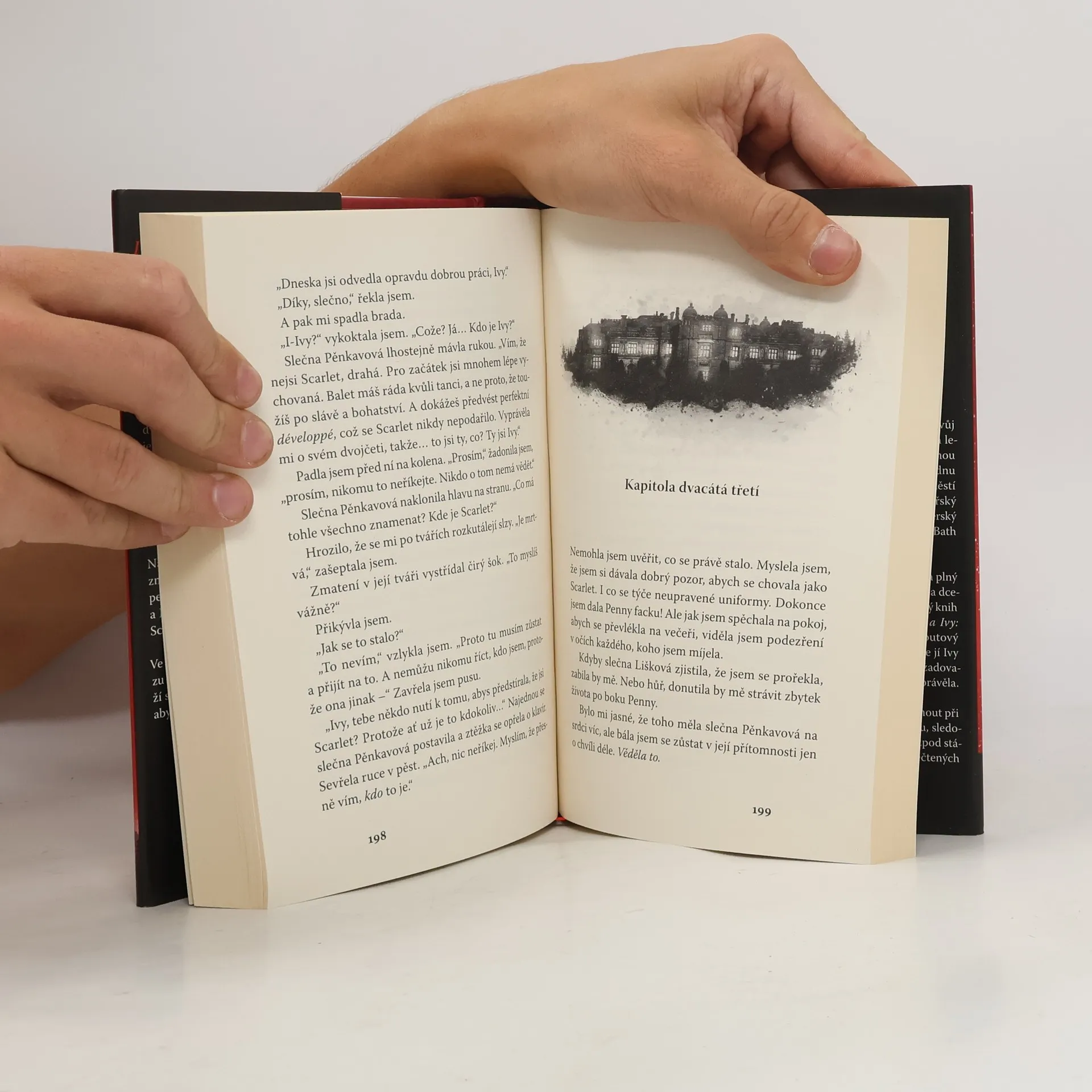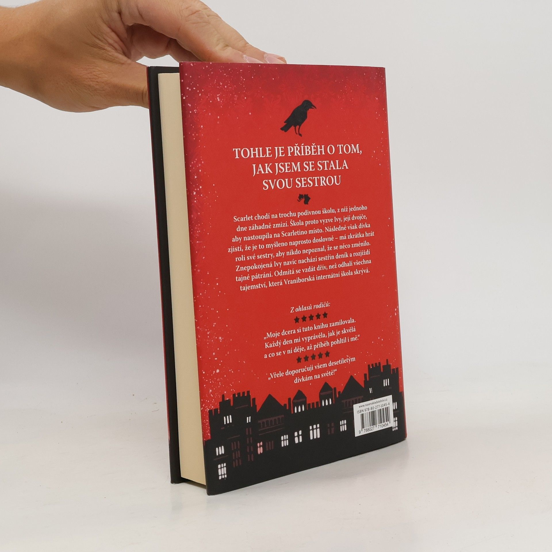 Ivy, modlím se, abys tohle četla ty. A pokud to tak je, no, přepokládám, že jsi teď mým novým já… Když problémová Scarlet zmizí z Vraniborské internátní školy, Ivy, její nesmělé dvojče, je vyzvána, aby „nastoupila na její místo“. Jakmile ale dorazí, dozví se, o co škole doopravdy jde – musí předstírat, že je Scarlet. Musí myslet jako Scarlet, chovat se jako Scarlet, stát se Scarlet. Ale co se stalo se skutečnou Scarlet? A proč se to škola snaží utajit? Naštěstí pro Ivy, Scarlet nehodlá zmizet bez boje. Po celé škole nechala pečlivě schované stránky svého deníku a Ivy je teď musí najít. Zjistí, co se se Scarlet stalo. Musí to zjistit. Ale zaměstnanci Vraniboru ji neustále sledují a udělají cokoliv, aby jejich tajemství zůstala pohřbena navždy…