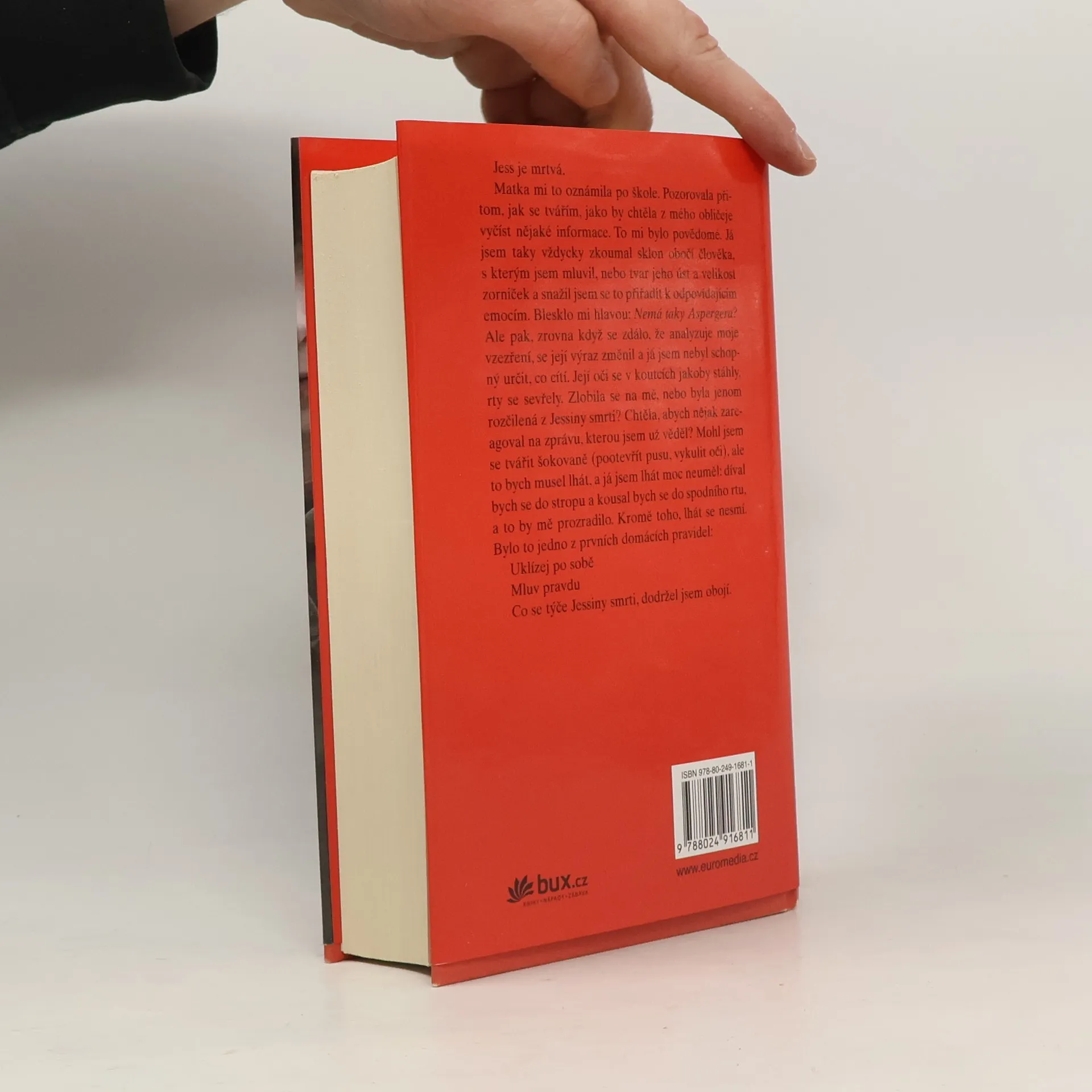 Jacob Hunt je jen zdánlivě obyčejný teenager – exceluje v matematice, má hodně černý smysl pro humor a nenávidí nepořádek. To, co má navíc, je Aspergerův syndrom, formu autistické poruchy. Je neprodyšně uzavřený ve svém vlastní světě. Snaží se být jako všichni ostatní, ale netuší, jak by to měl udělat. Jednoho dne je za podivných okolností zavražděna jeho lektorka Jess a chlapec s uhýbavým pohledem je rázem prvním podezřelým. Byl by schopen vraždy? Kdo se k němu dokáže dostat natolik blízko, aby poznal pravdu?