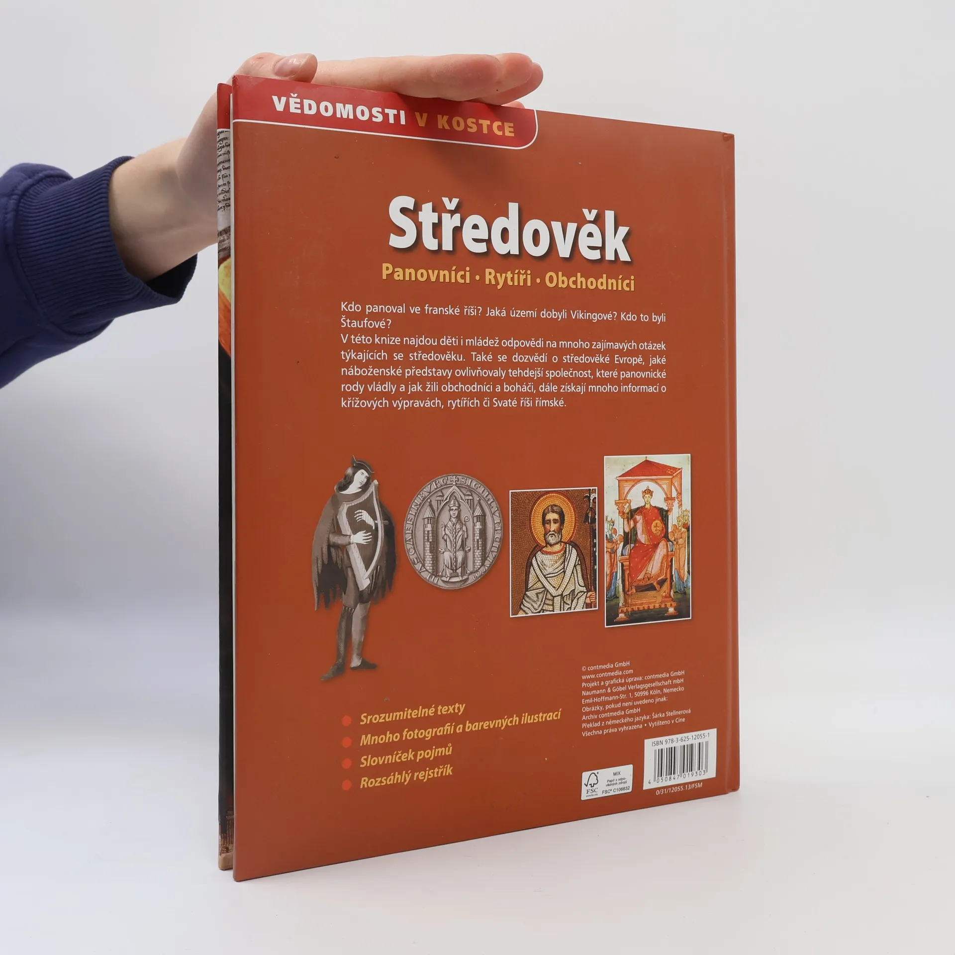 V této knize najdou děti odpovědi na mnoho zajímavých otázek týkajících se středověku. Dozvědí se, jaké náboženské představy ovlivňovaly středověkou společnost, které panovnické rody vládly a jak žili obchodníci a boháči. Získají mnoho informací o křížových výpravách, rytířích i Svaté říši římské.