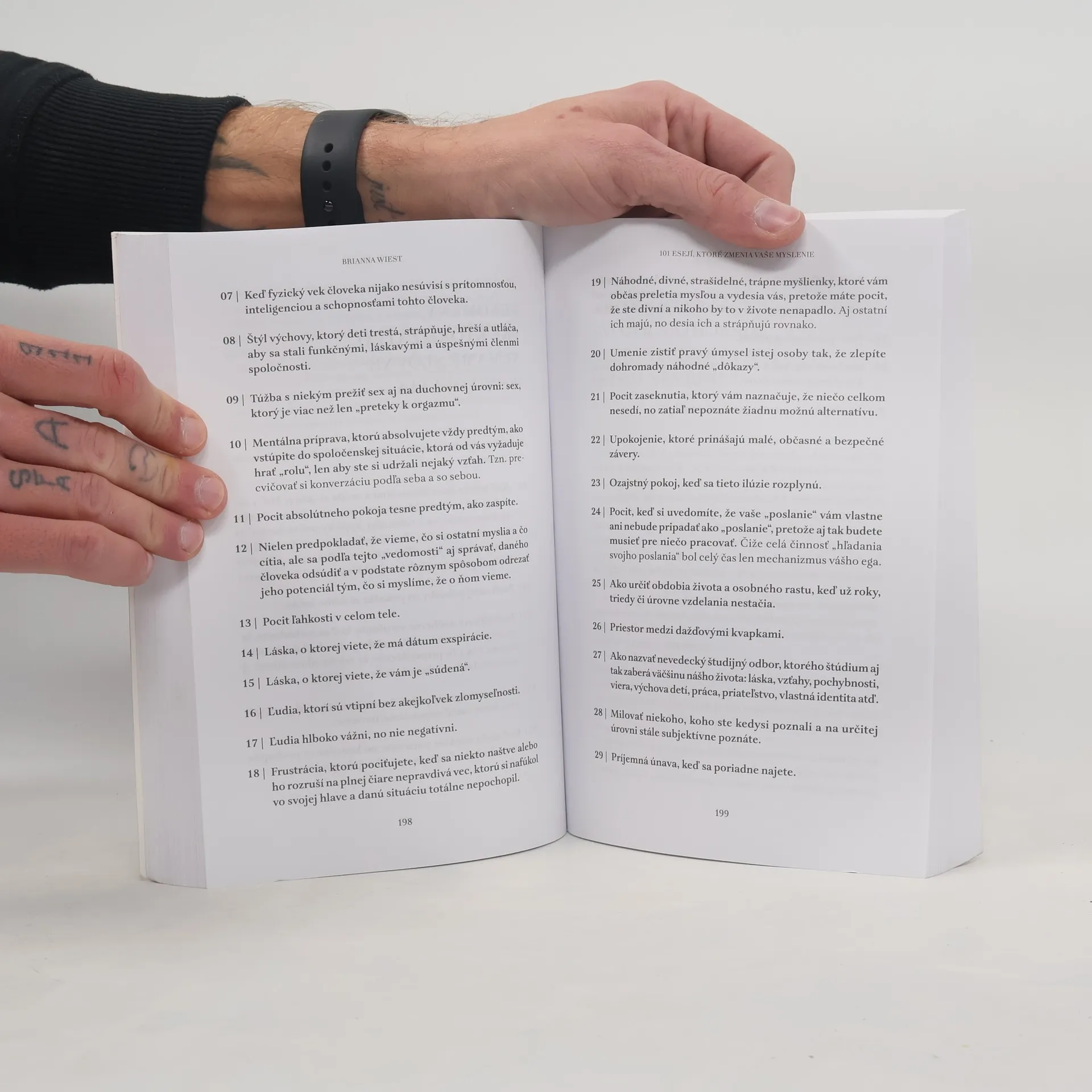 Brianna Wiest píše o honbe za postavením na úkor toho, čo nás baví, rozvíjaní tzv. negatívneho myslenia, objavovaní zmyslu v každodennej rutine a chápaní kognitívnych skreslení, ktoré ovplyvňujú naše vnímanie života.V tejto knihe nájdete predtým nezverejnené texty, ako aj niektoré z Brianniných najpopulárnejších esejí. Možno si aj vy po prečítaní čo i len jednej z nich poviete, že „táto myšlienka mi zmenila život“.