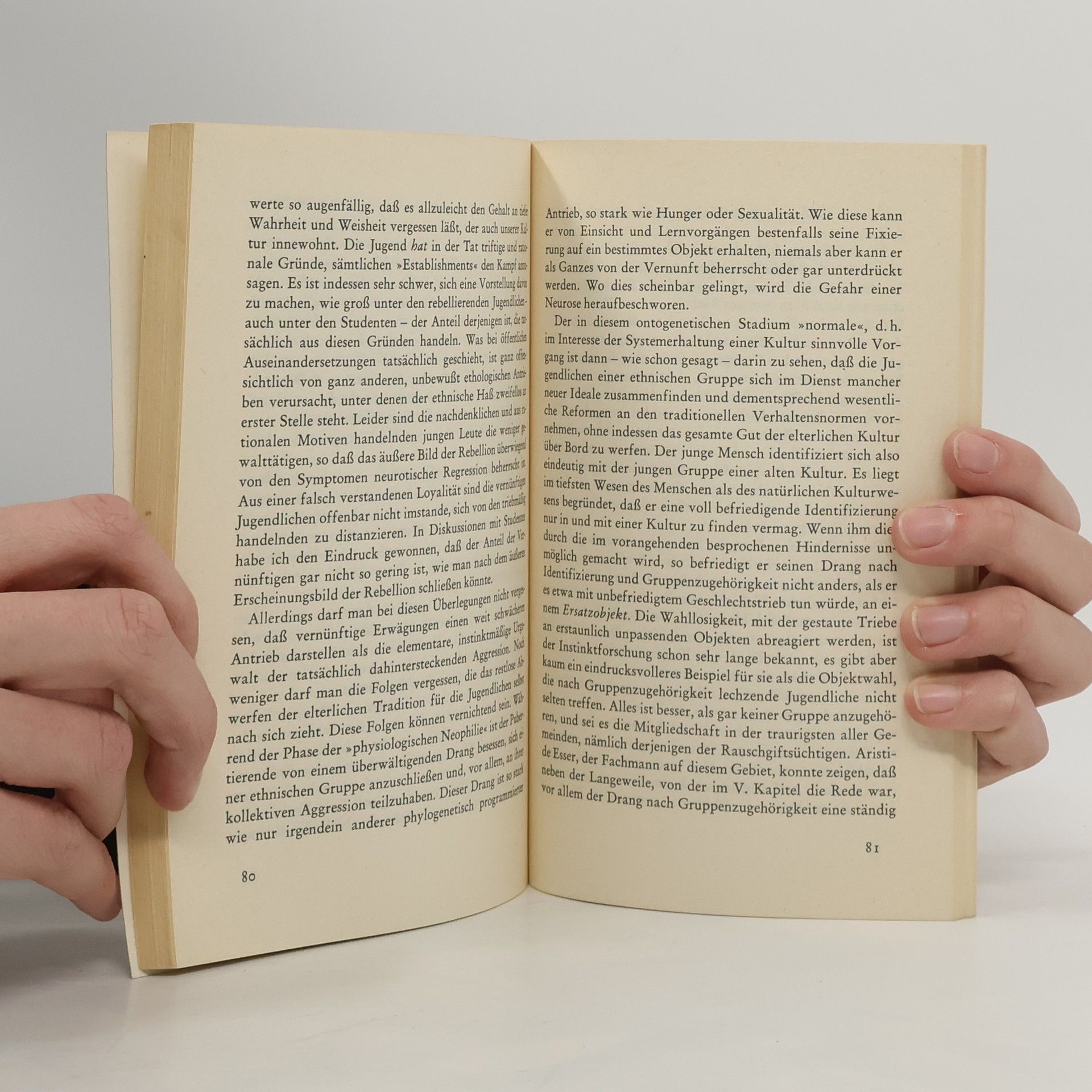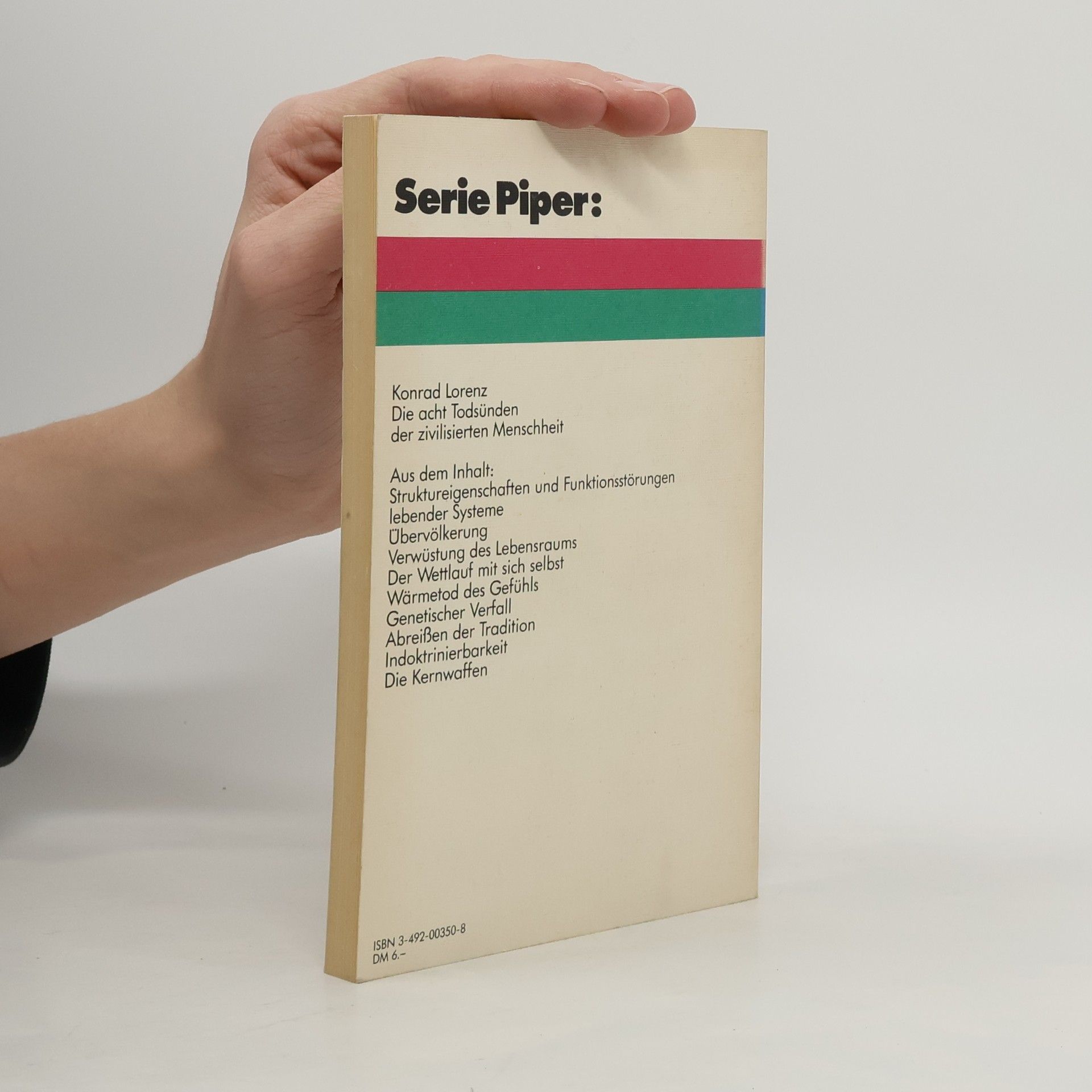 Viele große Bücher des legendären Verhaltensforschers wurden zu Bestsellern. Diese kleine Schrift allerdings wurde sein am meisten verbreitetes Buch. »Wir leben aber in einer Zeit, in der es der Naturforscher ist, der gewisse Gefahren besonders klar zu sehen vermag. So wird ihm das Predigen zur Pflicht.« Lorenz untersucht in seiner »Predigt« acht Vorgänge der Dehumanisierung, Vorgänge, die die Menschheit als Ganzes mit dem Untergang bedrohen: die Überbevölkerung der Erde, die Verwüstung natürlichen Lebensraums, der Wettlauf des Menschen mit sich selbst im Zugzwang der technologischen Entwicklung, der »Wärmetod des Gefühls«, der genetische Verfall, das Abreißen der Tradition, die zunehmende Indoktrinierbarkeit und die Aufrüstung mit Kernwaffen.
