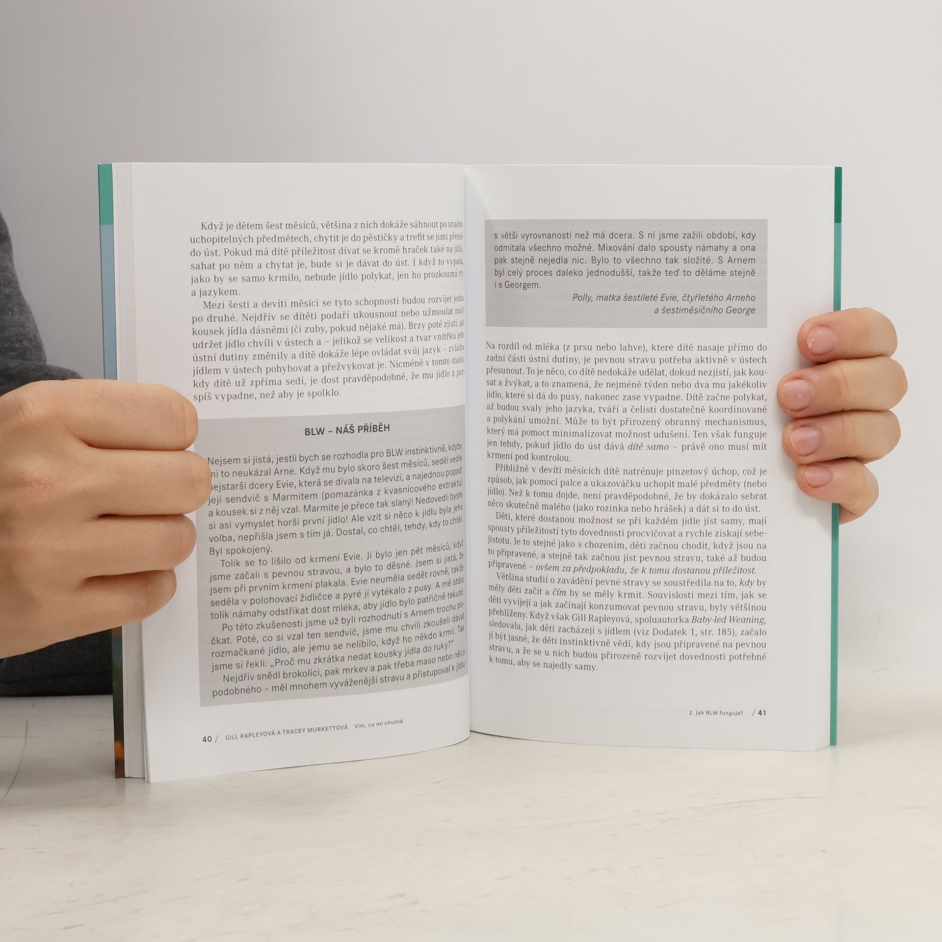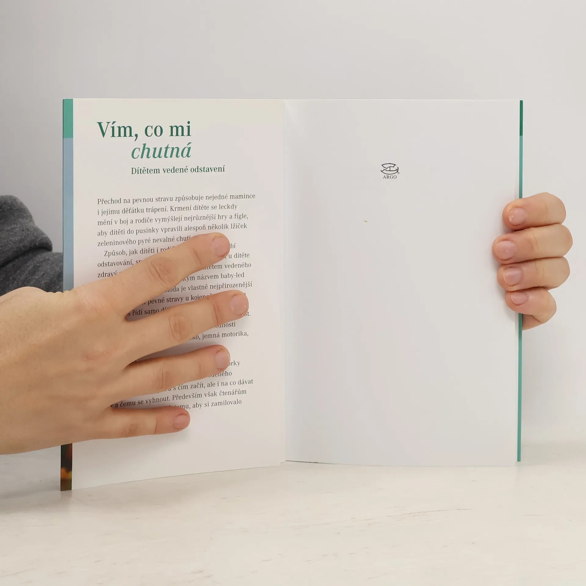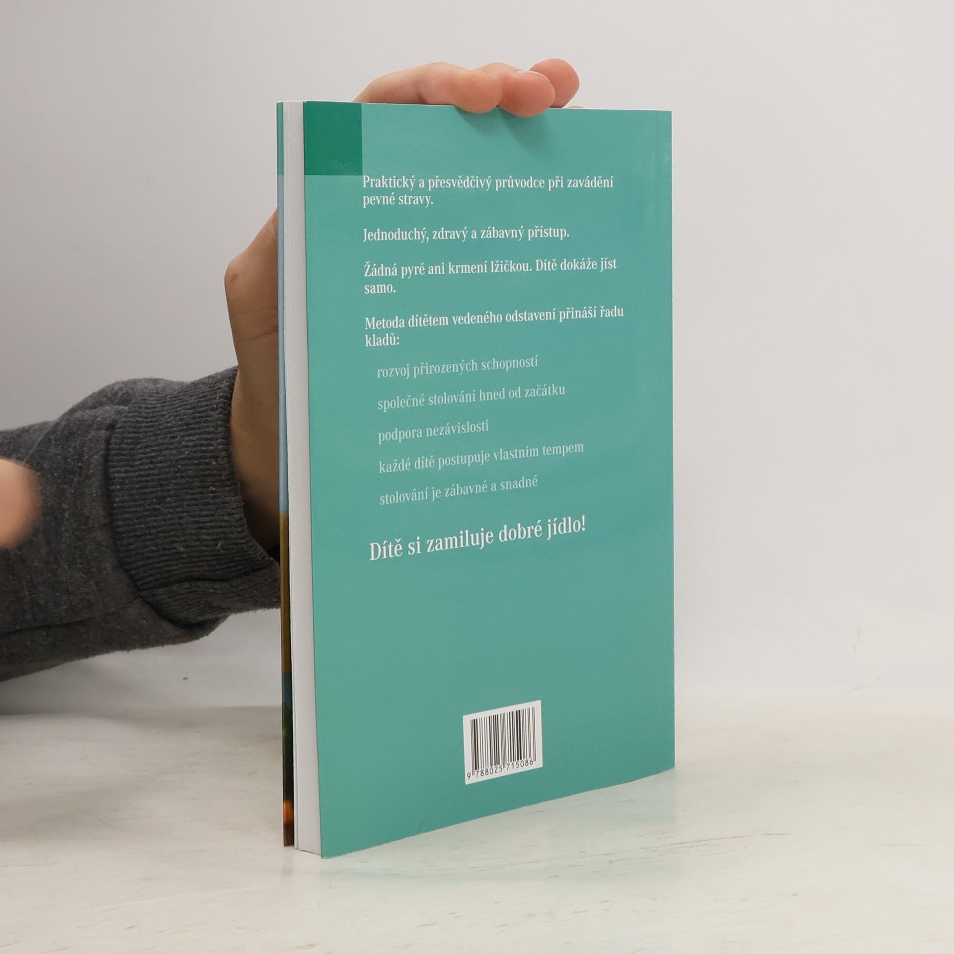 K českému čtenáři se konečně dostává kniha o „baby-led weaning“ (BLW), tedy o zřejmě nejpřirozenějším způsobu zavádění pevné stravy u kojenců, kdy celý proces řídí samo dítě- účastní se rodinného stolování, samo se krmí a samo si vybírá, co bude jíst. Díky tomu se rozvíjejí přirozené dovednosti a schopnosti dítěte, koordinace ruka-oko, jemná motorika, samostatnost… Není potřeba vařit žádná pyré, kašičky nebo přesnídávky. Jídlo je zábava a jídelní stůl se nemění v bojiště, jak tomu často bývá při klasickém krmení lžičkou. Autorky- odbornice na stravování malých dětí a novinářka- v knize popisují celý proces „dítětem vedeného odstavení“, radí kdy, jak a s čím začít, ale i na co dávat pozor a čemu se vyhnout. Především však čtenářům poradí, jak dítěti pomoci k tomu, aby si zamilovalo dobré jídlo.