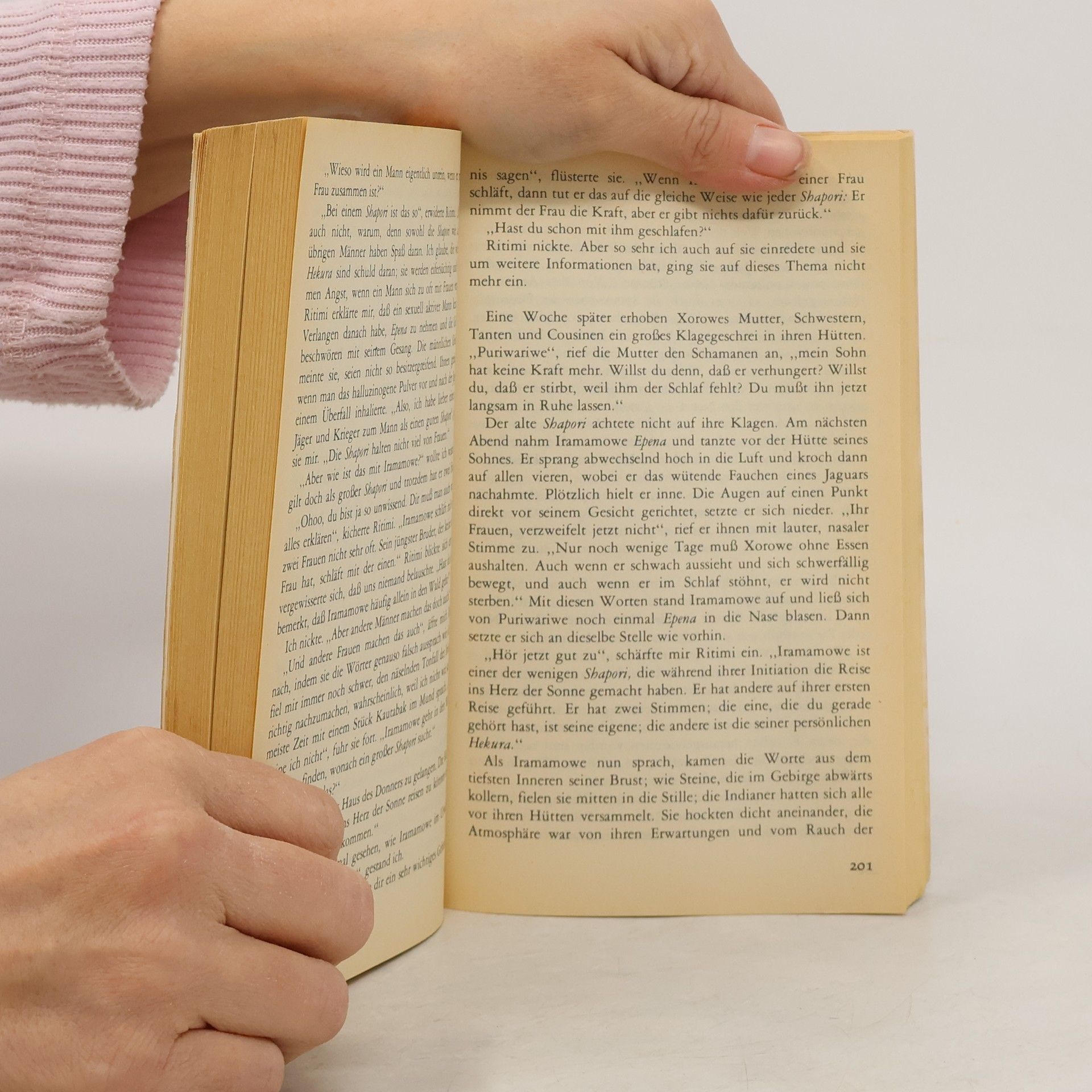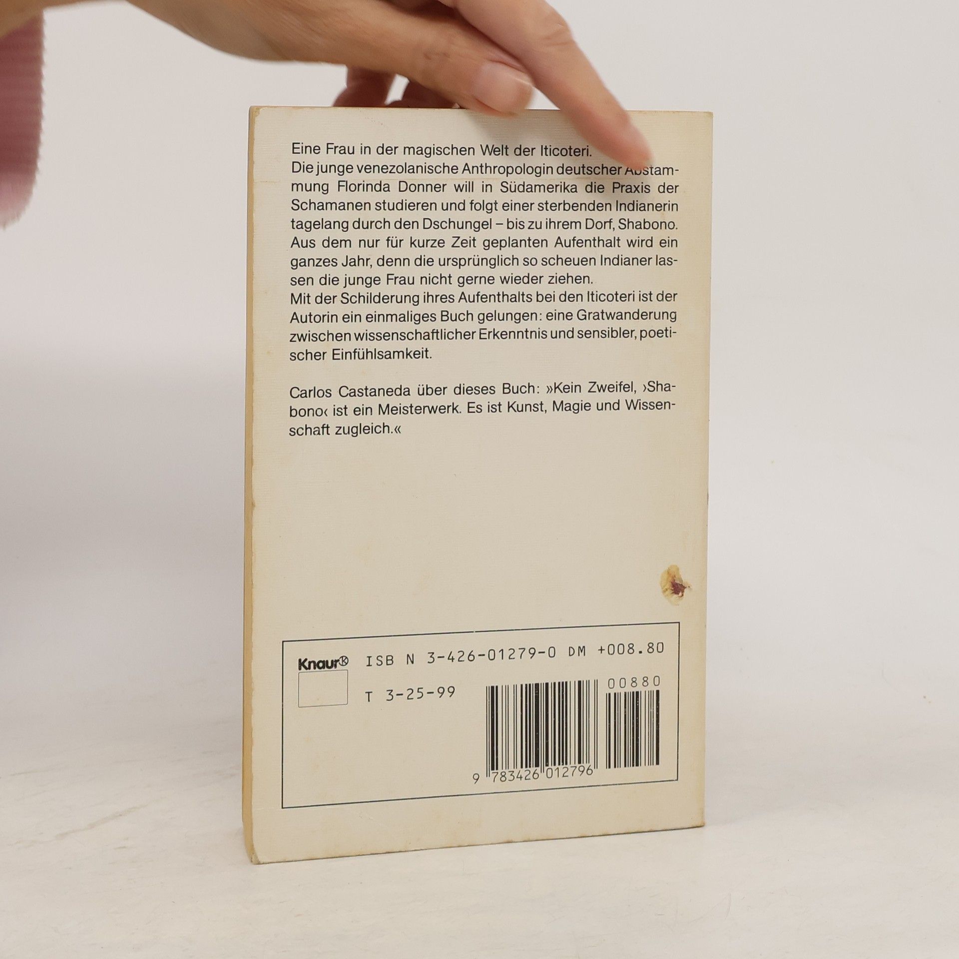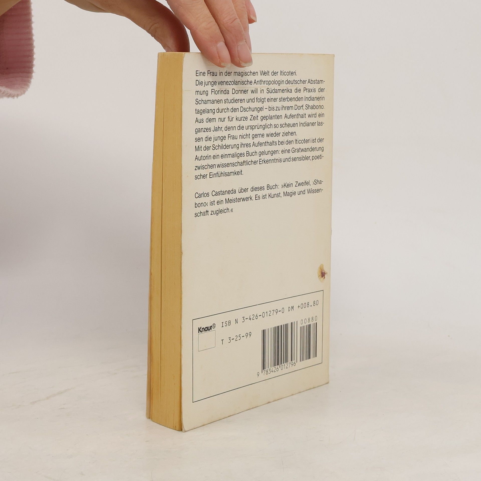 Auf der Suche nach den Heilmethoden der Indianer Venezuelas folgt Florinda Donner einer sterbenden Indianerin tagelang durch den Dschungel, bis zu ihrem Dorf. Aus dem anfangs nur für kurze Zeit geplanten Aufenthalt wird ein ganzes Jahr, denn die ursprünglich so scheuen Indianer wollen die junge Frau nicht mehr ziehen lassen. So lernt sie den eigentümlichen Thytmus des Lebens im Shabono kennen und schließt Freundschaft mit den Dorfbewohnern. - Ein eindringlicher, ungemein farbiger Bericht über Magie und Alltag einer ursprünglichen Kultur. „Kein Zweifel “Shabono„ ist ein Meisterwerk. Es ist Kunst, Magie und Wissenschaft zugleich.“ Carlos Castaneda Florinda Donner ist eine der langjährigen Gefährtinnen des Bestsellerautors und Schamanen Carlos Castaneda und eine weitere Schülerin des legendären Yaqui-Zauberers Don Juan Matus. Zusammen mit ihm lehrte sie in den letzten Jahren Tensegrity, die magischen Bewegungen der Zauberer, auf Workshops und Seminaren in aller Welt.