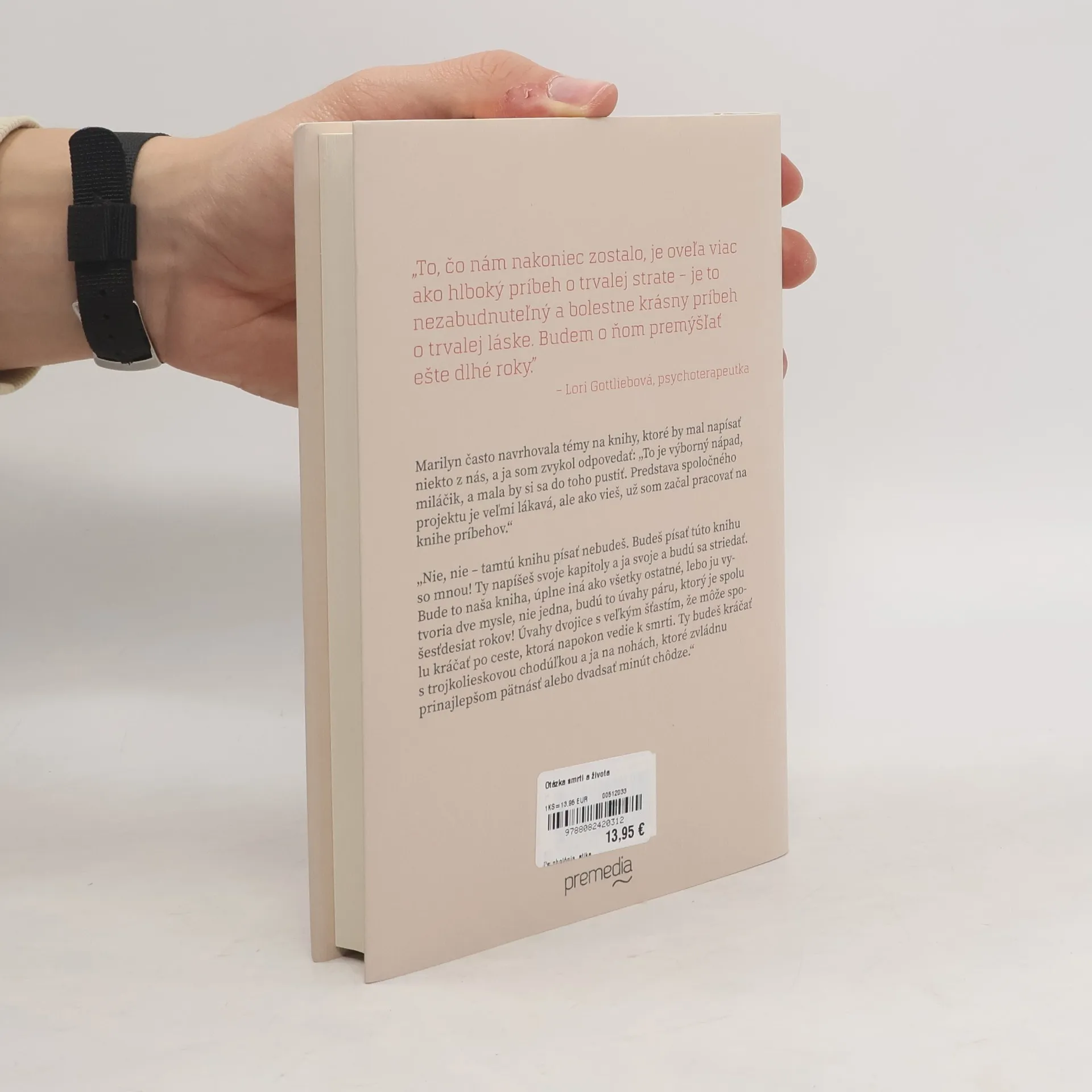 Psychiater a spisovateľ Irvin Yalom zasvätil svoj život pomáhaniu ľuďom trpiacim úzkosťami a smútkom. Nikdy sa však nestretol s potrebou poradiť sám sebe, kým jeho manželke, uznávanej feministickej spisovateľke Marilyn Yalomovej, nediagnostikovali rakovinu. V knihe Otázka smrti a života sa Marilyn a Irv delia o svoje skúsenosti s tým, ako sa pustili do nového boja: umožniť Marilyn zomrieť dobrou smrťou a Irvovi žiť ďalej bez nej. V striedavom rozprávaní o ich posledných spoločných mesiacoch a Irvových prvých mesiacoch osamote nám ponúkajú vzácny pohľad do tváre smrteľnosti a vyrovnávania sa so stratou milovanej osoby. Manželia Yalomovci mali veľa požehnania – milujúcu rodinu, dom v Palo Alto pod nádherným starým dubom, veľký okruh priateľov, vášnivých čitateľov po celom svete a dlhé, naplnené manželstvo – ale čelili smrti tak ako všetci ostatní. S múdrosťou a láskou, ktorá v ich prípade trvala takmer sedemdesiat rokov, skúmajú univerzálne otázky intimity, lásky a smútku. Kniha Otázka smrti a života, vychádzajúca z dvoch životných skúseností, je otvorenou ponukou pre každého, kto hľadá podporu, útechu a zmysluplný život.