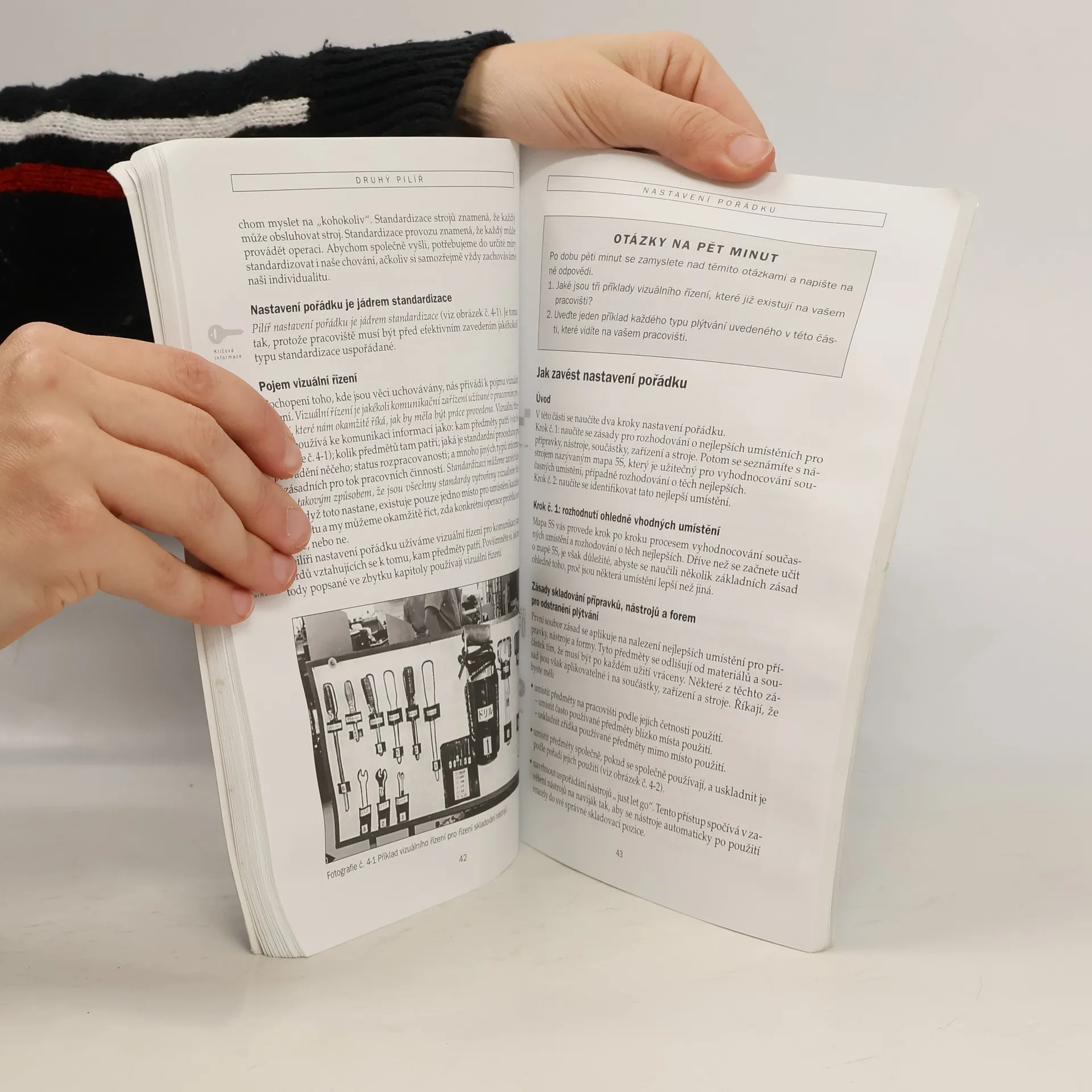 Kniha o metóde 5S, ktorá je základom nielen pre LEAN manufacturing ale pre akýkoľvek typ výroby, od jedného z jej zakladateľov. 5S pozostáva z 5 krokov/etáp, ktoré umožnia vytriediť všetko potrebné pre prácu, usporiadať čo najvhodnejšie pre použitie, vyčistiť a udržať daný stav v akýchkoľvek výrobných, skladových, kancelárskych priestoroch aj dielňach. V knihe sú stručne a jasne popísané jednotlivé etapy 5S aj s ich výhodami a najvhodnejšími spôsobmi ich zavádzania.