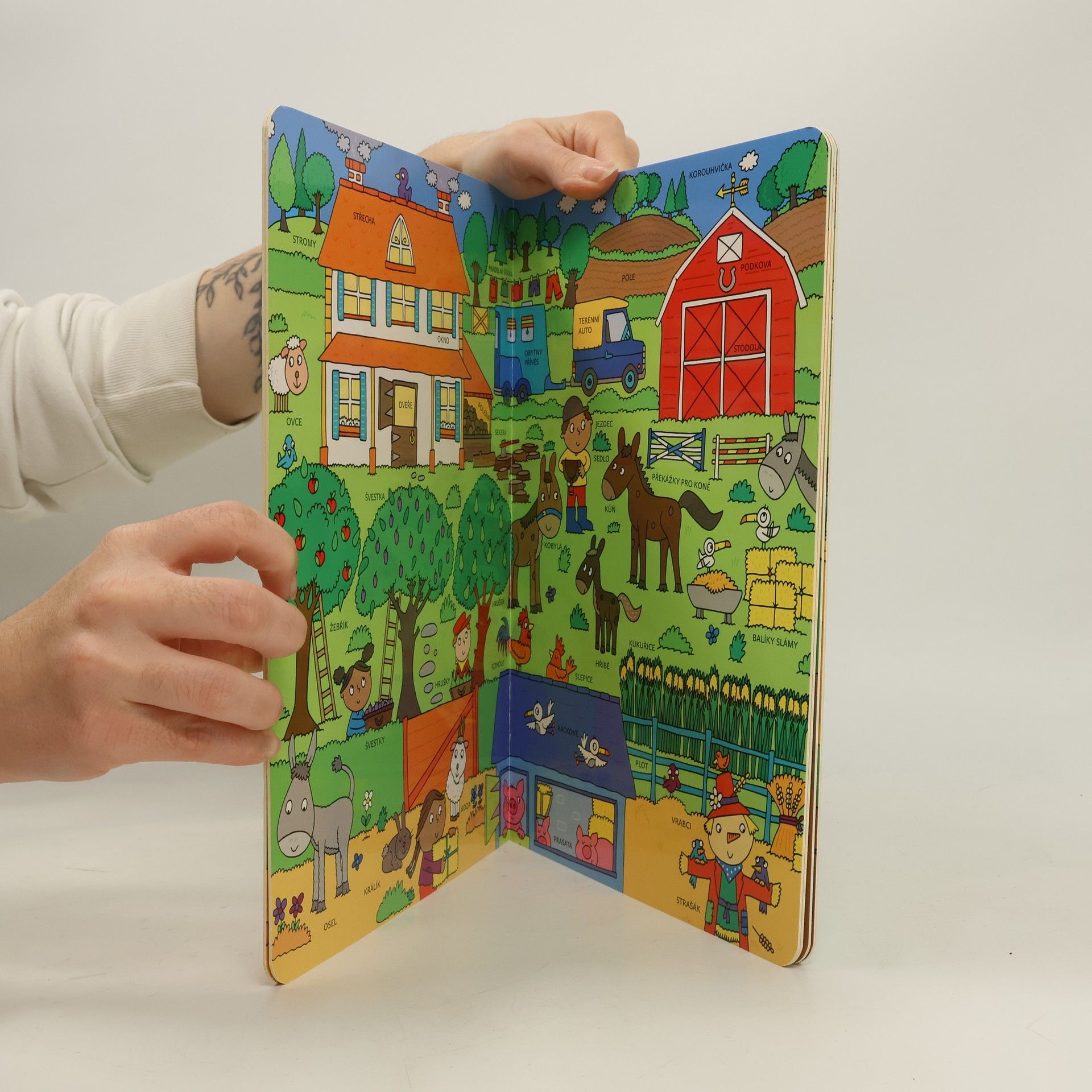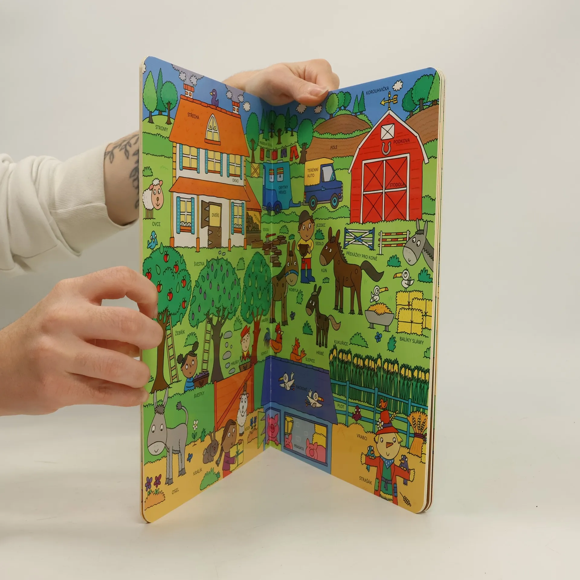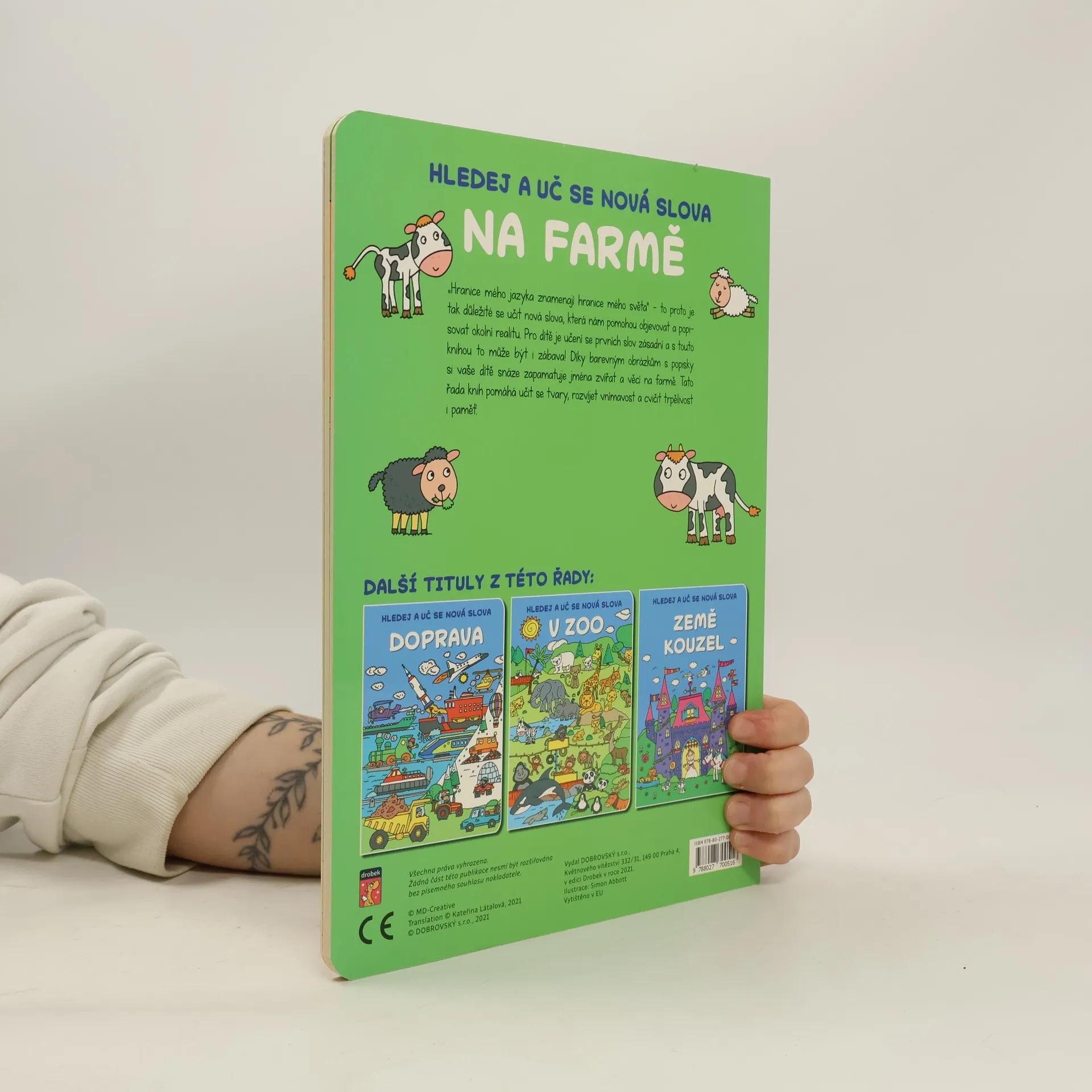 „Hranice mého jazyka znamenají hranice mého světa” - to proto je tak důležité se učit nová slova, která nám pomohou objevovat a popisovat okolní realitu. Pro dítě je učení se prvních slov zásadní a s touto knihou to může být i zábava! Díky barevným obrázkům s popisky si vaše dítě snáze zapamatuje jména zvířat a věcí na farmě. Tato řada knih pomáhá učit se tvary, rozvíjet vnímavost a cvičit trpělivost i paměť.