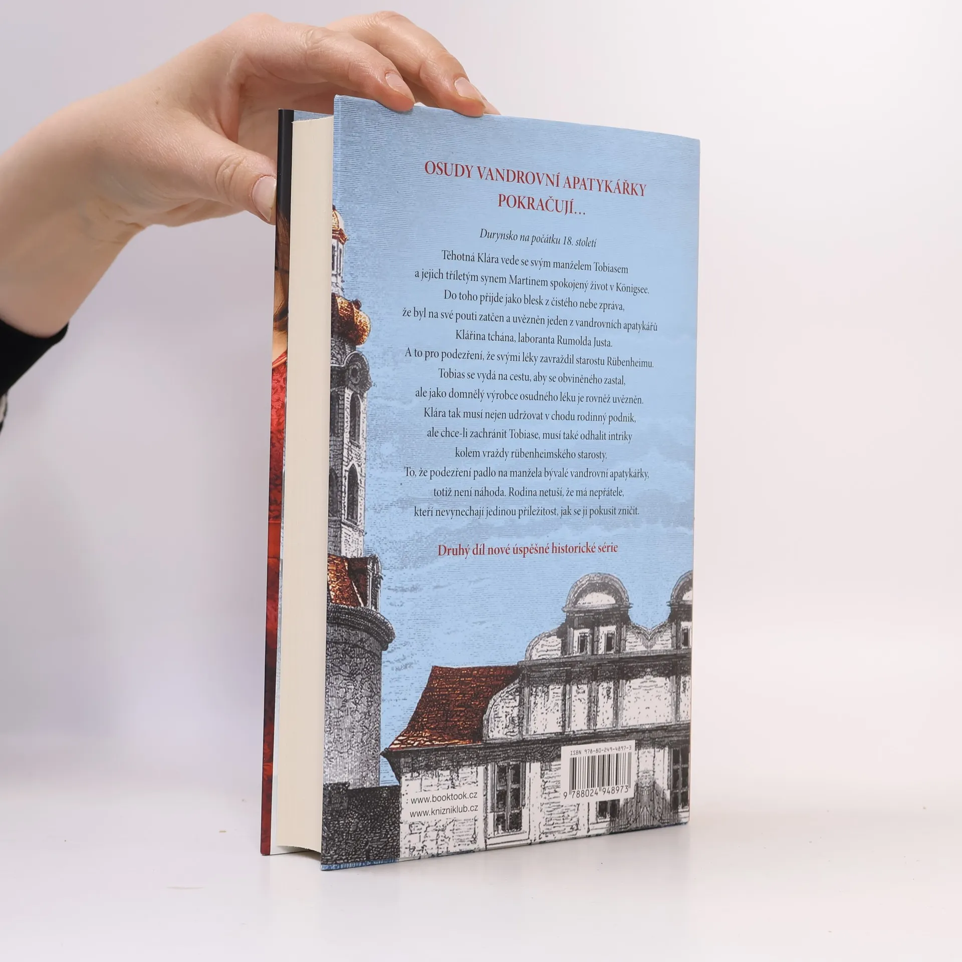 Durynsko na počátku 18. století. Těhotná Klára vede se svým manželem Tobiasem a jejich tříletým synem Martinem spokojený život v Königsee. Náhle se dozví, že byl na své cestě zatčen a uvězněn jeden z vandrovních apatykářů jejího tchána, laboranta Rumolda Justa, kvůli podezření, že svými léky zavraždil starostu Rübenheimu. Jako domnělý výrobce osudného léku je uvězněn i Tobias. Klára tak musí nejen udržovat v chodu rodinný podnik, ale chce-li zachránit Tobiase, rovněž odhalit intriky kolem vraždy rübenheimského starosty… Druhý díl úspěšné historické série.