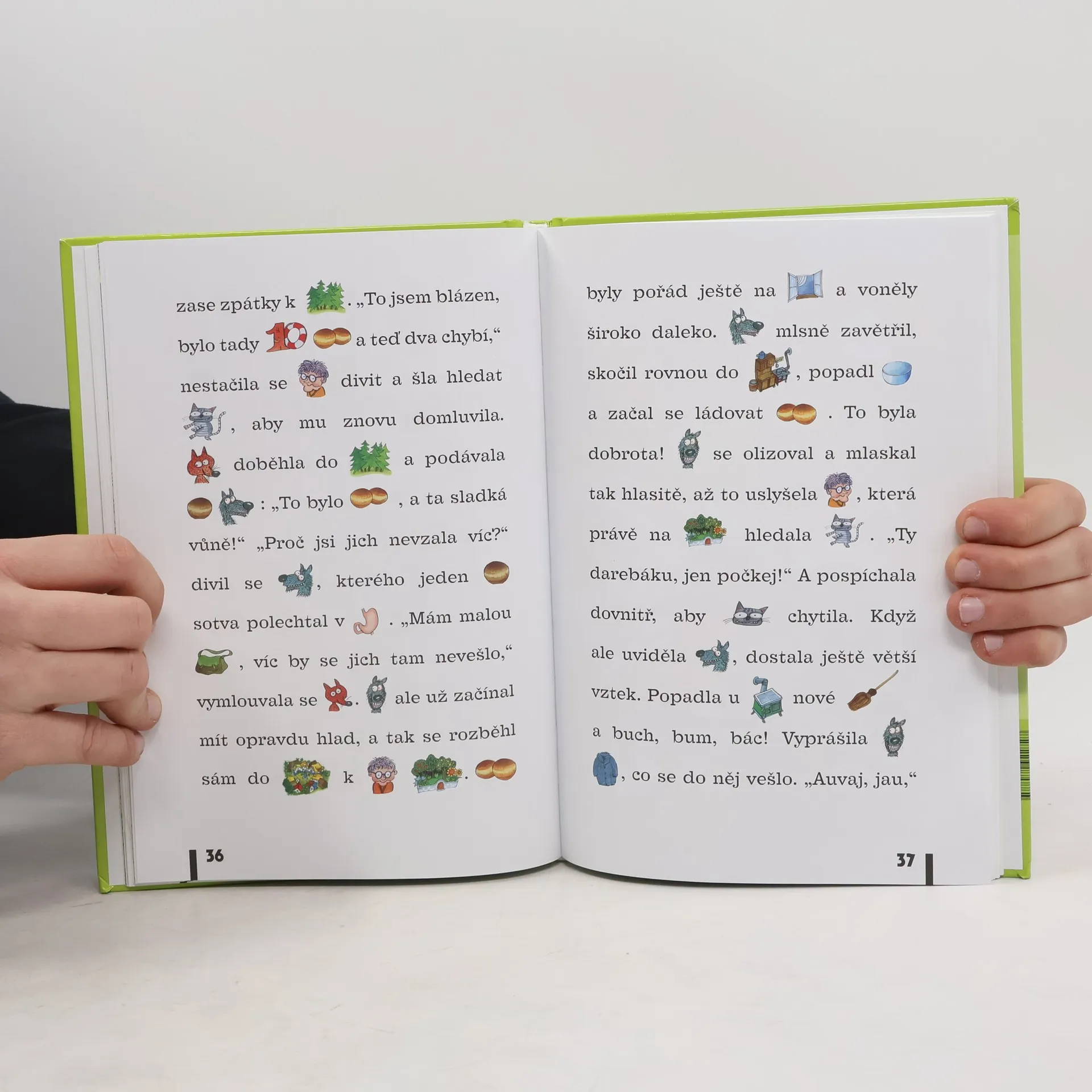 Postava starého, zlomyslneho vlka spojuje tři oohádky, ve kterych jsou desítky slov nahrazeny obrázky. Tzv. "dvojhlasné čtení", kdy dospělý předčítá a dítě doplňuje malovaná slova, hravou formou rozvíjí slovní zásobu dítěte i schopnost reprodukovat vyprávěný text.
