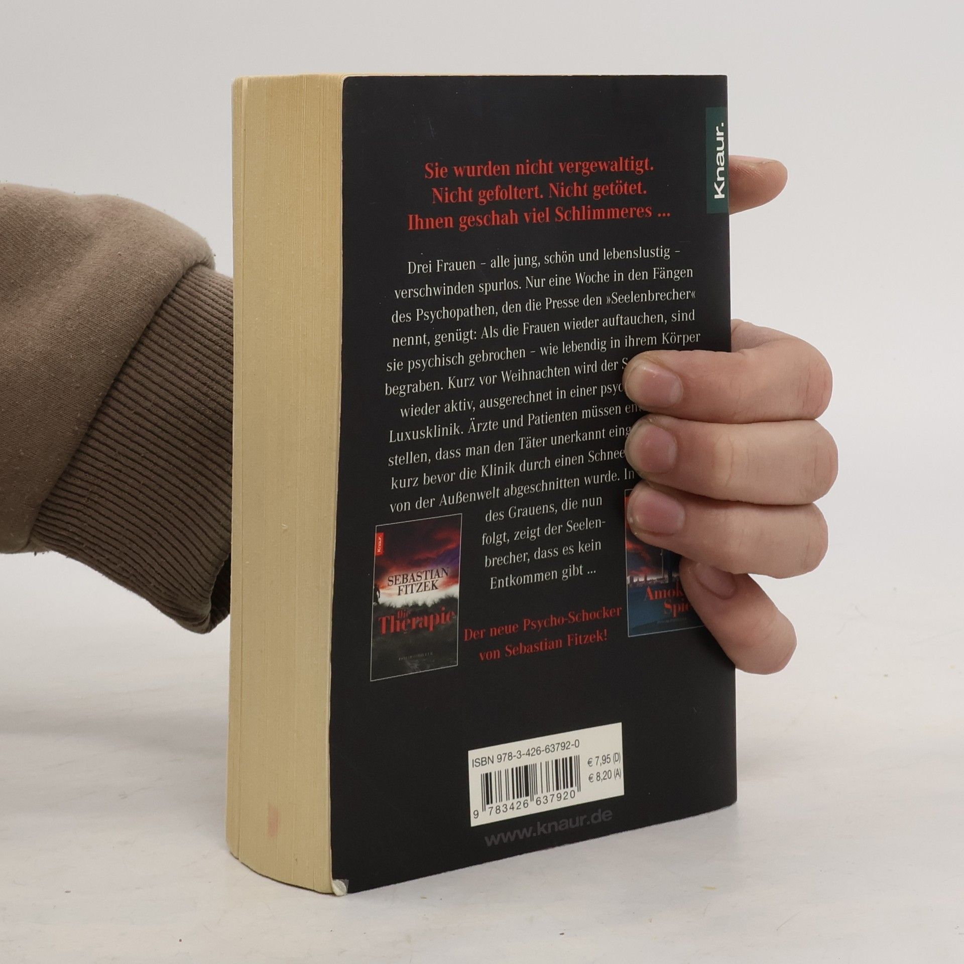 Sebastian Fitzek auf Nervenkitzel-Kurs: Sein bisher härtester Psychothriller! Sie wurden nicht vergewaltigt. Nicht gefoltert. Nicht getötet. Ihnen geschah viel Schlimmeres ... Drei Frauen – alle jung, schön und lebenslustig – verschwinden spurlos. Nur eine Woche in den Fängen des Psychopathen, den die Presse den »Seelenbrecher« nennt, genügt: Als die Frauen wieder auftauchen, sind sie psychisch gebrochen – wie lebendig in ihrem Körper begraben. Kurz vor Weihnachten wird der Seelenbrecher wieder aktiv, ausgerechnet in einer psychiatrischen Luxusklinik. Ärzte und Patienten müssen entsetzt feststellen, dass man den Täter unerkannt eingeliefert hat, kurz bevor die Klinik durch einen Schneesturm völlig von der Außenwelt abgeschnitten wurde. In der Nacht des Grauens, die nun folgt, zeigt der Seelenbrecher, dass es kein Entkommen gibt … Mit psychologischer Raffinesse und atemberaubender Spannung entführt Sebastian Fitzek seine Leser in die dunklen Abgründe der menschlichen Seele.