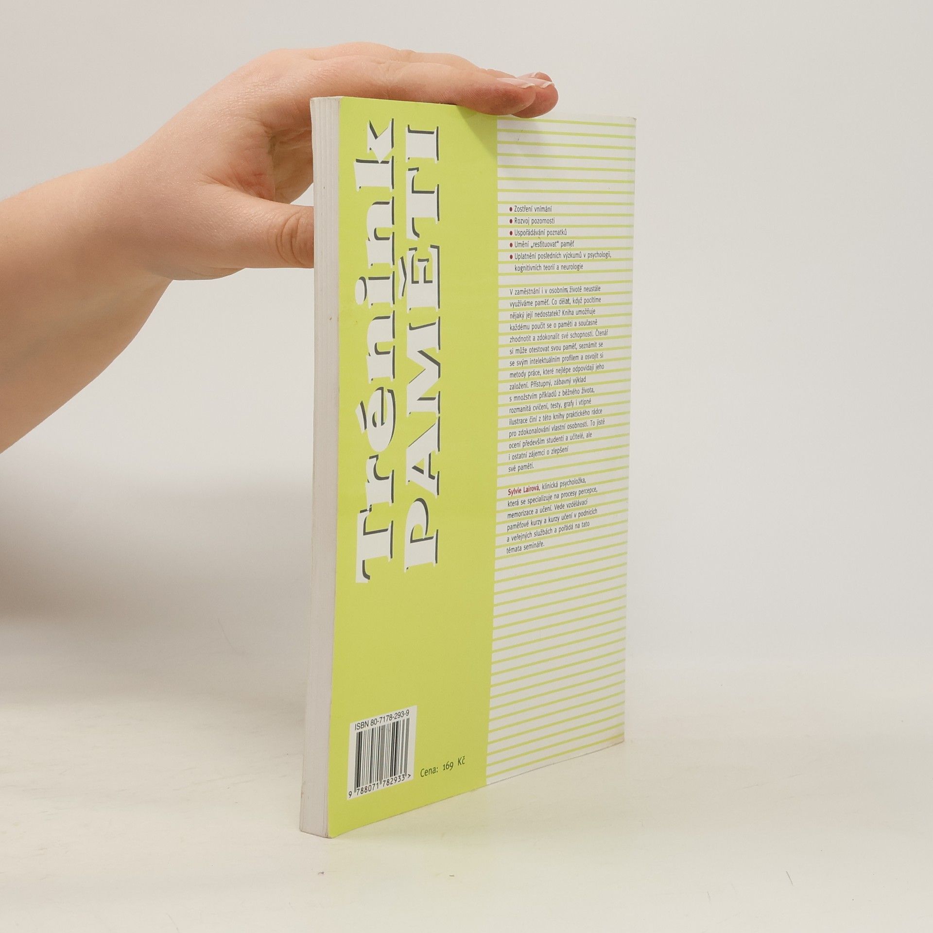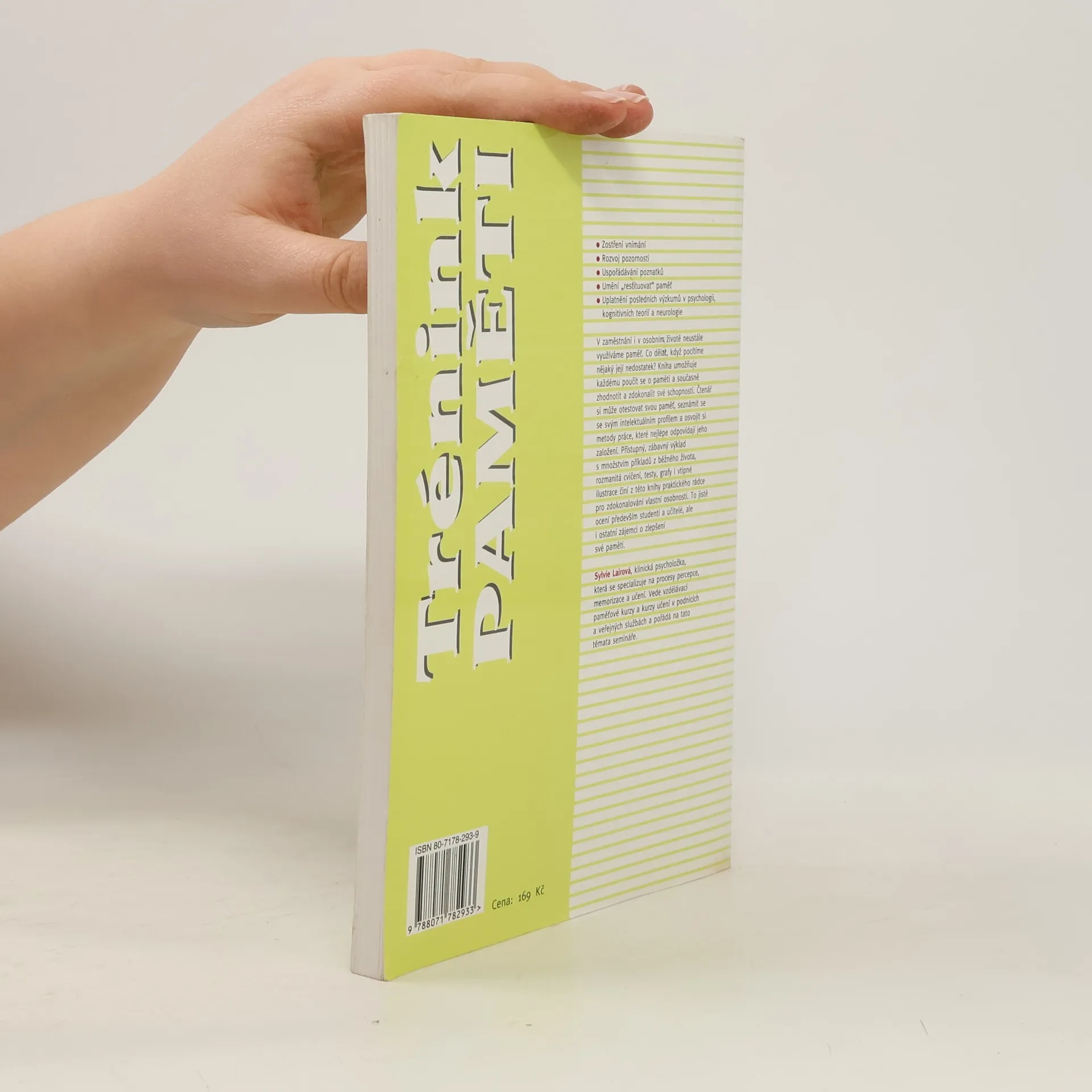 Principy, metody a cvičení pro využití a rozvoj paměti. V zaměstnání i v osobním životě neustále využíváme paměť. Co dělat, když pocítíme nějaký její nedostatek nebo dojde k výpadku? Kniha umožňuje každému poučit se o paměti a současně zhodnotit a zdokonalit své schopnosti. Čtenář si může otestovat svou paměť, seznámit se se svým intelektuálním profilem a osvojit si metody práce, které nejlépe odpovídají jeho založení. Přístupný, zábavný výklad s množstvím příkladů z běžného života, rozmanitá cvičení, testy, grafy i humorné ilustrace činí z této knihy praktického rádce pro zdokonalování vlastní osobnosti.