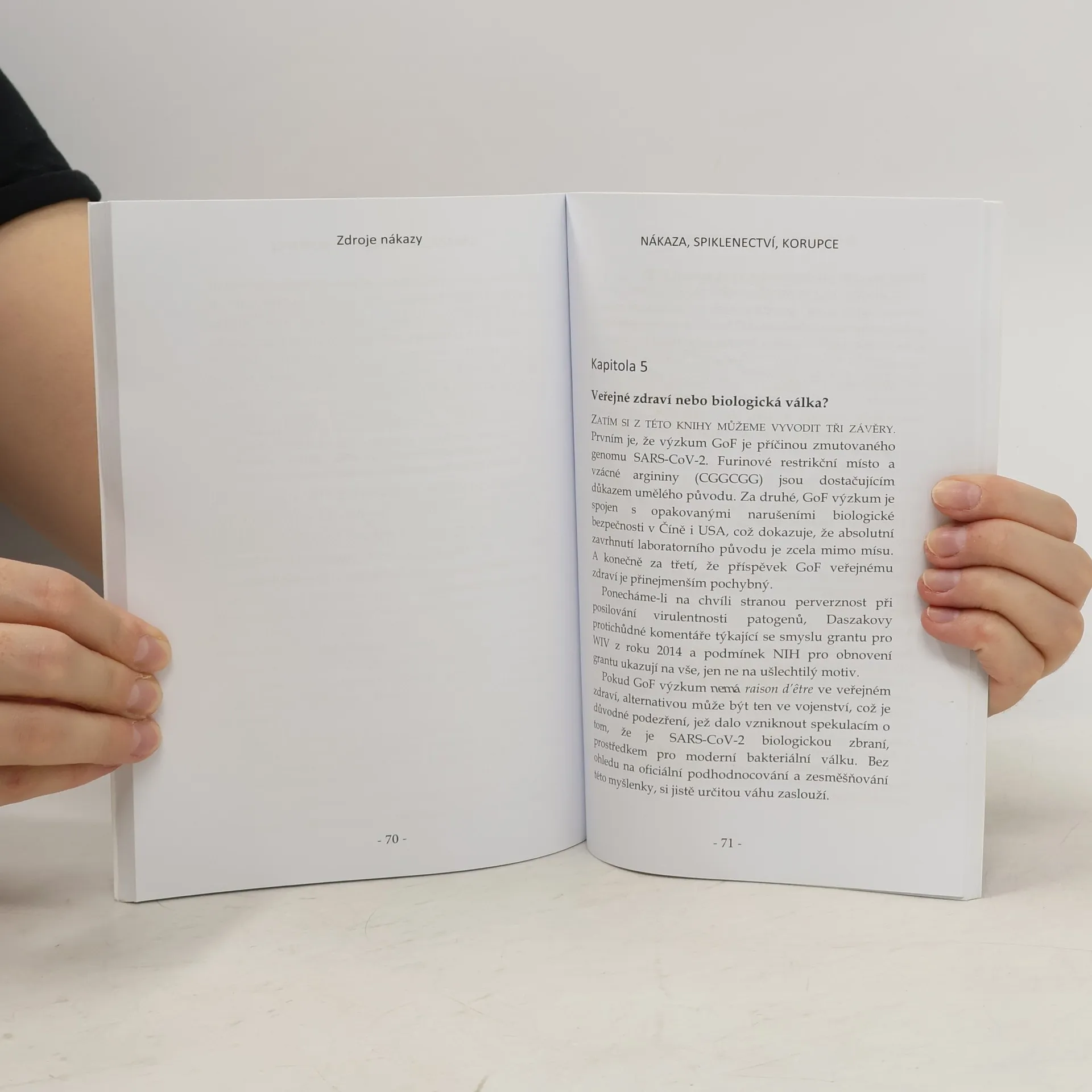 Tato kniha zkoumá, zda je "oficiální" příběh o SARS-CoV-2 nedostatečně podložen vědeckými důkazy, nebo zda jde o účelnou lež. Vyvrací tvrzení o přirozeném přenosu viru na člověka z netopýra či jiného zvířete, přičemž upozorňuje na absenci důkazů a defenzivní chování zastánců tohoto názoru. První kapitola se zaměřuje na slabiny tvrzení o přirozeném původu a chování jeho podporovatelů. Druhá kapitola vědecky zpochybňuje teorii, že SARS-CoV-2 vznikl ze SARS-CoV, přičemž důkazy vycházejí z epidemiologických a genetických srovnání. Důležité termíny jsou vysvětleny a jazyk je přizpůsoben pro širší veřejnost. Třetí kapitola přináší důkazy o syntetickém původu viru a o snahách skrýt tyto informace. Čtvrtá kapitola se zabývá počátky pandemie a zodpovědností USA v porovnání s Čínou. Pátá kapitola zkoumá motivy pro vytváření patogenních virů a otázku, zda by SARS-CoV-2 měl být považován za biologickou zbraň. Šestá kapitola mapuje rostoucí odpor vůči oficiálnímu narativu a rizika spojená s rychlým uvedením vakcíny proti COVID-19 bez dostatečného testování.