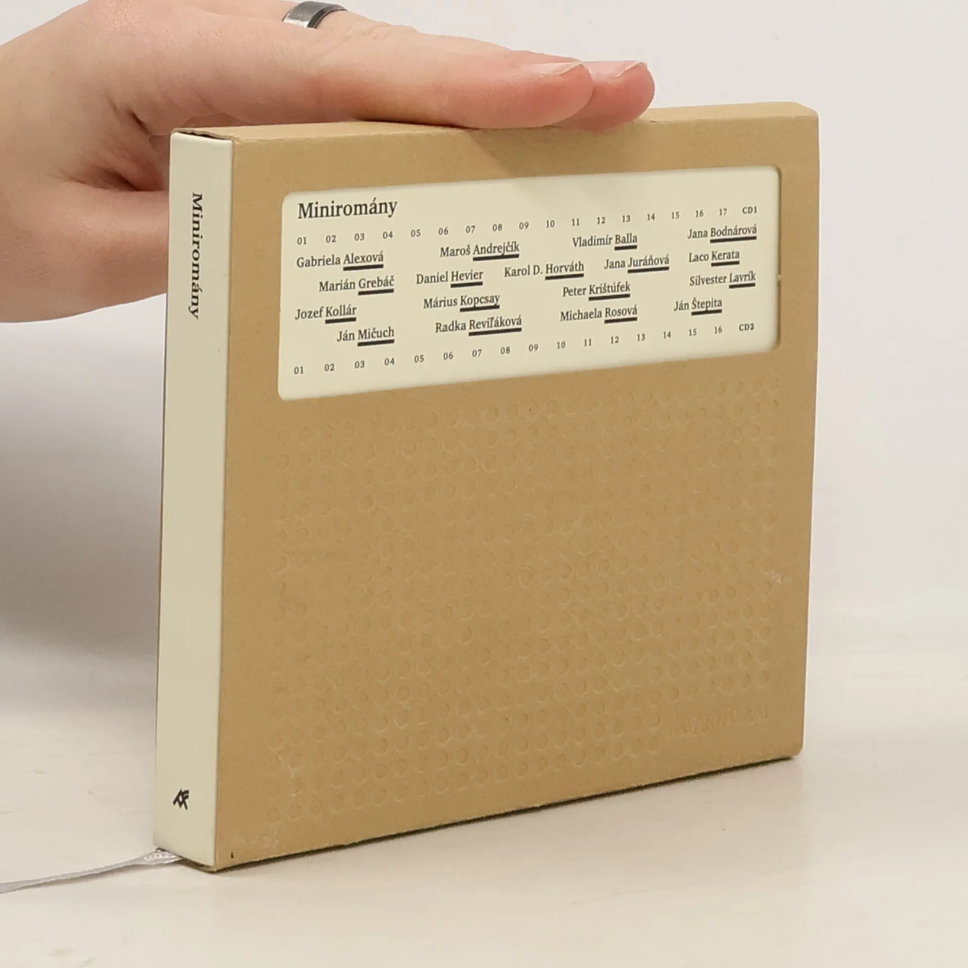 Dvojknižka a dvojcédečko Miniromány je výsledkom spojenia snáh Artfora a Slovenského rozhlasu: 35 v priemere trojminútových textíkov, 35 asi trojstranových nahrávok. Alebo naopak. Na tom koniec koncov nezáleží. Dôležité je, že na Slovensku sa píše.