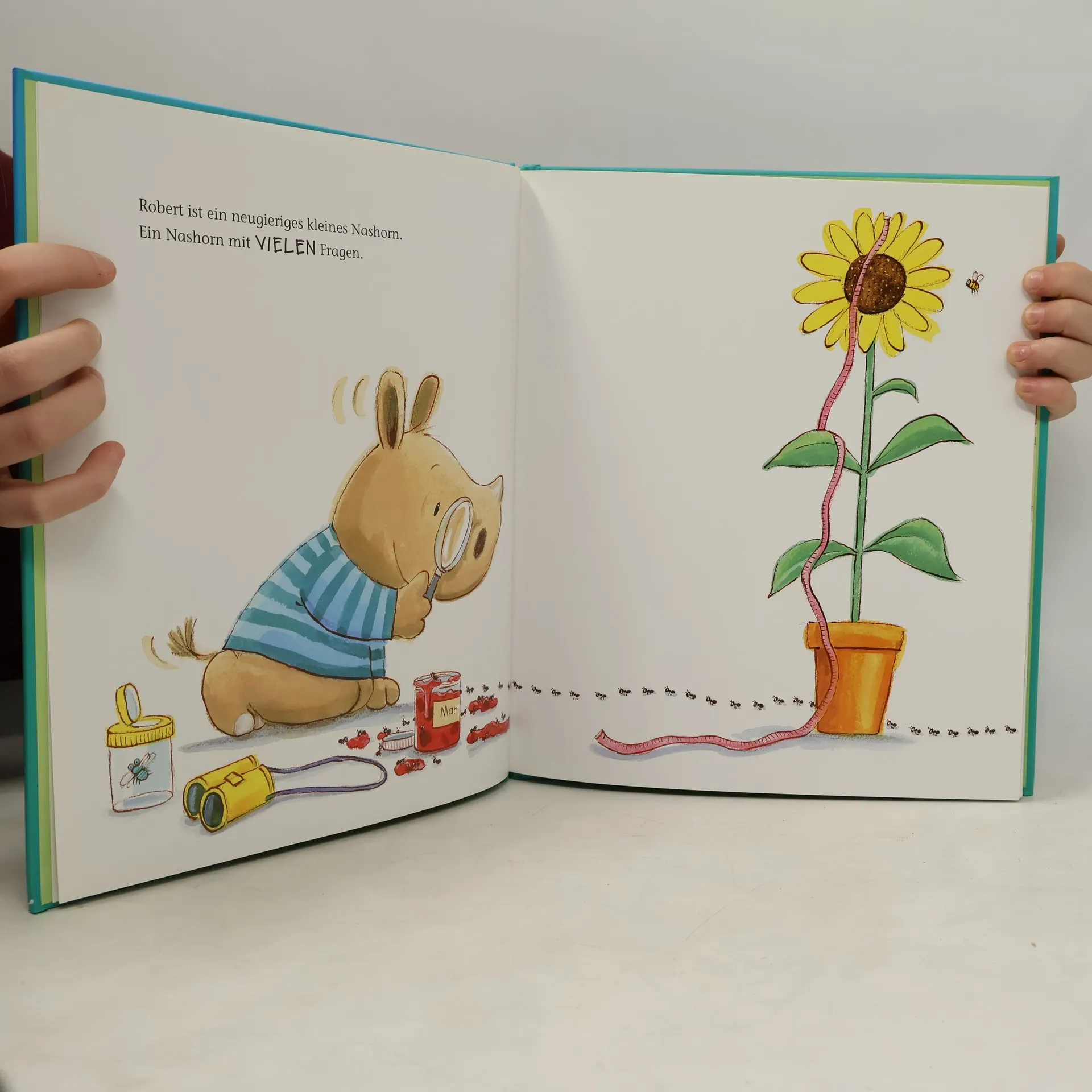 Robert ist ein neugieriges kleines Nashorn. Rund um die Uhr fragt er seinen Eltern Löcher in den Bauch - „WARUM klebt Matsch so?“ „WARUM krümelt Toast?“ „WARUM gehen Sachen kaputt, wenn sie runterfallen?“ Da haben seine Eltern eine vortreffliche Idee: Ein Museumsbesuch müsste die viele Fragerei doch stoppen! Aber sie haben die Rechnung leider ohne ihr Nashörnchen gemacht … Ein charmantes und witziges Bilderbuch für alle, deren Kinder auch so gerne WARUM? fragen!