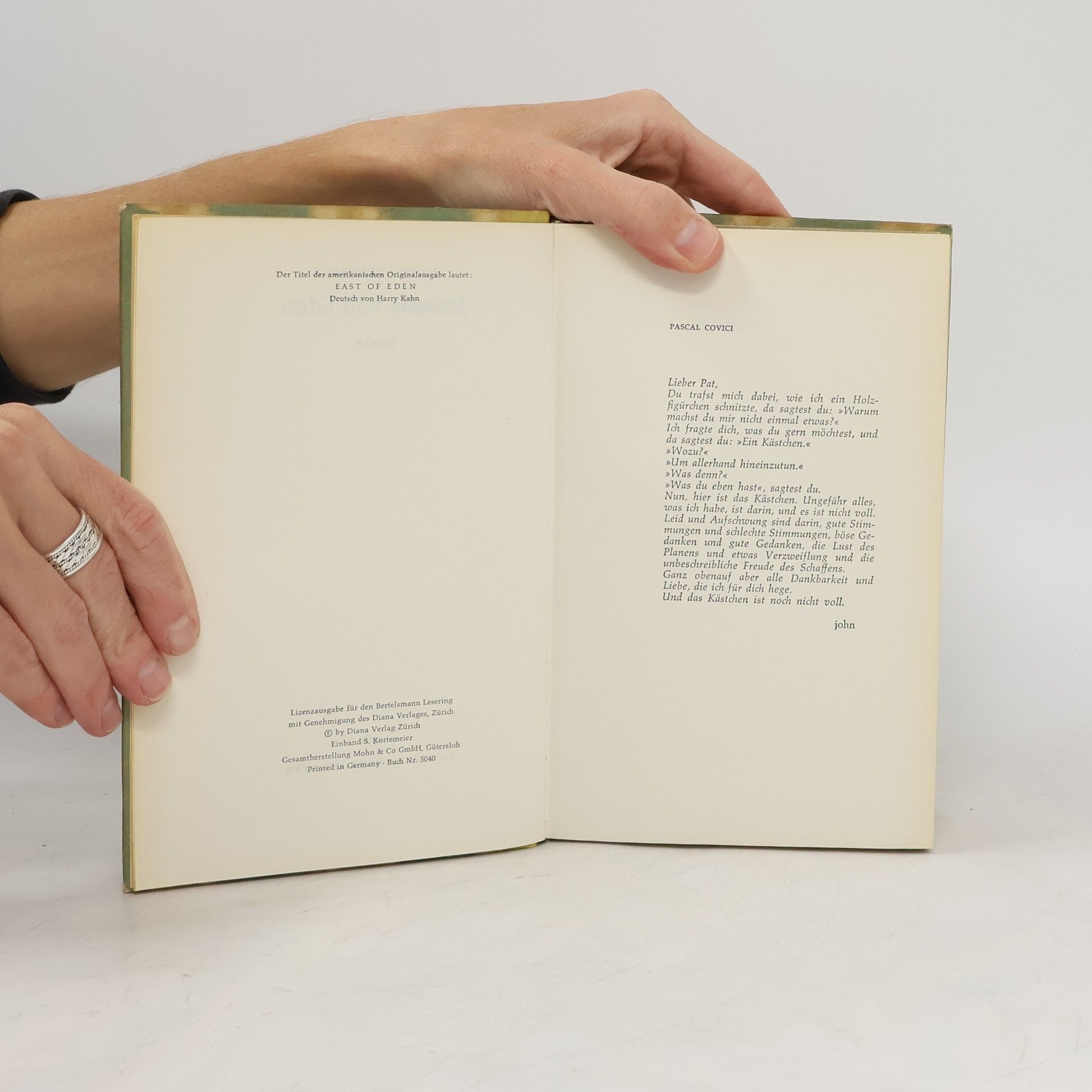 Kain und Abel - das biblische Motiv wird in dieser amerikanischen Familiensaga neu erzählt, die in der Zeit vom Bürgerkrieg bis zum Ersten Weltkrieg spielt und auch in der Verfilmung durch Elia Kazan mit James Dean in der Hauptrolle zu einem Welterfolg wurde.