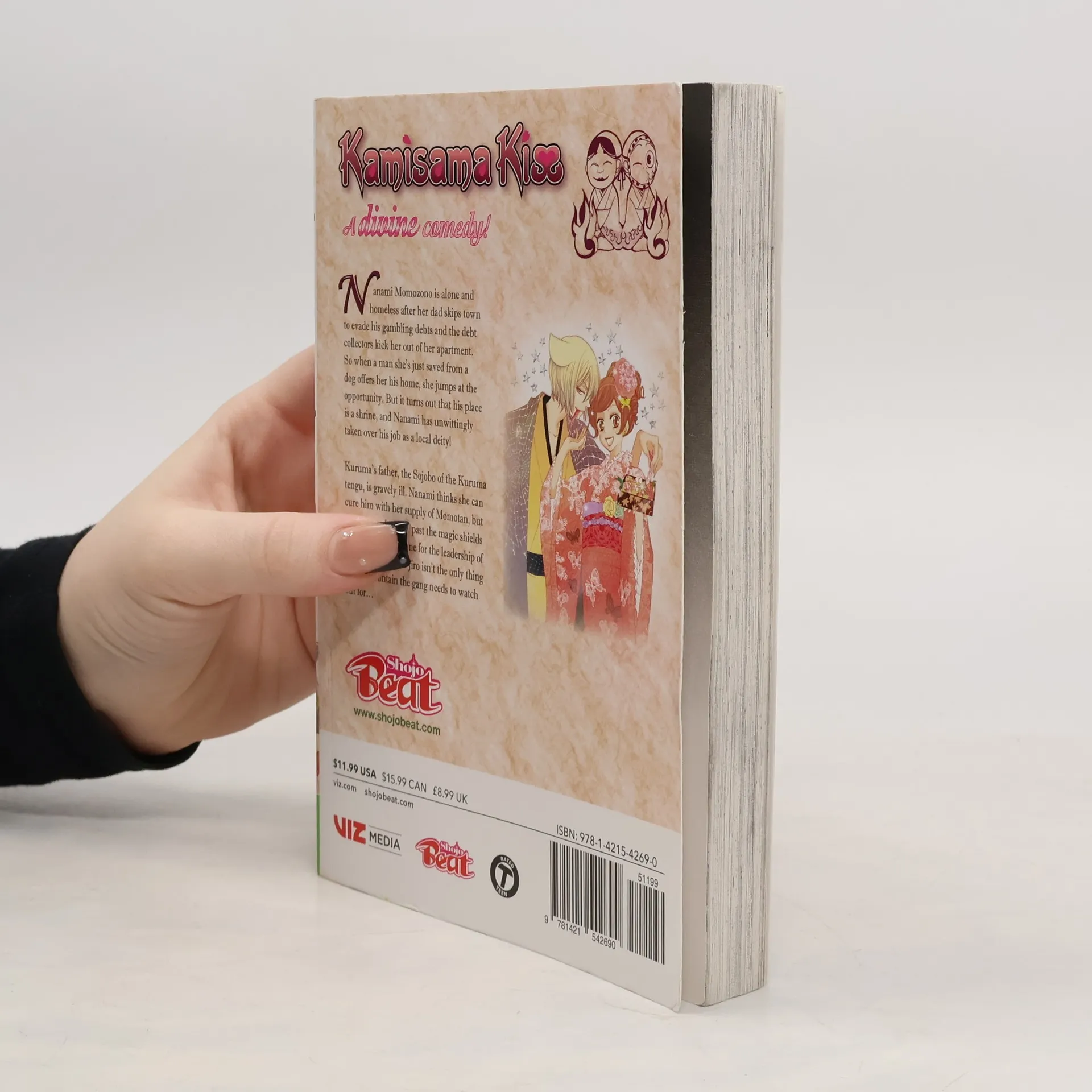 A divine comedy! Reads R to L (Japanese Style), for audiences rated teen. Nanami Momozono is alone and homeless after her dad skips town to evade his gambling debts and the debt collectors kick her out of her apartment. So when a man she's just saved from a dog offers her his home, she jumps at the opportunity. But it turns out that his place is a shrine, and Nanami has unwittingly taken over his job as a local deity! Kuruma’s father, the Sojobo of the Kuruma tengu, is gravely ill. Nanami thinks she can cure him with her supply of Momotan, but first she needs to get past the magic shields of Jiro, the next in line for the leadership of the mountain. And Jiro isn’t the only thing on the mountain the gang needs to watch out for…