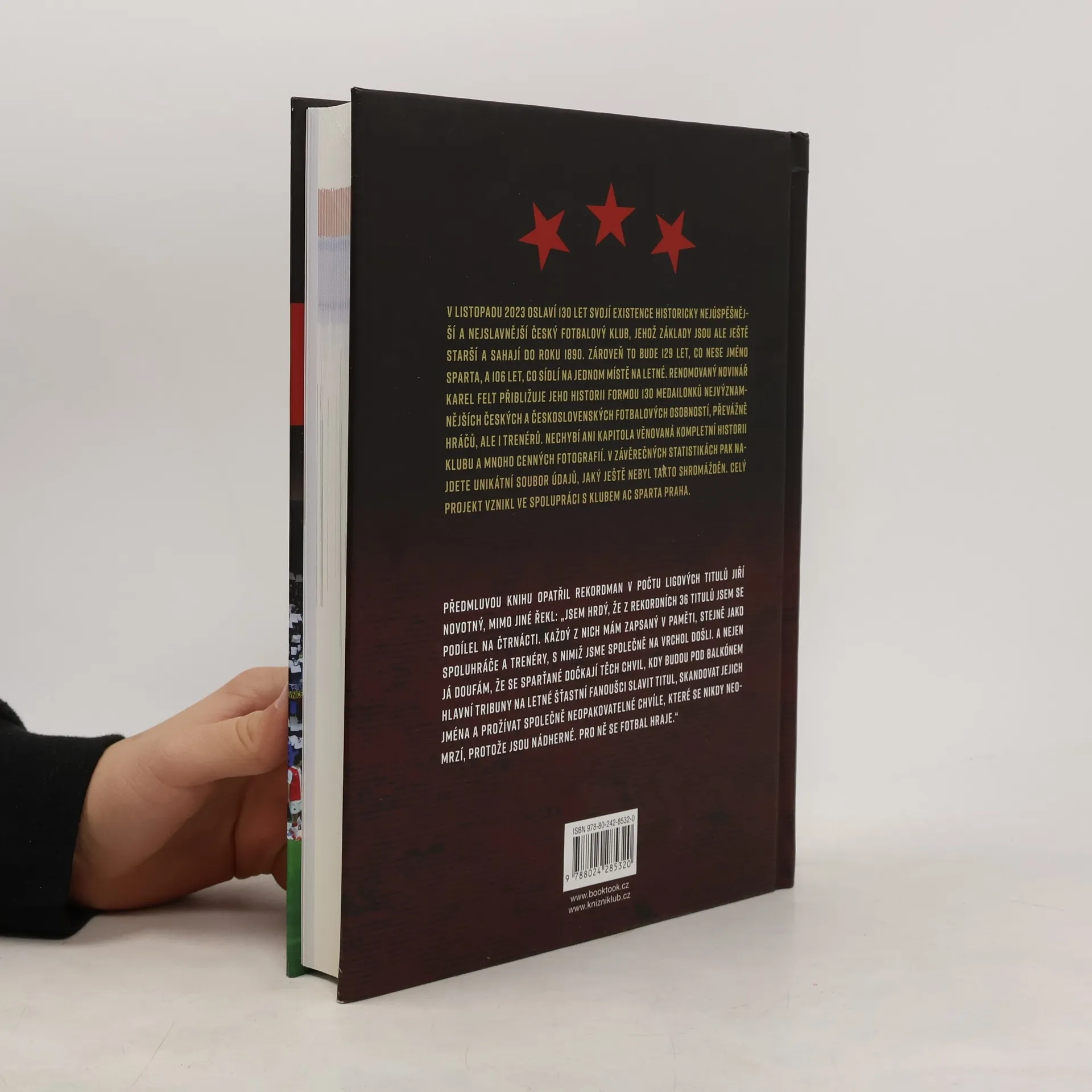 V listopadu 2023 oslaví nejúspěšnější český fotbalový klub AC Sparta Praha 130. výročí od svého založení. Renomovaný novinář Karel Felt přibližuje jeho historii formou 130 medailonků nejvýznamnějších českých a československých fotbalových osobností, převážně hráčů, ale i trenérů či funkcionářů. Nechybí ani kapitola věnovaná kompletní historii klubu nebo přehledné statistiky a mnoho unikátních fotografií. Celý projekt vznikl ve spolupráci s klubem AC Sparta Praha, který touto publikací zahajuje rok oslav.