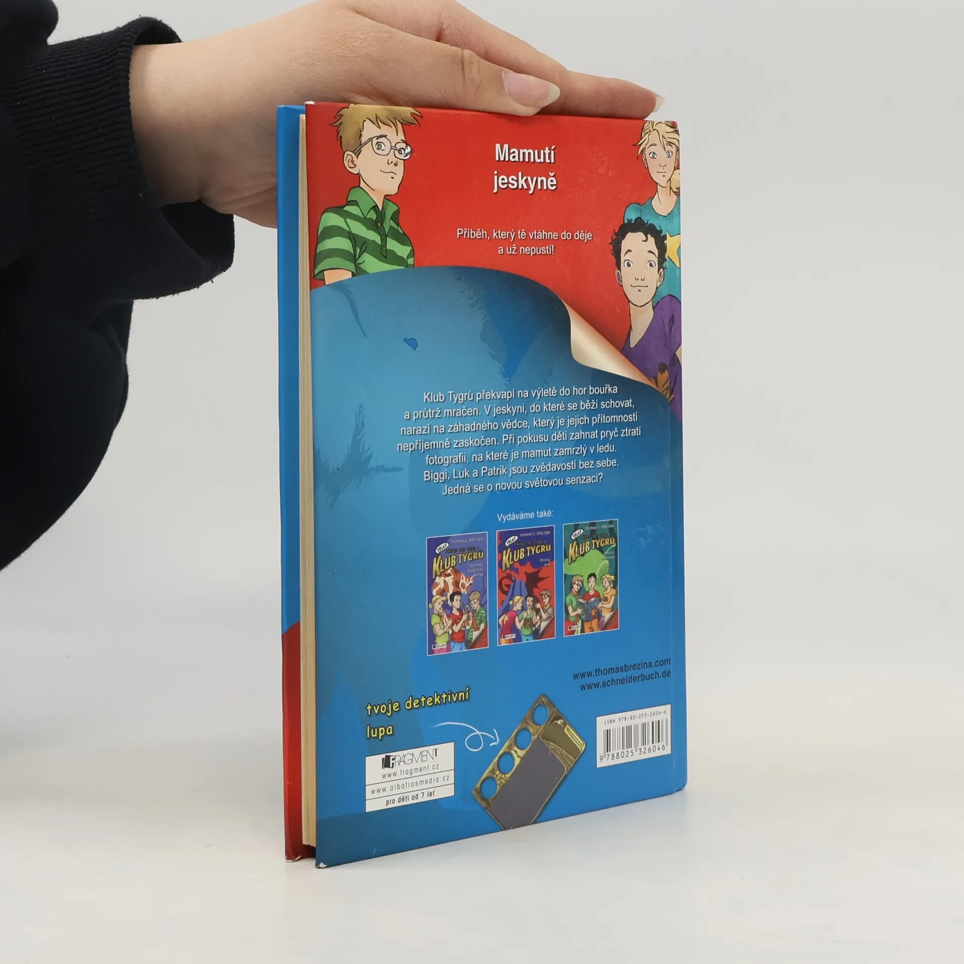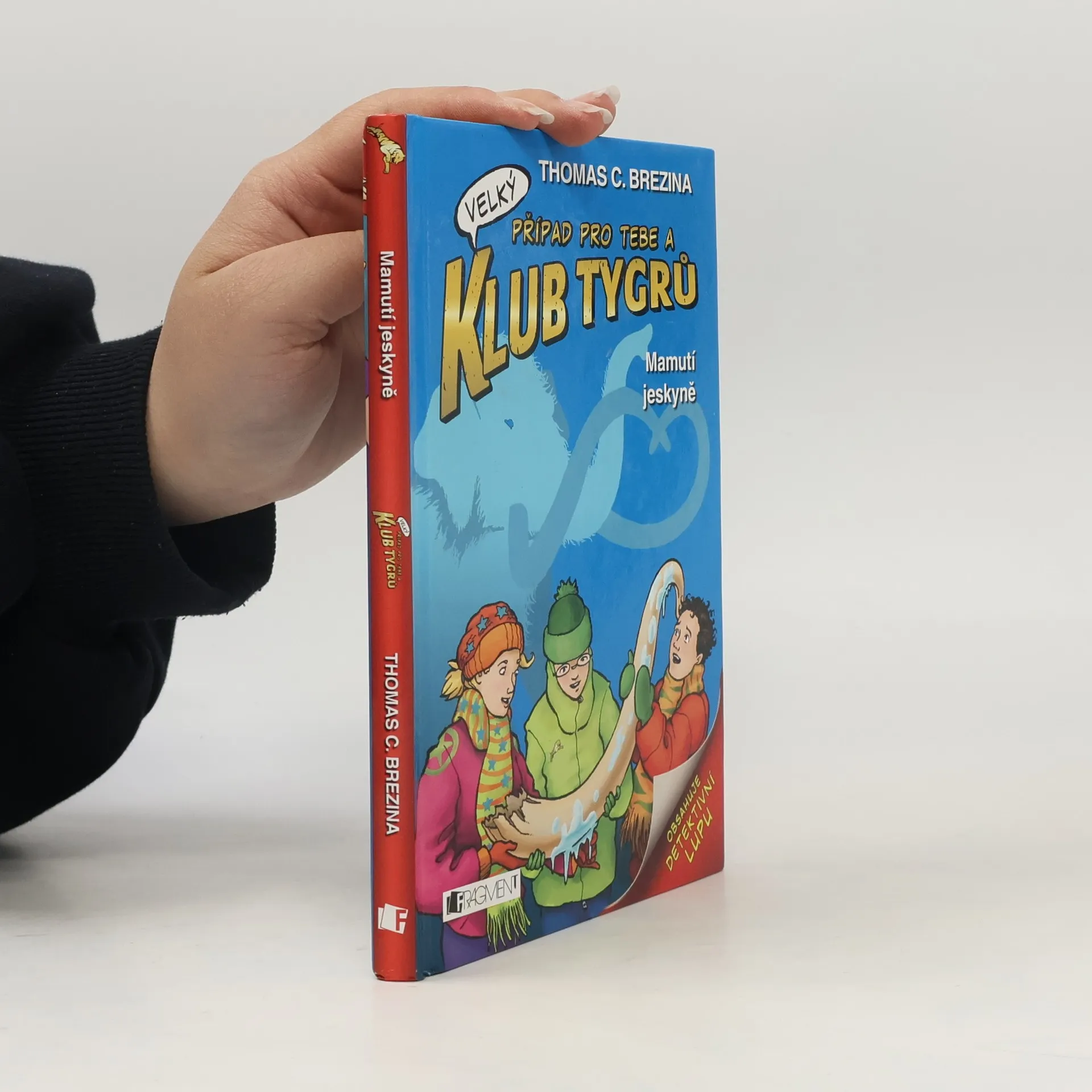 Klub Tygrů pro mladší čtenáře. Klub Tygrů překvapí na výletě do hor bouřka a průtrž mračen. V jeskyni, do které se běží schovat, narazí na záhadného vědce, který je jejich přítomností nepříjemně zaskočen. Při pokusu děti zahnat pryč ztratí fotografii, na které je mamut zamrzlý v ledu. Biggi, Luk a Patrik jsou zvědavostí bez sebe. Jedná se o novou světovou senzaci?