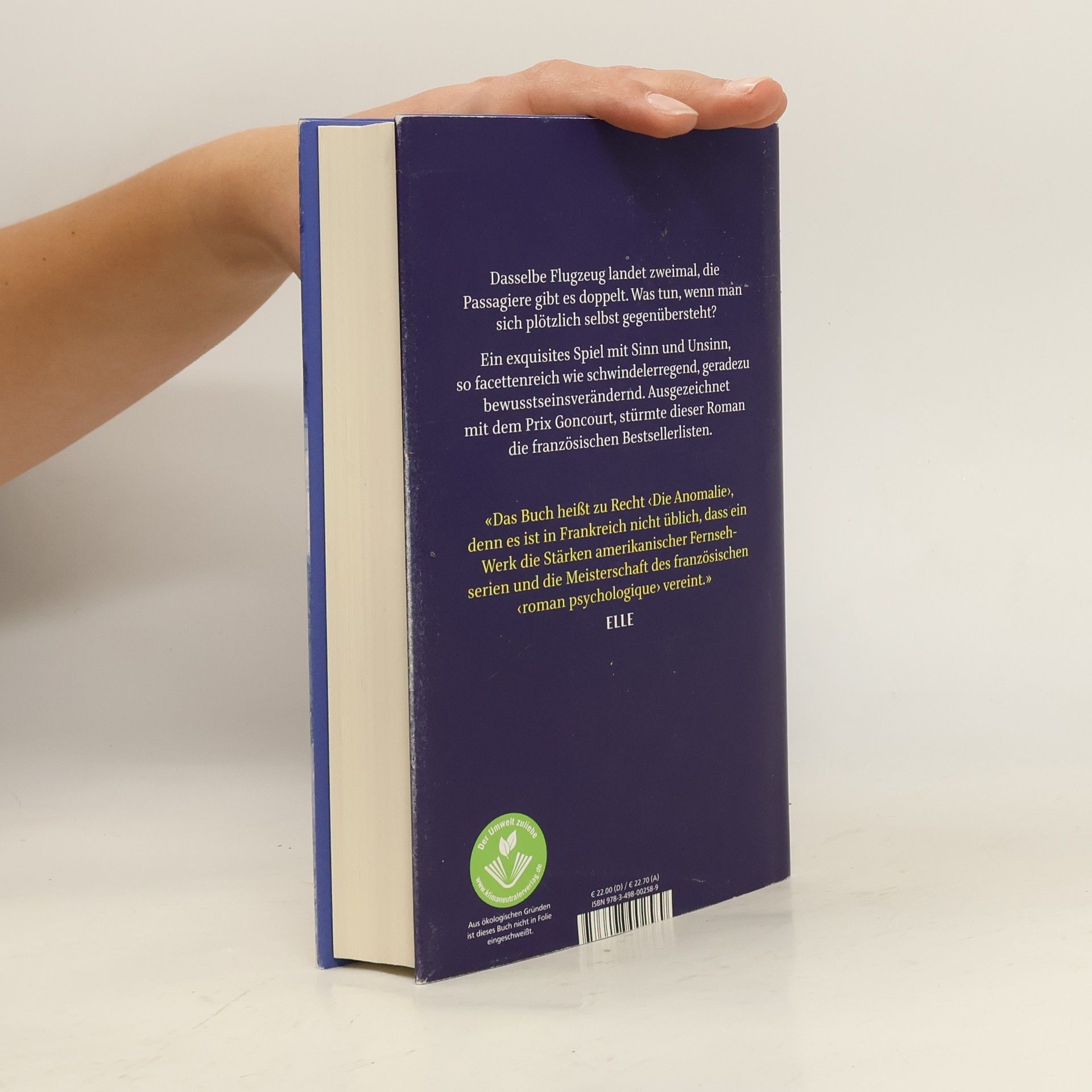 Der spektakuläre Bestseller aus Frankreich: eine brillante Mischung aus Thriller, Komödie und großer Literatur. Im März 2021 fliegt eine Boeing 787 auf dem Weg von Paris nach New York durch einen elektromagnetischen Wirbelsturm. Die Turbulenzen sind heftig, doch die Landung glückt. Allerdings: Im Juni landet dieselbe Boeing mit denselben Passagieren ein zweites Mal. Im Flieger sitzen der Architekt André und seine Geliebte Lucie, der Auftragskiller Blake, der nigerianische Afro-Pop-Sänger Slimboy, der französische Schriftsteller Victor Miesel, eine amerikanische Schauspielerin. Sie alle führen auf unterschiedliche Weise ein Doppelleben. Und nun gibt es sie tatsächlich doppelt − sie sind mit sich selbst konfrontiert, in der Anomalie einer verrückt gewordenen Welt. Hochkomisch und teuflisch intelligent spielt der Roman mit unseren Gewissheiten und fragt nach den Grenzen von Sprache, Literatur und Leben. Facettenreich, weltumfassend, ein literarisches Ereignis.