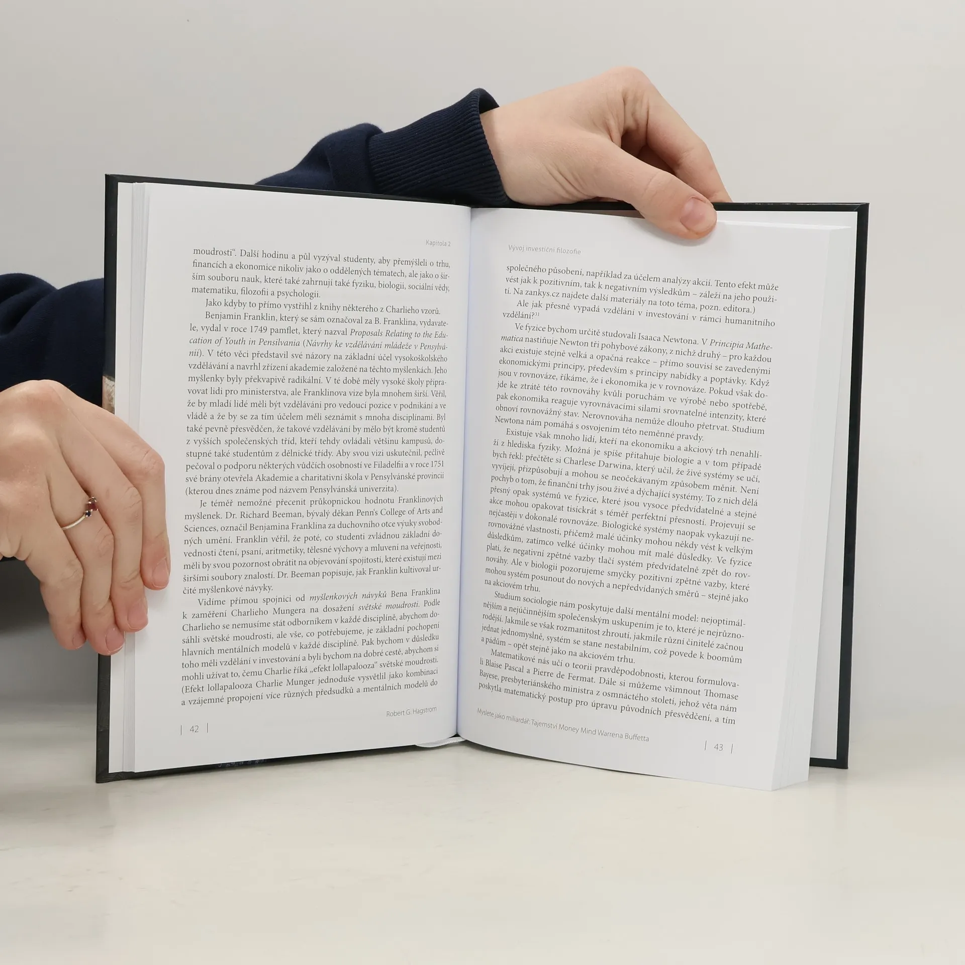 O tom, jak přemýšlíme, jak se na investice díváme. Je to něco, co sám Buffett nazval Money Mind. V knize Myslete jako miliardář: Tajemství money mind Warrena Buffetta autor bestsellerů Robert Hagstrom analyzuje Buffettovu zásadní moudrost, která je složitou spletí rozsáhlých myšlenek. Hagstrom, úspěšný investor a autor knih s pronikavými analýzami Buffettových investičních metod, kterých se prodalo přes 1 milion výtisků, se nyní zabývá mnohem zásadnější otázkou: Co tyto metody formovalo? Money Mind je na jedné úrovni to způsob uvažování o hlavních finančních otázkách, jako je alokace kapitálu. Na další úrovni shrnuje celkové myšlení pro úspěšné investování na dnešním akciovém trhu, myšlení, které závisí na odhodlání učit se, přizpůsobovat se a čelit nepodstatnému tržnímu šumu. Na ještě hlubší úrovni nám vypovídá mnohé o člověku, kterého nazýváme Money Mind, tedy o člověku, který bude s velkou pravděpodobností úspěšný v mnoha oblastech života – včetně investování. Toto není kniha o metodách. Je to kniha o myšlení. Kniha Myslete jako miliardář: Tajemství money mind Warrena Buffetta vysvětluje filozofii sebedůvěry, stoicismu, racionalismu a pragmatismu a jejich přínos pro inteligentní investiční rozhodování. Rovněž nastiňuje vývoj hodnotového investování, pojednává o tom, jak rozvíjet investiční myšlení založené na podnikání, a popisuje charakteristické rysy úspěšného aktivního řízení.