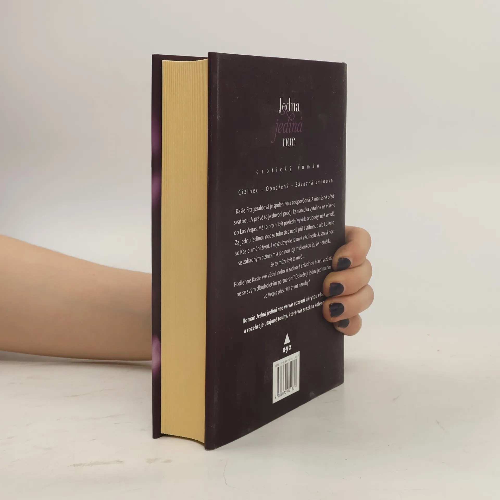 Kasie Fitzgeraldová je spolehlivá a zodpovědná. A má těsně před svatbou. A právě to je důvod, proč ji kamarádka vytáhne na víkend do Las Vegas. Má to pro ni být poslední výkřik svobody, než se vdá. Za jednu jedinou noc se toho sice nedá příliš stihnout, ale i přesto se Kasie změní život. I když obvykle takové věci nedělá, vyspí se záhadným cizincem a jedinou její myšlenkou je, že netušila, že to může být takové... Podlehne Kasie své vášni nebo si zachová chladnou hlavu a zůstane se svým dlouholetým partnerem? Dokáže jí jedna jediná noc ve Vegas převrátit život naruby? Román Jedna jediná noc ve vás rozezní ukrytou vášeň a rozehraje utajené touhy, které vás srazí na kolena.