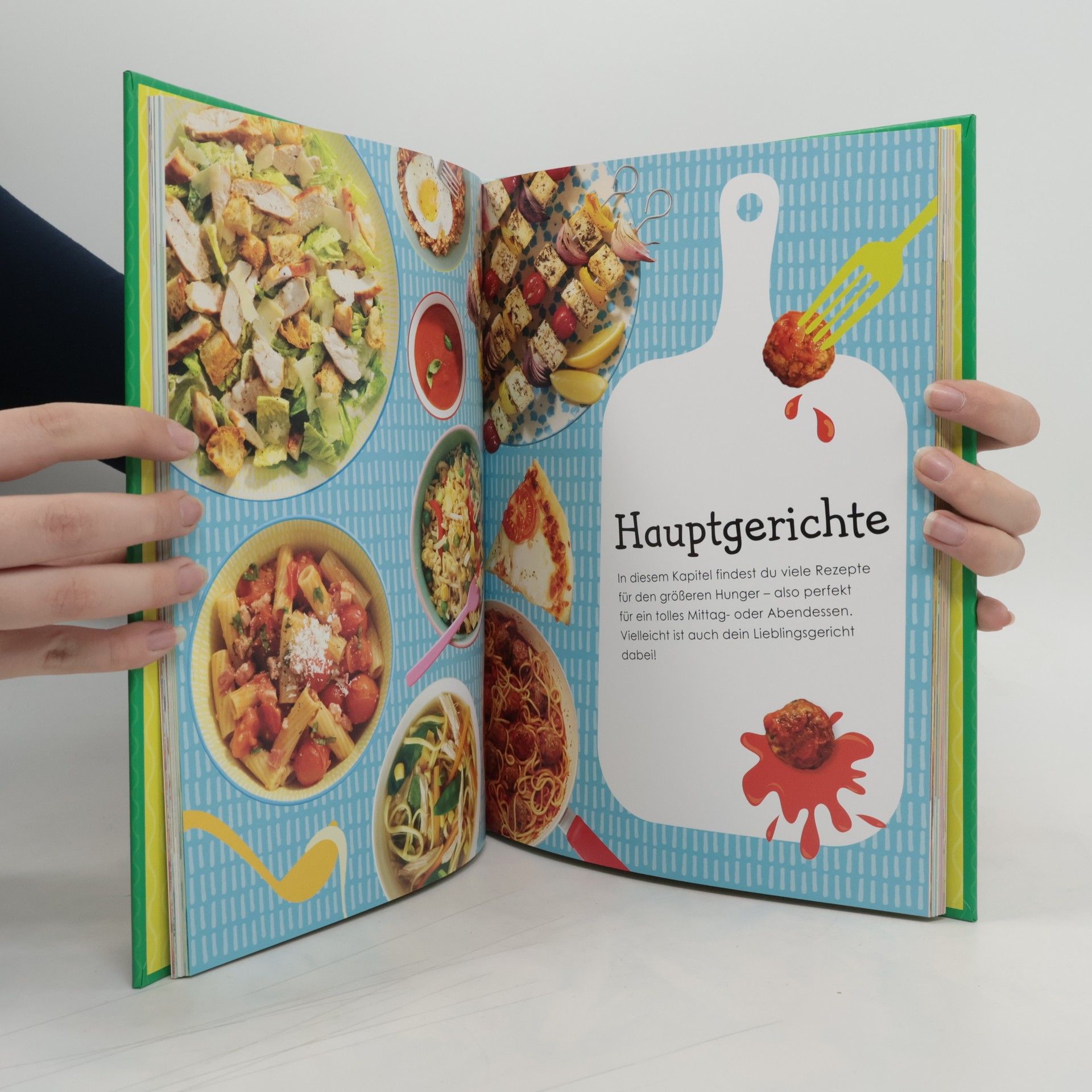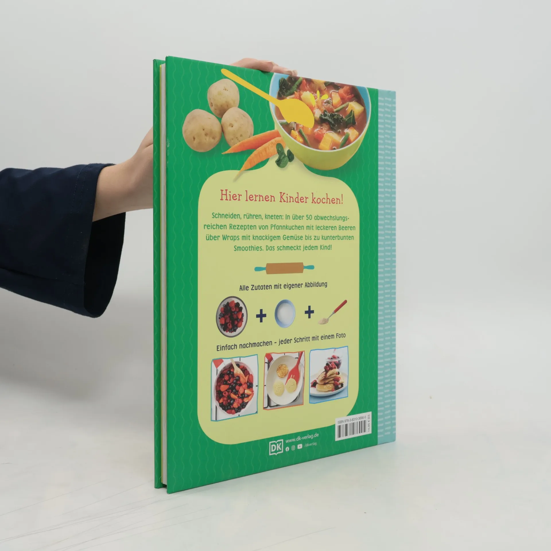 Jetzt wird der Kochlöffel geschwungen! In dieser kunterbunten Kochschule lernen kleine Nachwuchsköche in kinderleichten Schritt-für-Schritt-Anleitungen die Kunst des Kochens. Ob Pfannkuchen, Süßkartoffel-Pommes, Wraps, Himbeereis oder Smoothies – über 50 leckere und abwechslungsreiche Rezepte warten darauf, nachgekocht und verspeist zu werden. Das bunte Kinderkochbuch – mit vielen vegetarischen Rezepten – verwandelt die Kids in Kochprofis! Kochen für Kinder leicht gemacht. Anschauliche Doppelseiten zeigen das fertige Gericht und die bebilderte Anleitung, damit die kleinen Küchenchefs den Überblick behalten! Bebilderte Listen bieten eine Übersicht der Zutaten sowie Angaben zu Vorbereitungszeit, Garzeit und Portionsanzahl. Jeder Schritt wird durch leicht verständliche Anweisungen und große Abbildungen erläutert. Die Inhalte umfassen kleine Gerichte wie Omelette und Pizza-Muffins, Hauptgerichte wie Nudelauflauf und Lachs im Päckchen sowie Desserts wie Zitronenmuffins und Schokokuchen in der Tasse. Das Buch liefert zudem wertvolle Tipps zu Küchenregeln, Geräten, Techniken und Variationen. Step by step zum Profikoch – diese farbenfrohe Kochschule ist die ultimative Basis für alle angehenden Hobbyköche!