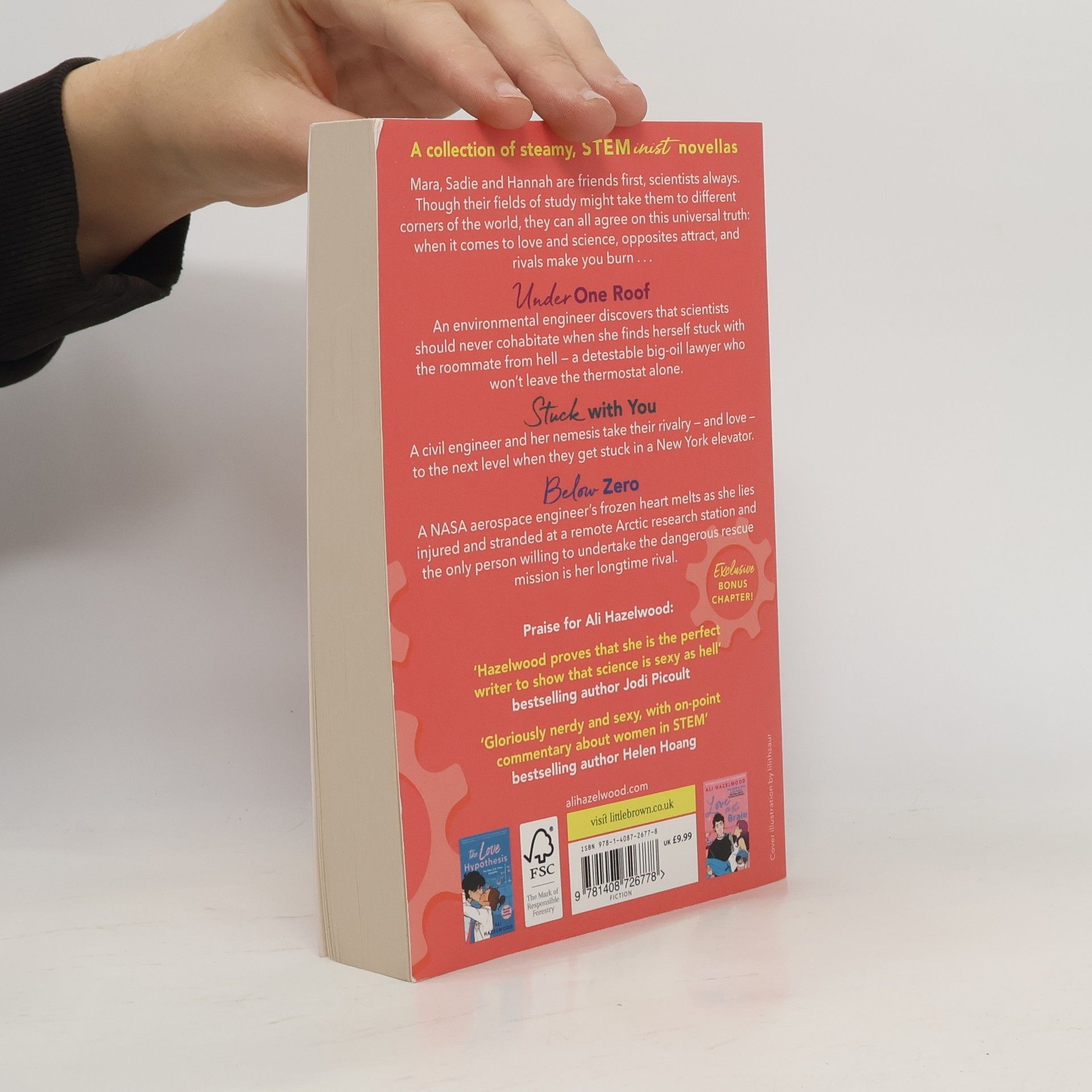 Three irresistible short stories by the global phenomenon Ali Hazelwood, now available together in paperback for the first time, with an exclusive bonus chapter. Mara, Sadie, and Hannah are friends first, scientists always. Though their fields of study might take them to different corners of the world, they can all agree on this universal truth: when it comes to love and science, opposites attract, and rivals make you burn.... Under One Roof An environmental engineer discovers that scientists should never cohabitate when she finds herself stuck with the roommate from hell - a detestable big-oil lawyer who won't leave the thermostat alone. Stuck with You A civil engineer and her nemesis take their rivalry - and love - to the next level when they get stuck in a New York elevator. Below Zero A NASA aerospace engineer's frozen heart melts as she lies injured and stranded at a remote Arctic research station and the only person willing to undertake the dangerous rescue mission is her longtime rival. Ali Hazelwood's latest novel, Love on the Brain is out now.