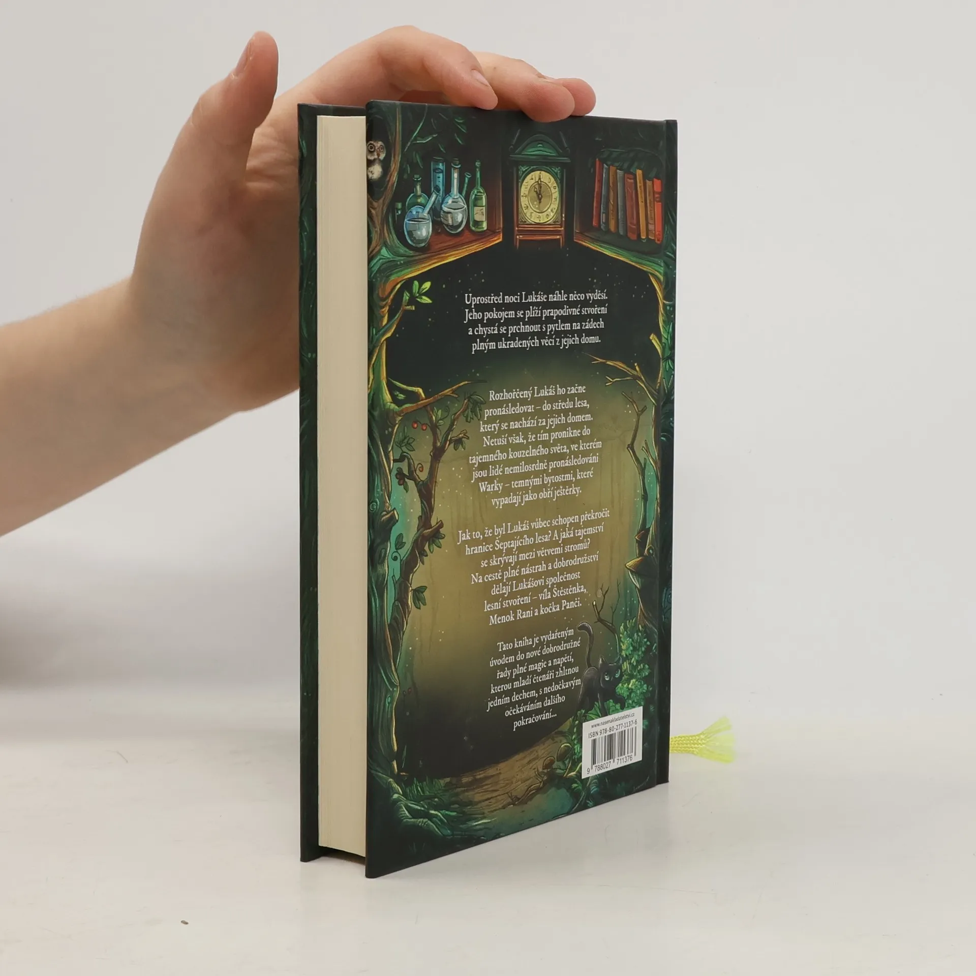 Uprostřed noci Lukáše náhle něco vyděsilo. Jeho pokojem se plížilo stvoření podobné šotkovi a chystalo se prchnout s pytlem na zádech plným ukradených věcí z jejich domu. Rozhořčený Lukáš ho začne pronásledovat – do středu lesa, který se nachází za jejich domem. Netuší však, že tím pronikl do sféry kouzel zakázaného světa… Do světa, ve kterém jsou lidé nemilosrdně pronásledování Warky – temnými bytostmi, které vypadají jako stíny. Jak to, že byl Lukáš vůbec schopen překročit hranice Šeptajícího lesa? A jaká tajemství se skrývají mezi větvemi stromů? Na cestě plné nástrah a dobrodružství dělají Lukášovi společnost lesní stvoření – víla Štěstěnka, Menok Rani a kočka Panči. Tato kniha je vydařeným úvodem do nové dobrodružné řady plné magie a napětí, kterou mladí čtenáři zhltnou jedním dechem s nedočkavým očekáváním dalšího pokračování...