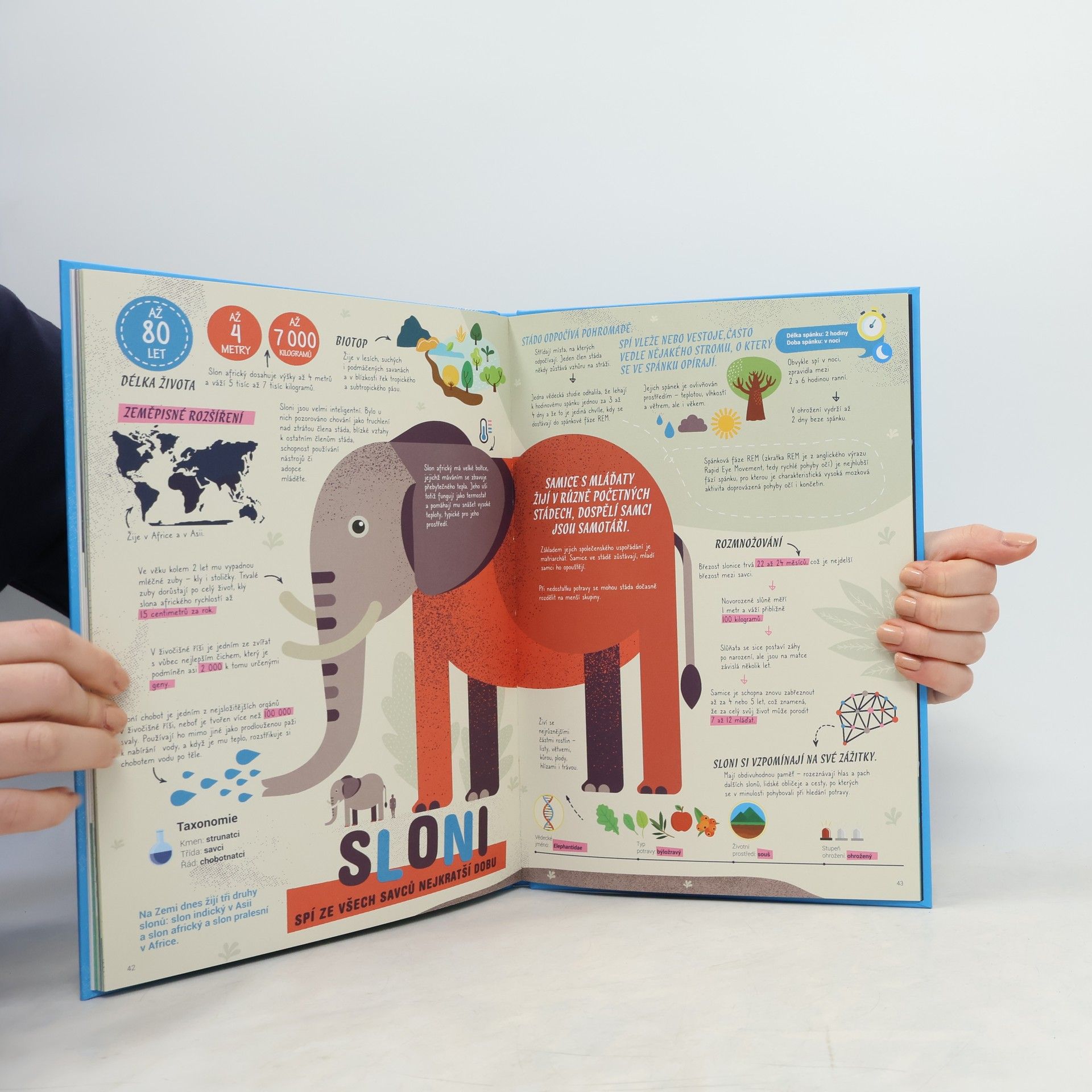 Tato bohatě a půvabně ilustrovaná kniha dává zvídavým dětským čtenářům, a možná i jejich rodičům, příležitost proniknout do tajů života některých živočišných druhů a poznat je i z mnohdy velmi neobvyklých stránek.Hlavním tématem je tu vše, co se týká spánku. Dozvíte se, v jakých neobvyklých polohách některá zvířata spí, o těch, která se do říše spánku mohou vydat vždy jen tak na půl, i o těch, která spí jen v kratičkých intervalech, zatímco jiná vyspávají po celé dlouhé měsíce.Víte třeba, který pták může spát celé hodiny i za letu? Nebo které zvíře spí zavěšené ve vodě ve svislé pozici kousek od vodní hladiny a ještě si k tomu nechává alespoň jedno oko otevřené? Při četbě této knihy určitě nebude o překvapení nouze.