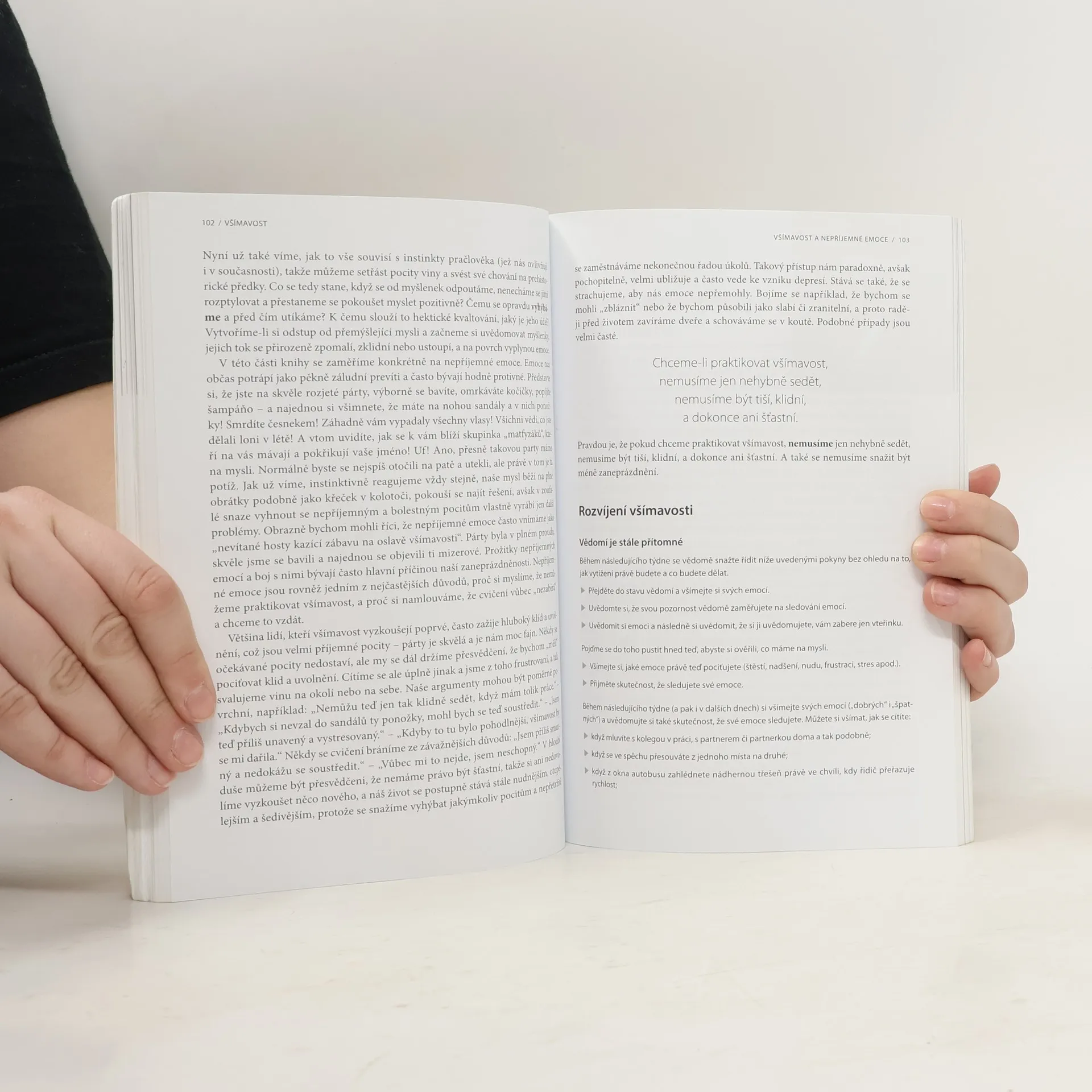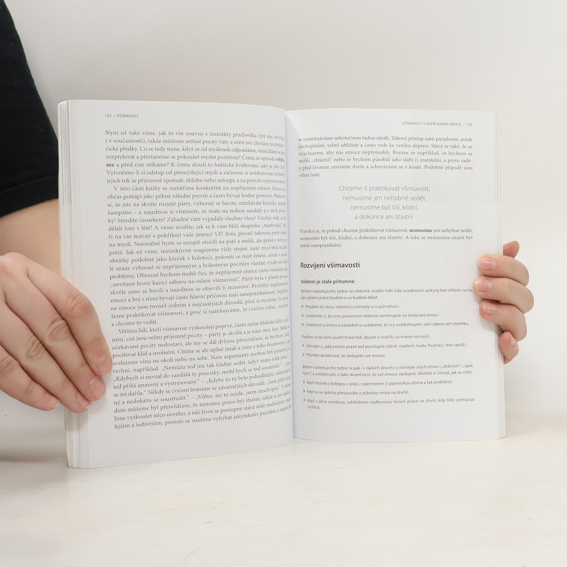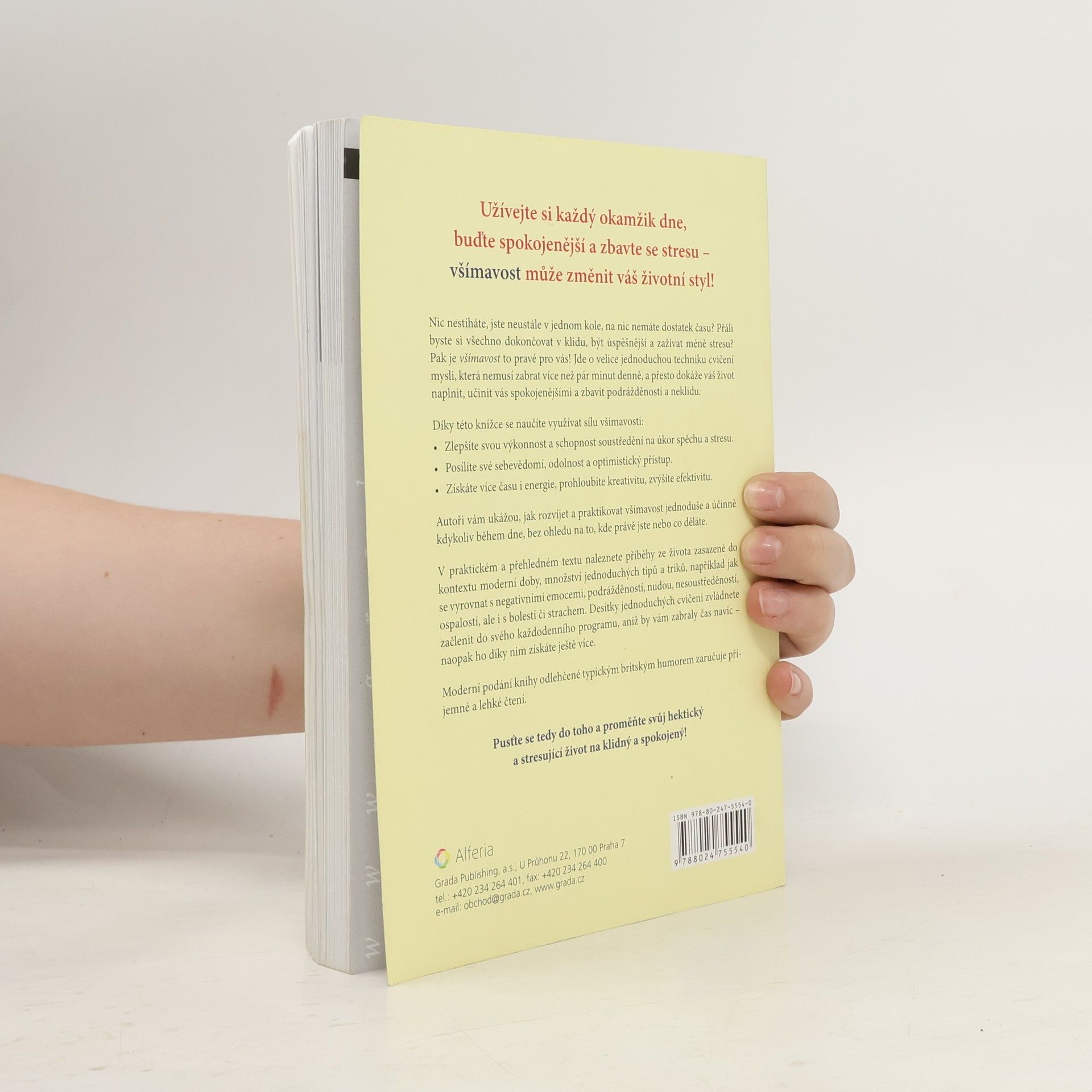 Cesta ke zklidnění mysli pro ty, co nestíhají. Všímavost je velice jednoduchá technika cvičení mysli, která nemusí zabrat více než pár minut denně, a přesto dokáže váš život naplnit, udělat vás spokojenějšími a zbavit vás podrážděnosti a neklidu. Jak na to se dozvíte v této knížce, která vás naučí využívat sílu všímavosti: - Zlepšíte svou výkonnost a schopnost soustředění na úkor spěchu a stresu. - Posílíte své sebevědomí, odolnost a optimistický přístup. - Získáte více času i energie, prohloubíte kreativitu, zvýšíte efektivitu. Autoři vám ukážou, jak rozvíjet a praktikovat všímavost jednoduše a účinně kdykoliv během dne, bez ohledu na to, kde právě jste nebo co děláte. V praktickém a přehledném textu naleznete příběhy ze života zasazené do kontextu moderní doby, množství jednoduchých tipů a triků, například jak se vyrovnat s negativními emocemi, podrážděností, nudou, nesoustředěností, ospalostí, ale i s bolestí či strachem. Desítky jednoduchých cvičení zvládnete začlenit do svého každodenního programu, aniž by vám zabraly čas navíc – naopak ho díky nim získáte ještě více. Moderní podání knihy odlehčené typickým britským humorem zaručuje příjemné a lehké čtení. Pusťte se tedy do toho a proměňte svůj hektický a stresující život na klidný a spokojený!