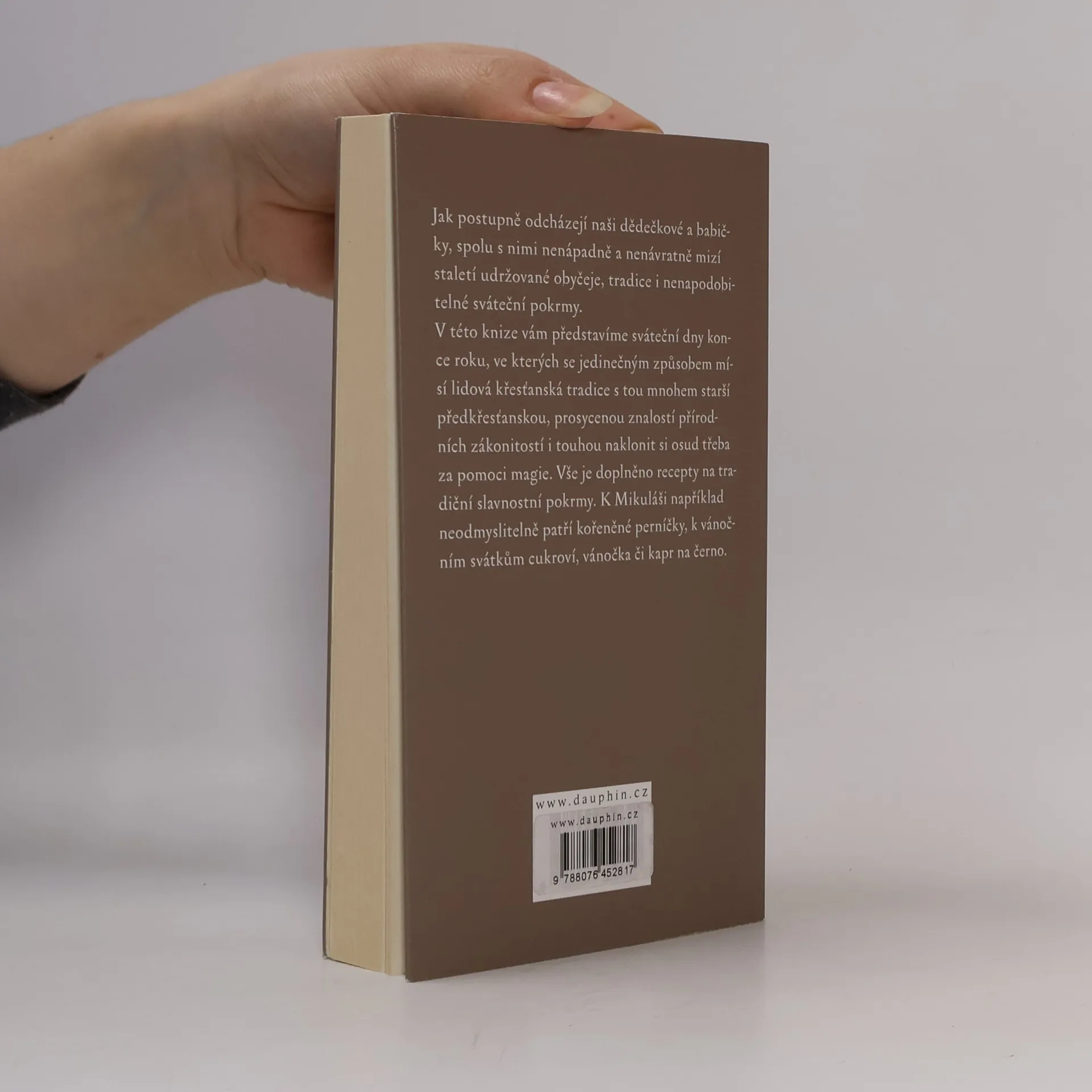Jak postupně odcházejí naše babičky a dědečkové, spolu s nimi nenápadně a nenávratně mizí staletí udržované obyčeje, tradice i nenapodobitelné sváteční pokrmy. V této knize vám představíme sváteční dny konce roku, ve kterých se jedinečným způsobem mísí lidová křesťanská tradice s tou mnohem starší předkřesťanskou, prosycenou znalostí přírodních zákonitostí i touhou naklonit si osud třeba za pomoci magie. Vše je doplněno recepty na tradiční slavnostní pokrmy. K Mikuláši například neodmyslitelně patří kořeněné perníčky, k vánočním svátkům cukroví, vánočka či kapr na černo.