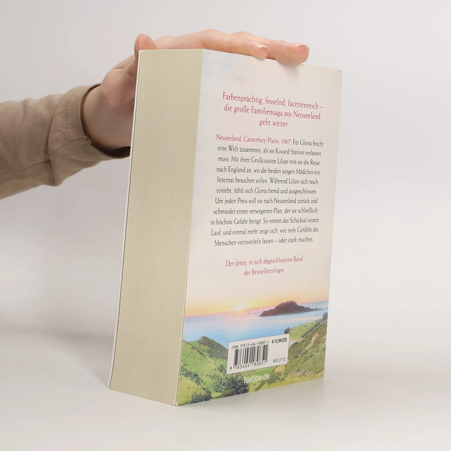 Neuseeland, Canterbury Plains, 1907: Für Gloria bricht eine Welt zusammen, als sie Kiward Station verlassen muss. Mit ihrer Großkusine Lilian tritt sie die Reise nach England an, wo die beiden jungen Mädchen ein Internat besuchen sollen. Während Lilian sich rasch einlebt, fühlt sich Gloria fremd und ausgeschlossen. Um jeden Preis will sie nach Neuseeland zurück. Sie schmiedet einen verwegenen Plan, der sie in höchste Gefahr bringt ... Das Schicksal nimmt seinen Lauf, und einmal mehr zeigt sich, wie tiefe Gefühle die Menschen verzweifeln lassen können oder sie stark machen. Der dritte, in sich abgeschlossene Band der Bestsellertrilogie