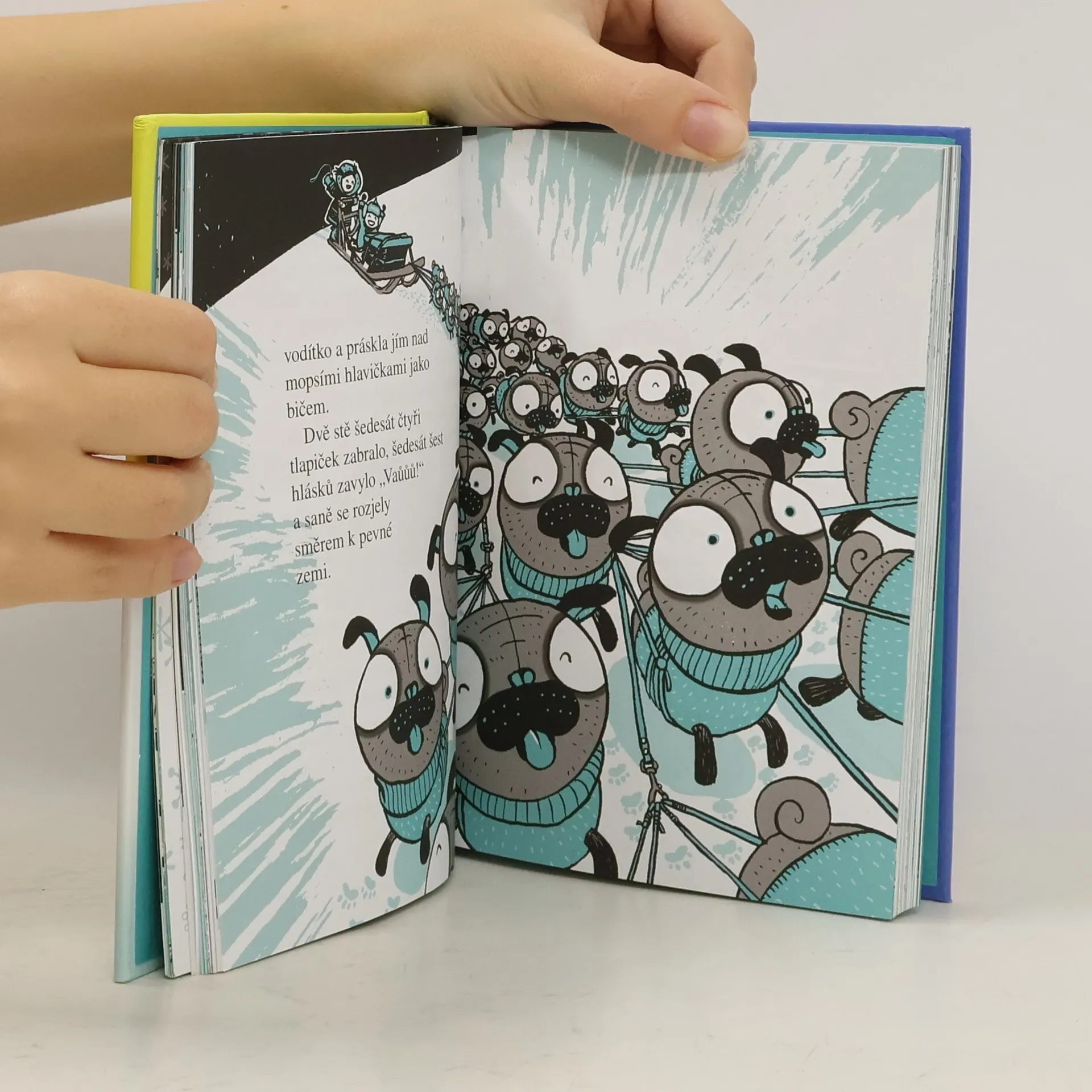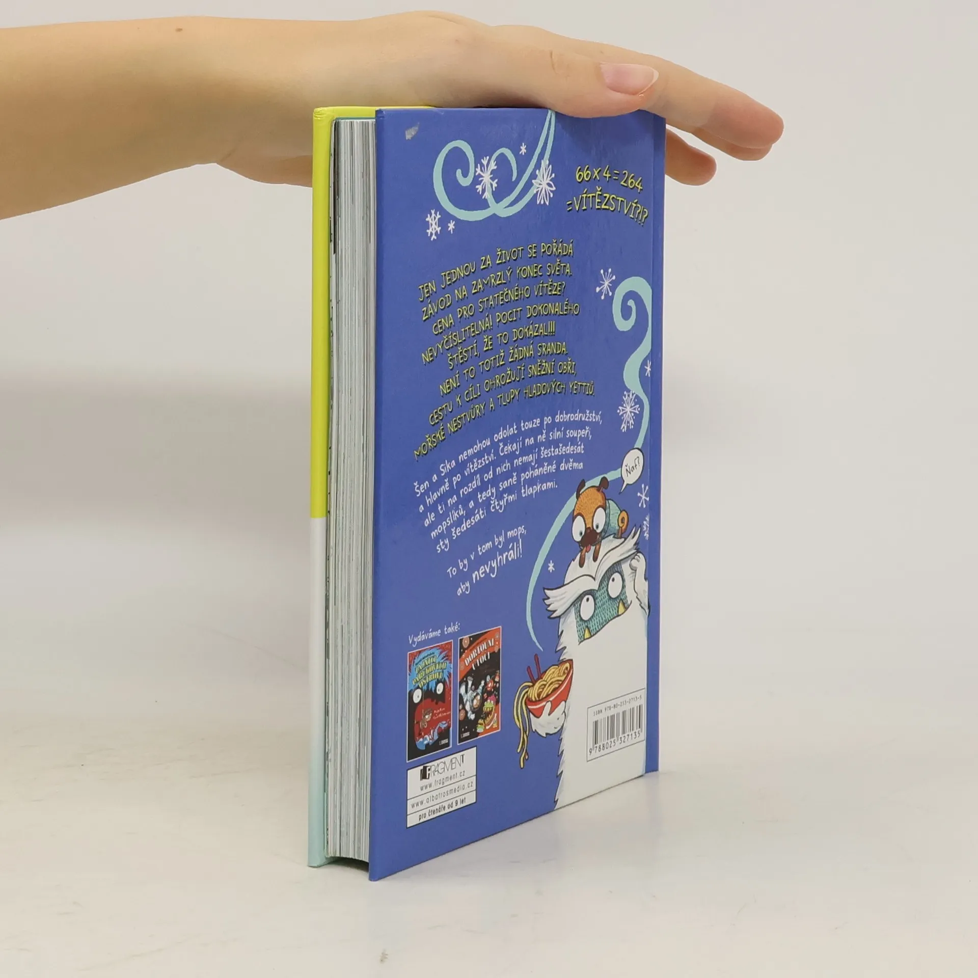 66 × 4 = 264 = vítězství?!? Jen jednou za život se pořádá závod na zamrzlý konec světa. Cena pro statečného vítěze? Nevyčíslitelná! Pocit dokonalého štěstí, že to dokázal!!! Není to totiž žádná sranda. Cestu k cíli ohrožují sněžní obři, mořské nestvůry a tlupy hladových yettiů. Šen a Sika nemohou odolat touze po dobrodružství a hlavně po vítězství. Čekají na ně silní soupeři, ale ti na rozdíl od nich nemají šestašedesát mopslíků, a tedy saně poháněné dvěma sty šedesáti čtyřmi tlapkami. To by v tom byl mops, aby nevyhráli.