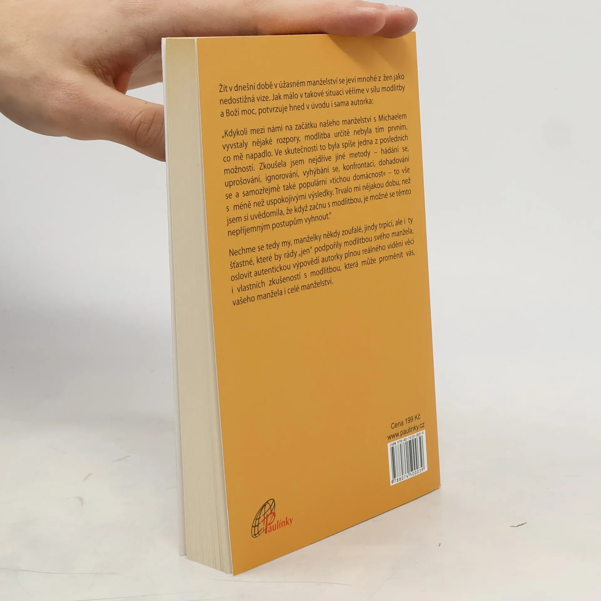 Žít v dnešní době v úžasném manželství se jeví mnohé z žen jako nedostižná vize. Jak málo v takové věci věří v sílu modlitby a Boží moc. Autorka zkoušela řešit své problémy v manželství různými metodami – hádáním se, uprošováním, ignorováním, vyhýbáním se, konfrontací, dohadováním se a také populární »tichou domácností«.Trvalo jí, než si uvědomila, že je třeba začít s modlitbou. Nechme se tedy my, manželky někdy zoufalé, jindy trpící, ale i ty šťastné, které by rády „jen“ podpořily modlitbou svého manžela, oslovit autentickou výpovědí autorky plnou reálného vidění věcí i vlastních zkušeností s modlitbou, která může proměnit vás, vašeho manžela i celé manželství.