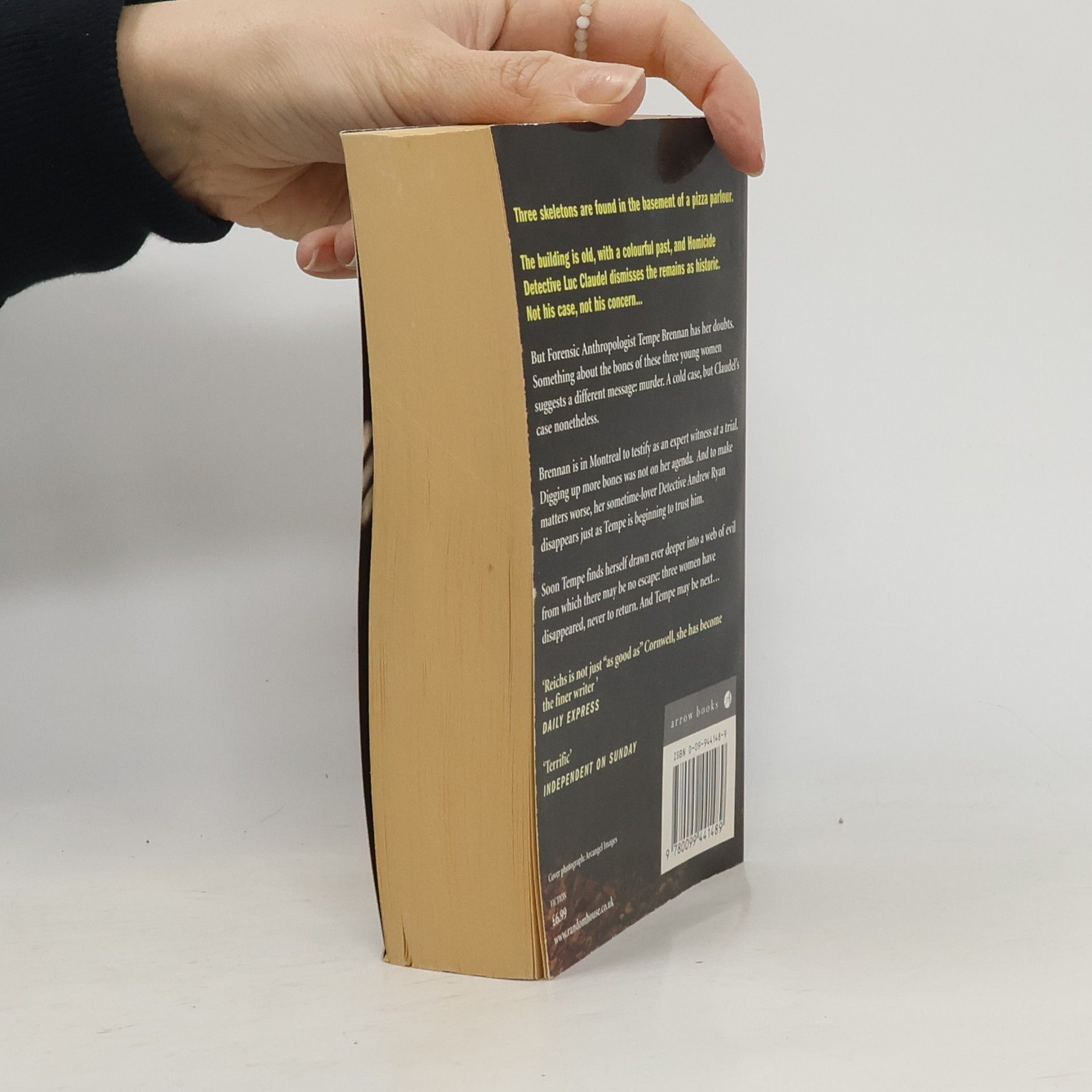 But Tempe has her doubts. Something doesn't make sense. She'll look at the bones in her lab and do Carbon 14 testing to establish approximate age. And she can analyse the tooth enamel to tell approximately where the women were born. If she's right, Claudel has three recent murders on his hands. Definitely his case.