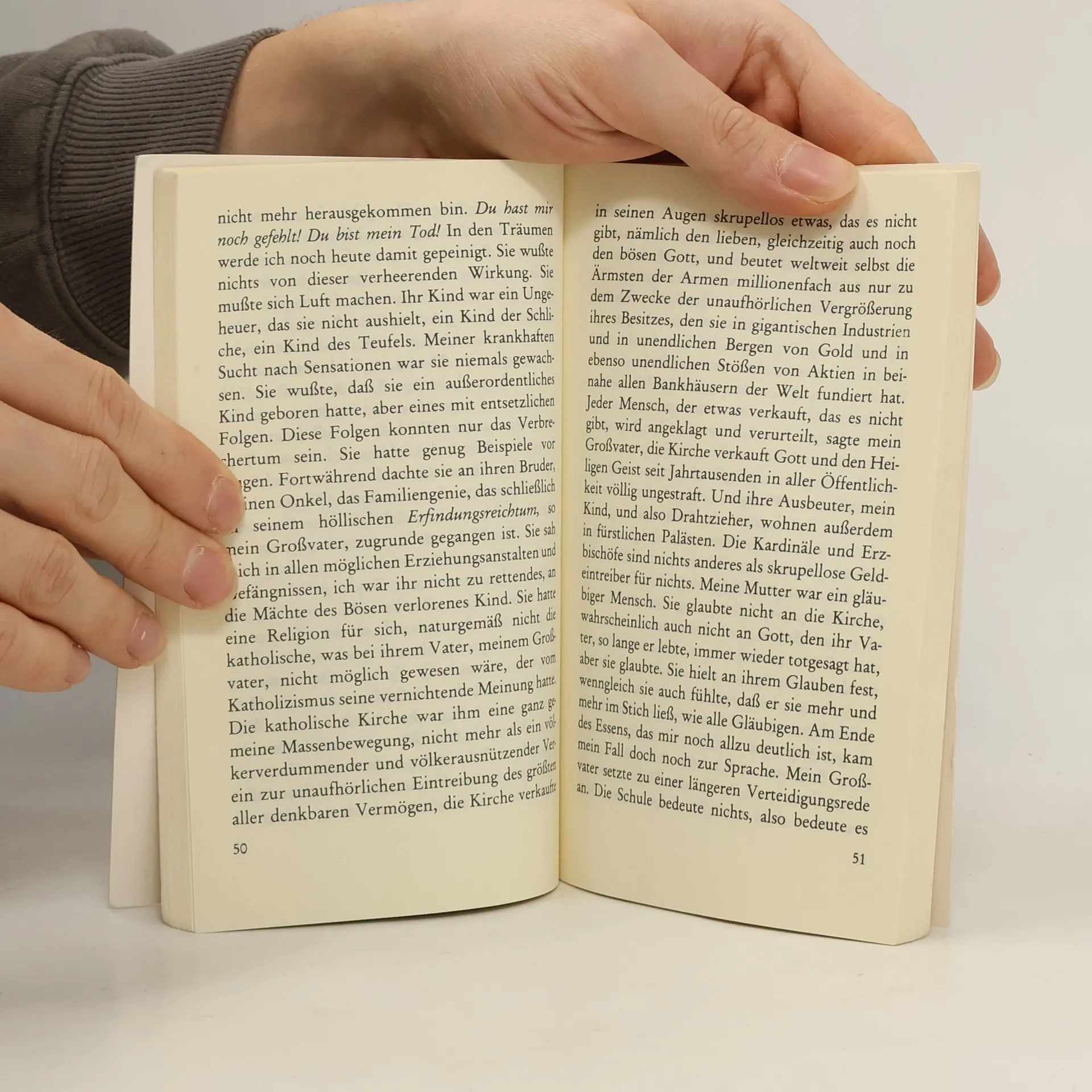 Die Schande einer unehelichen Geburt, die Alltagssorgen der Mutter und ihr ständiger Vorwurf: Du hast mein Leben zerstört! überschatten Thomas Bernhards Kindheitsjahre. Ein wahres Martyrium begann mit dem Eintritt in die Schule, in der sich der begabte Junge von Anfang an langweilte. es waren Jahre fern der Idylle, wenn auch nicht ohne Augenblicke des Hochgefühls. Und es war die Zeit des Nationalsozialismus und des Krieges.