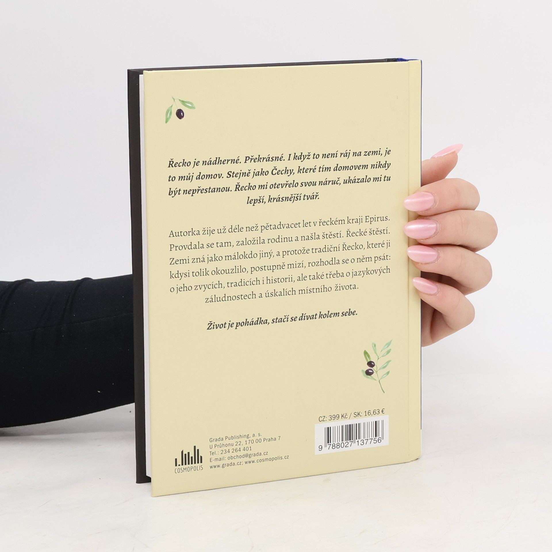 Autorka žije už déle než pětadvacet let v řeckém kraji Epirus, provdala se tam, založila rodinu a našlaštěstí. Řecké štěstí. Zemi zná jako málokdo jiný, a protože tradiční Řecko, které ji kdysi okouzlilo,postupně mizí, rozhodla se o něm psát – o jeho zvycích, tradicích, historii i legendách, ale také třebao jazykových záludnostech a úskalích života v cizí zemi.Mimo jiné se dozvíte:- Proč se Řekové zdají tak šťastní a bezstarostní- Jaká jsou tradiční řecká jídla- Jaké mají v Řecku vánoční cukroví a recepty na ně- Jaký mají Řekové vztah ke zvířatům- Proč mají Řekové Dušičky dvakrát za rok- Proč Řekové věří na úterý třináctého