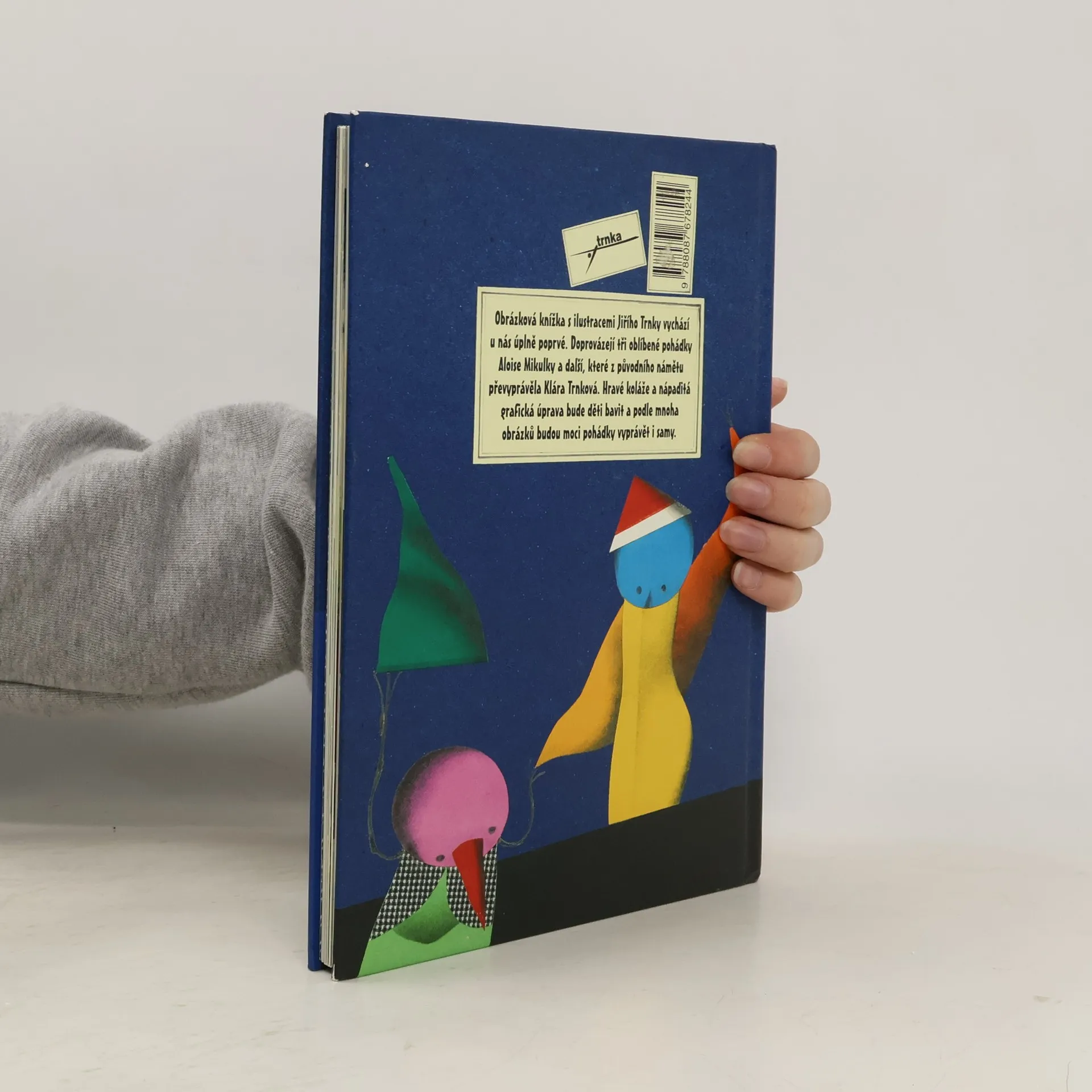 Obrázková knížka s ilustracemi Jiřího Trnky vychází u nás úplně poprvé. Doprovázejí tři oblíbené pohádky Aloise Mikulky a další, které z původního námětu převyprávěla Klára Trnková. Hravé koláže a nápaditá grafická úprava bude děti bavit a podle mnoha obrázků budou moci pohádky vyprávět i samy.