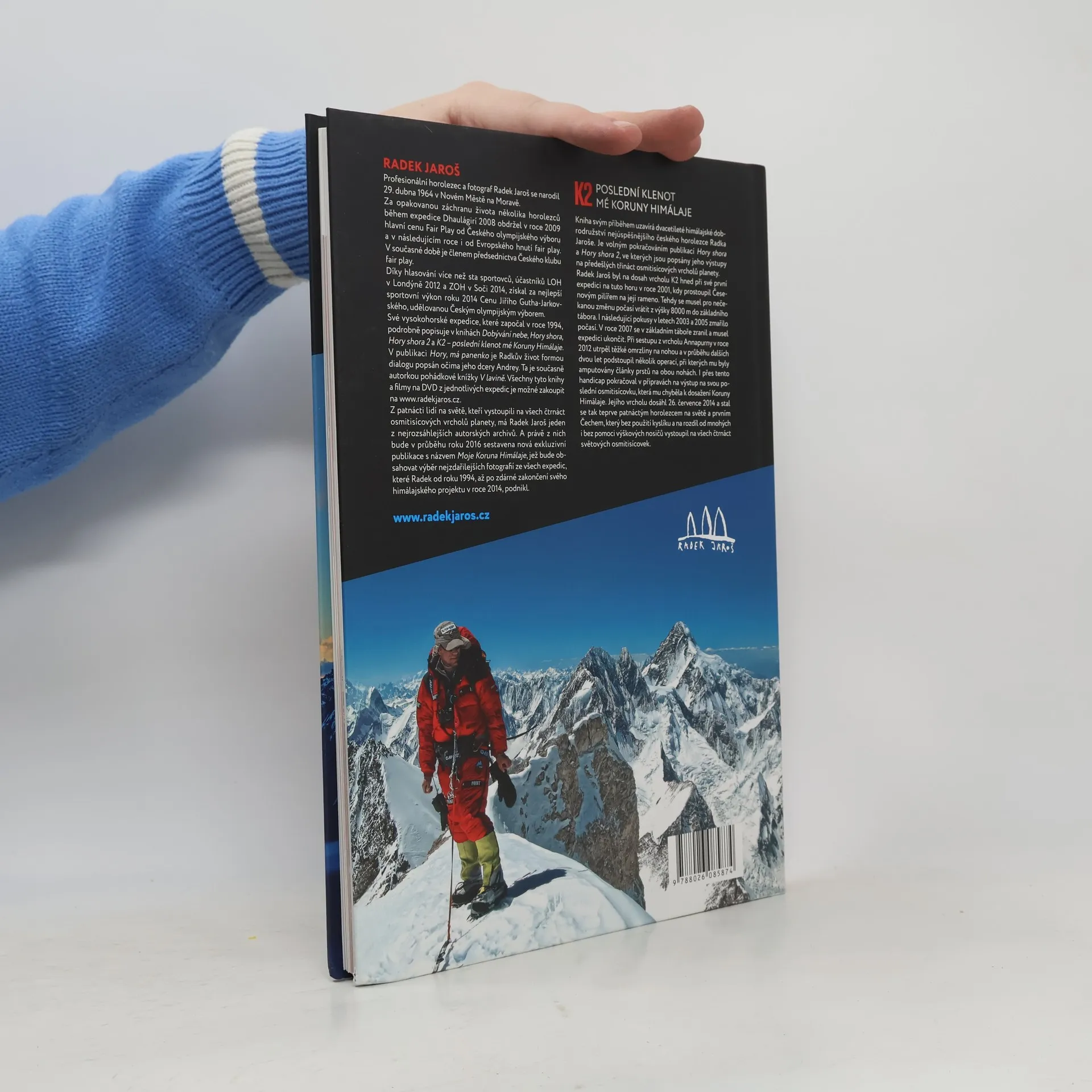 Kniha uzavírá svým příběhem dvacetileté himálajské dobrodružství nejúspěšnějšího českého horolezce Radka Jaroše. Je volným pokračováním publikací Hory shora a Hory shora 2, ve kterých jsou popsány jeho výstupy na předešlých třináct osmitisícových vrcholů planety. Radek Jaroš byl na dosah vrcholu K2 hned při své první expedici na tuto horu v roce 2001, kdy prostoupil Česenovým pilířem na její rameno. Tehdy se musel pro nečekanou změnu počasí vrátit z výšky 8000 m do základního tábora. I následující pokusy v letech 2003 a 2005 zmařilo počasí. V roce 2007 se v základním táboře zranil a musel expedici ukončit. Při sestupu z vrcholu Annapurny v roce 2012 utrpěl těžké omrzliny na nohou a v průběhu dalších dvou let podstoupil několik operací, při kterých mu byly amputovány články prstů na obou nohách. I přes tento handicap pokračoval v přípravách na výstup na svou poslední osmitisícovku, která mu chyběla k dosažení Koruny Himálaje. Jejího vrcholu dosáhl 26. července 2014 a stal se tak teprve patnáctým horolezcem na světě a prvním Čechem, který bez použití kyslíku a na rozdíl od mnohých i bez pomoci výškových nosičů vystoupil na všech čtrnáct světových osmitisícovek.