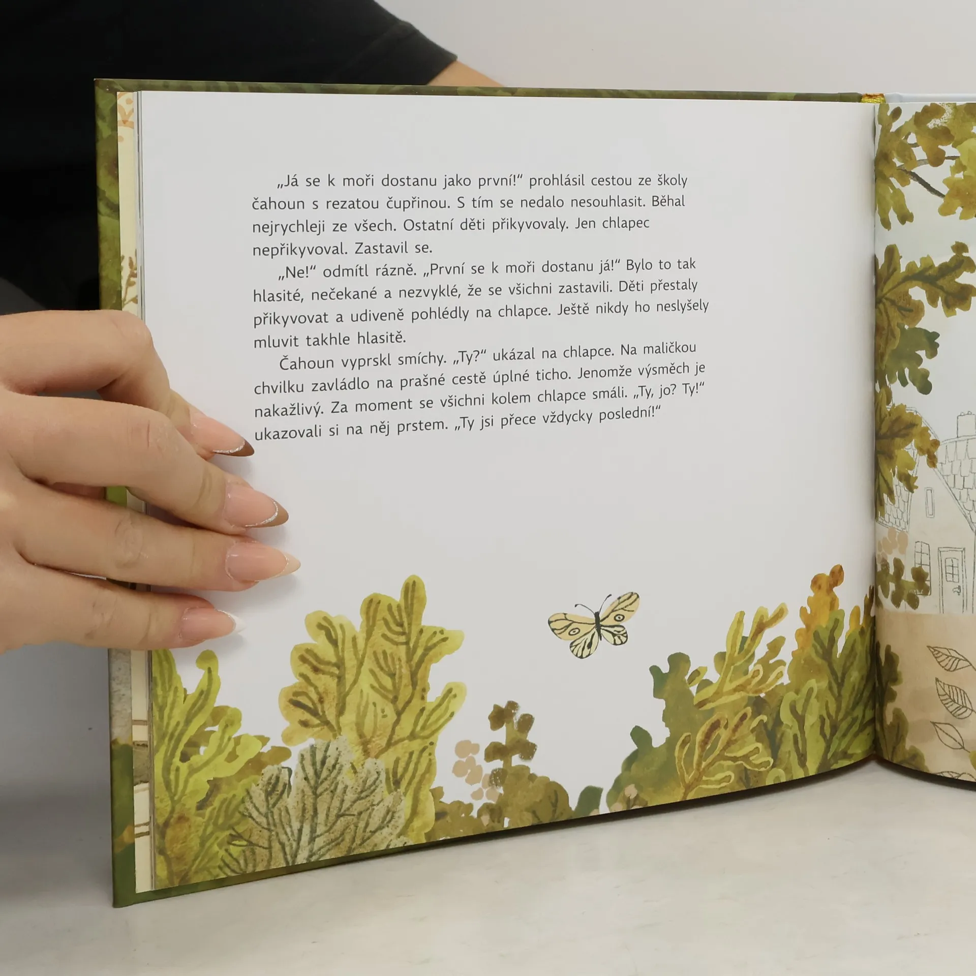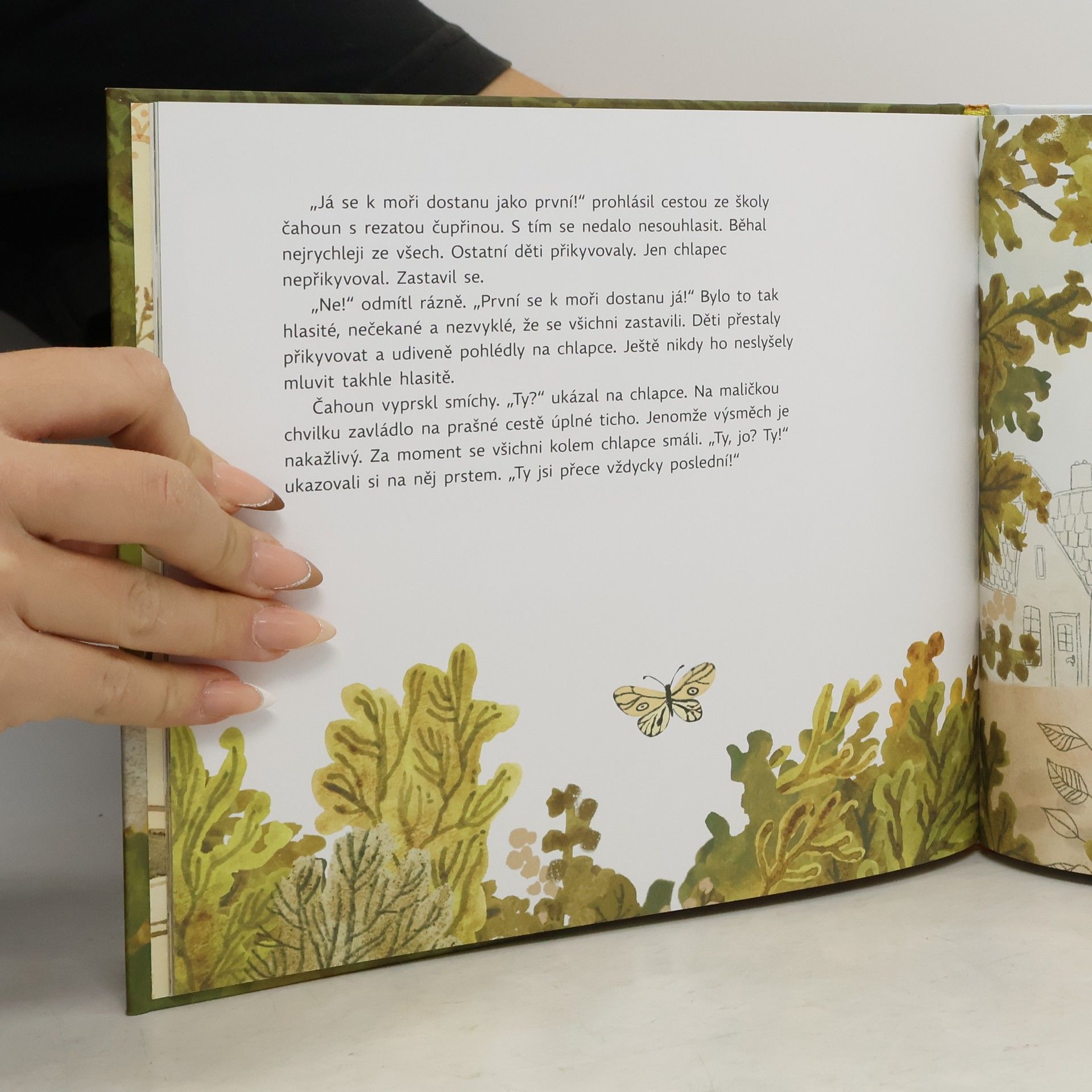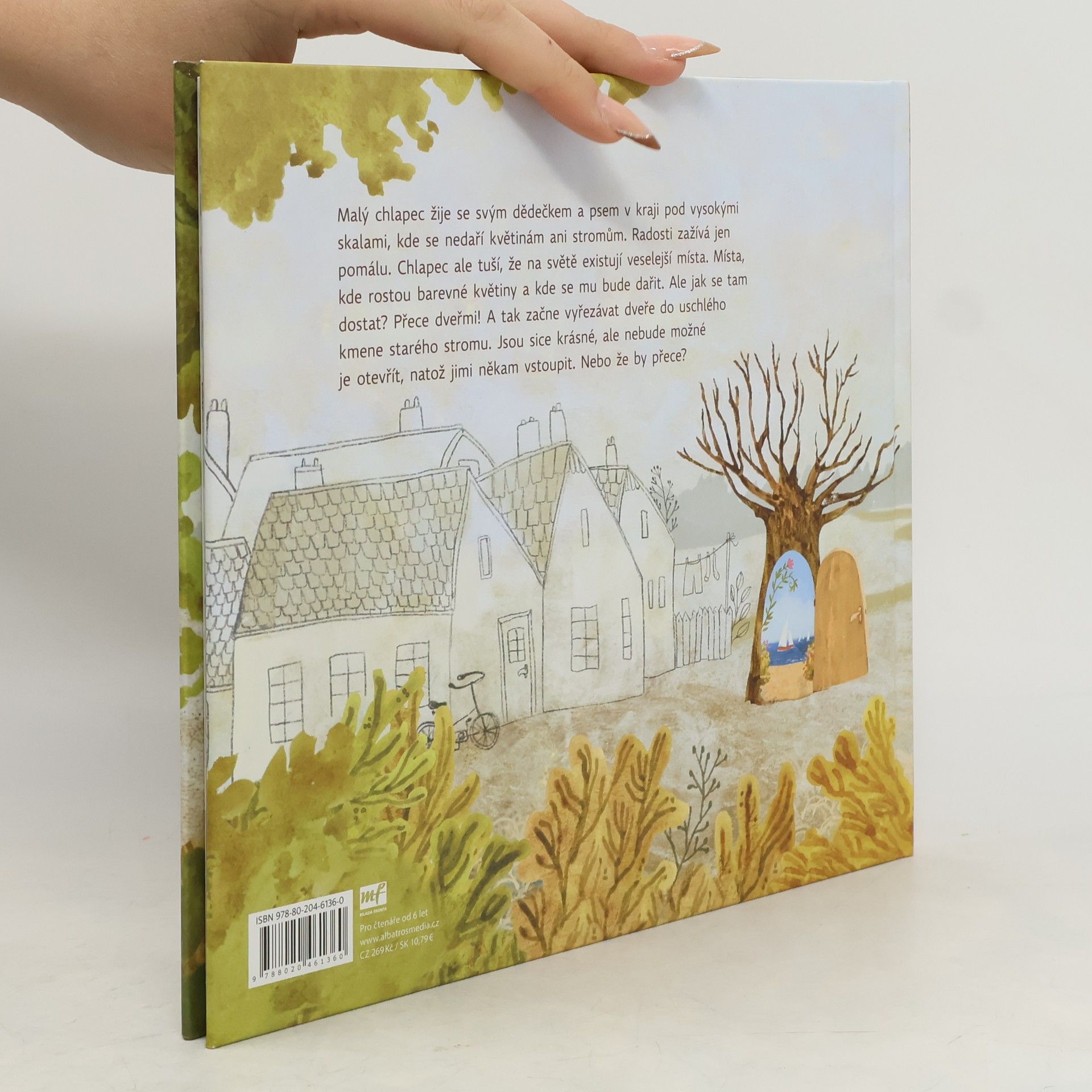 Malý chlapec žije se svým dědečkem a psem v kraji pod vysokými skalami, kde se nedaří květinám ani stromům. Radosti zažívá jen pomálu. Chlapec ale tuší, že jsou na světě místa, kde se mu nebudou ostatní posmívat. Místa, kde rostou květiny samy od sebe a kde se mu bude dařit. Ale jak se tam dostat? Přece dveřmi! A tak začne vyřezávat dveře do uschlého kmene starého stromu. Jsou sice krásné, ale nebude možné je otevřít, natož jimi někam vstoupit. Nebo že by přece?