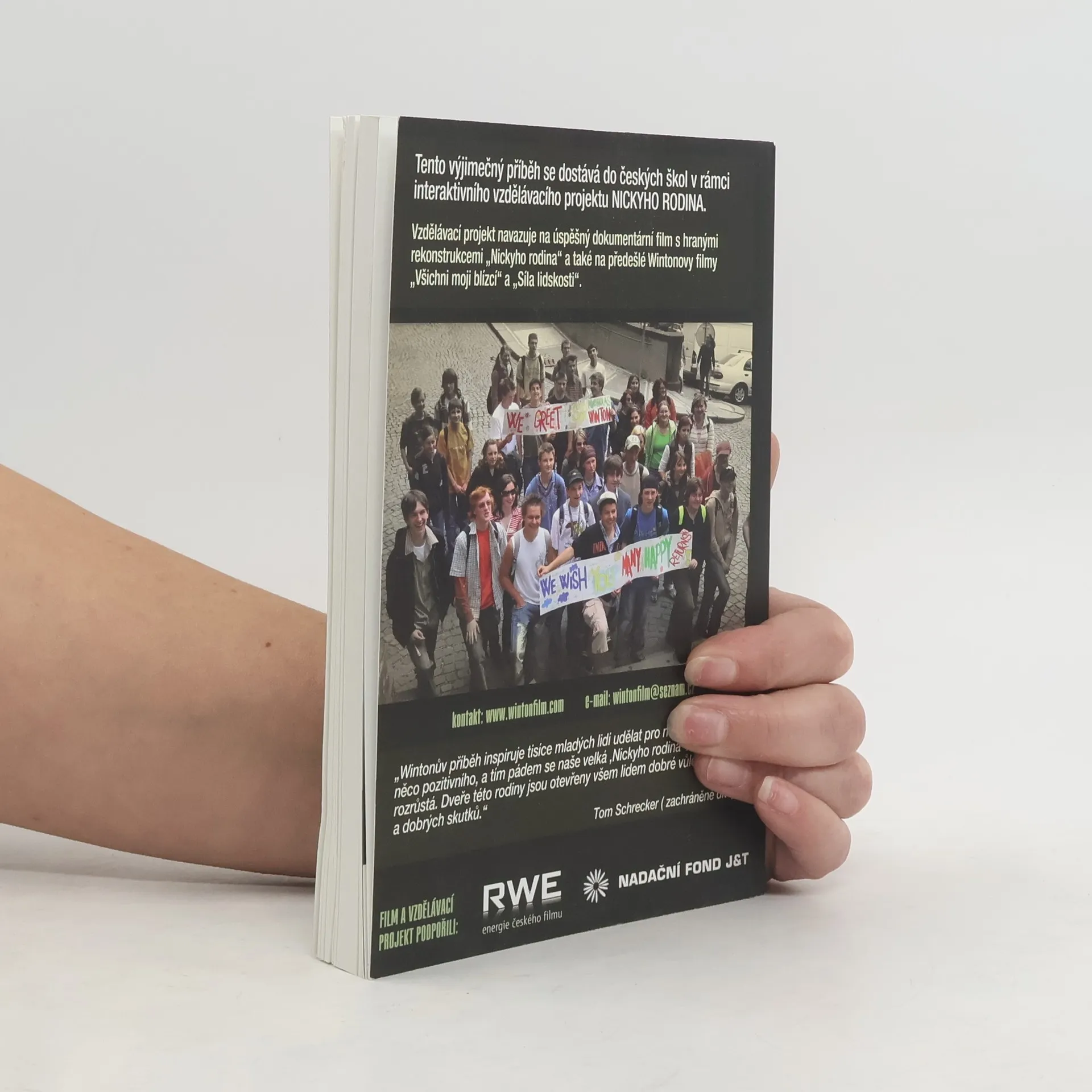 Příběh záchrany 669 dětí sirem Nicholasem Wintonem dokáže pozitivně ovlivnit svět i po 70 letech .." Witonův příběh inspiruje tisíce mladých lidí udělat pro náš svět něco pozitivního ,a tím pádem se naše velká ,Nickyho rodina " neustále rozrůstá.Dveře této rodiny jsou otevřeny všem lidem dobré vůle a dobrých skutků "..(Schrecker)